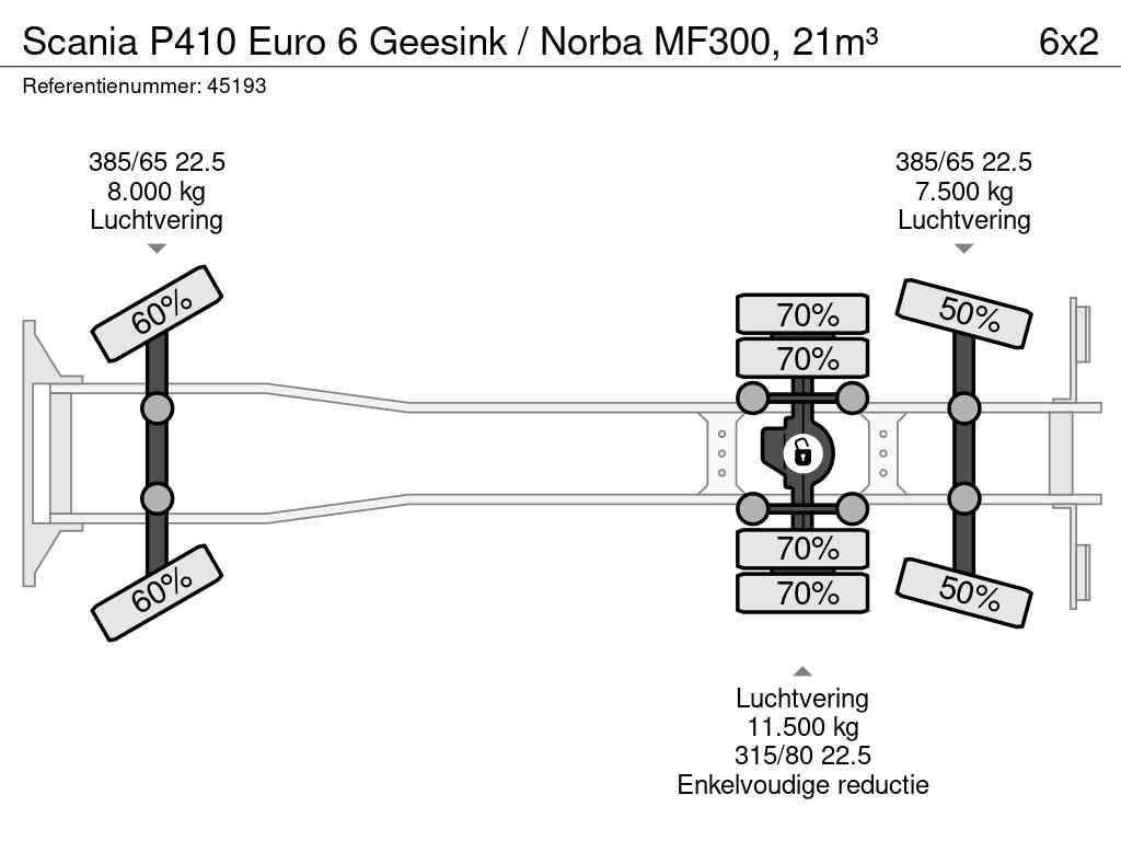 - Opbouw: Geesink (type: MF300 v 21H25 L200), 21m³