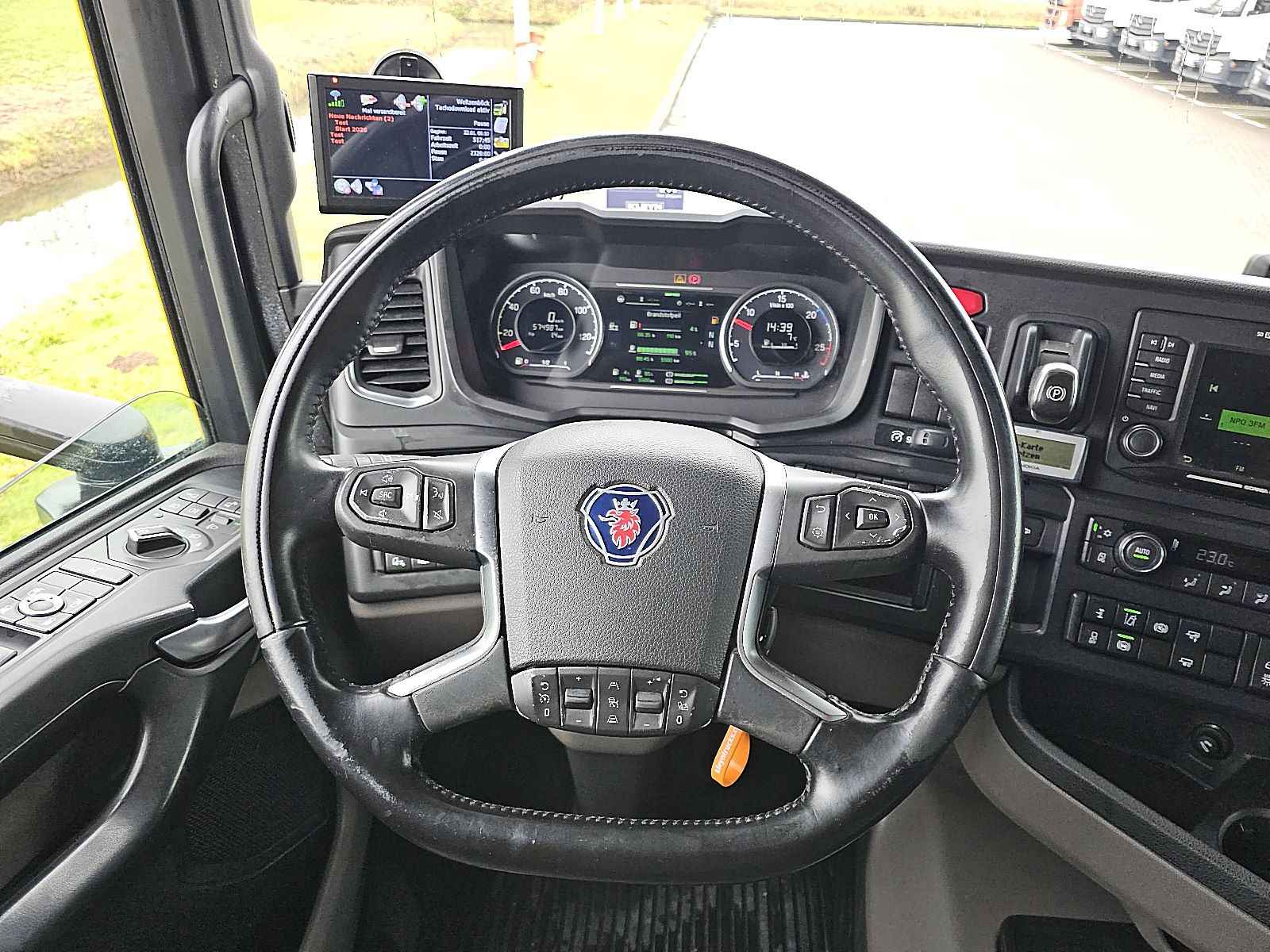 Aantal Assen: 2, Configuratie: 4x2, Diesel inhoud totaal: 1370 liter, 2e dieseltank, Schotelhoogte: 115 cm, Schotel type: Fixed, Aantal sperren: 1, Lichtmetalen velgen, Vering type: luchtvering, Soort cabine: Highline, Cruise control, Tachograaf, Digitale tachograaf, Airconditioning, Stand airco, Standkachel, Elektrische ramen, Elektrische spiegels, Radio/cassette, Carplay, Kleur: Meerkleurig, Verwarmde spiegels, Soort lampen: Led, Laneassist, Climatecontrol, Stoelverwarming, Bluetooth, Brandstof: diesel, Euro: 6, Soort versnellingsbak: Opti-cruise, Merk versnellingsbak: Scania, Versnellingen: 12, Extra remsysteem, Merk retarder: Scania, Stuurbekrachtiging, ABS (Anti Blokkeer Systeem), ASR (Anti Slip Regeling), Start accu, Centrale vergrendeling, Stoelopstelling: 1+1, Stoelbekleding: stof, Stoel verstelling: Handmatig