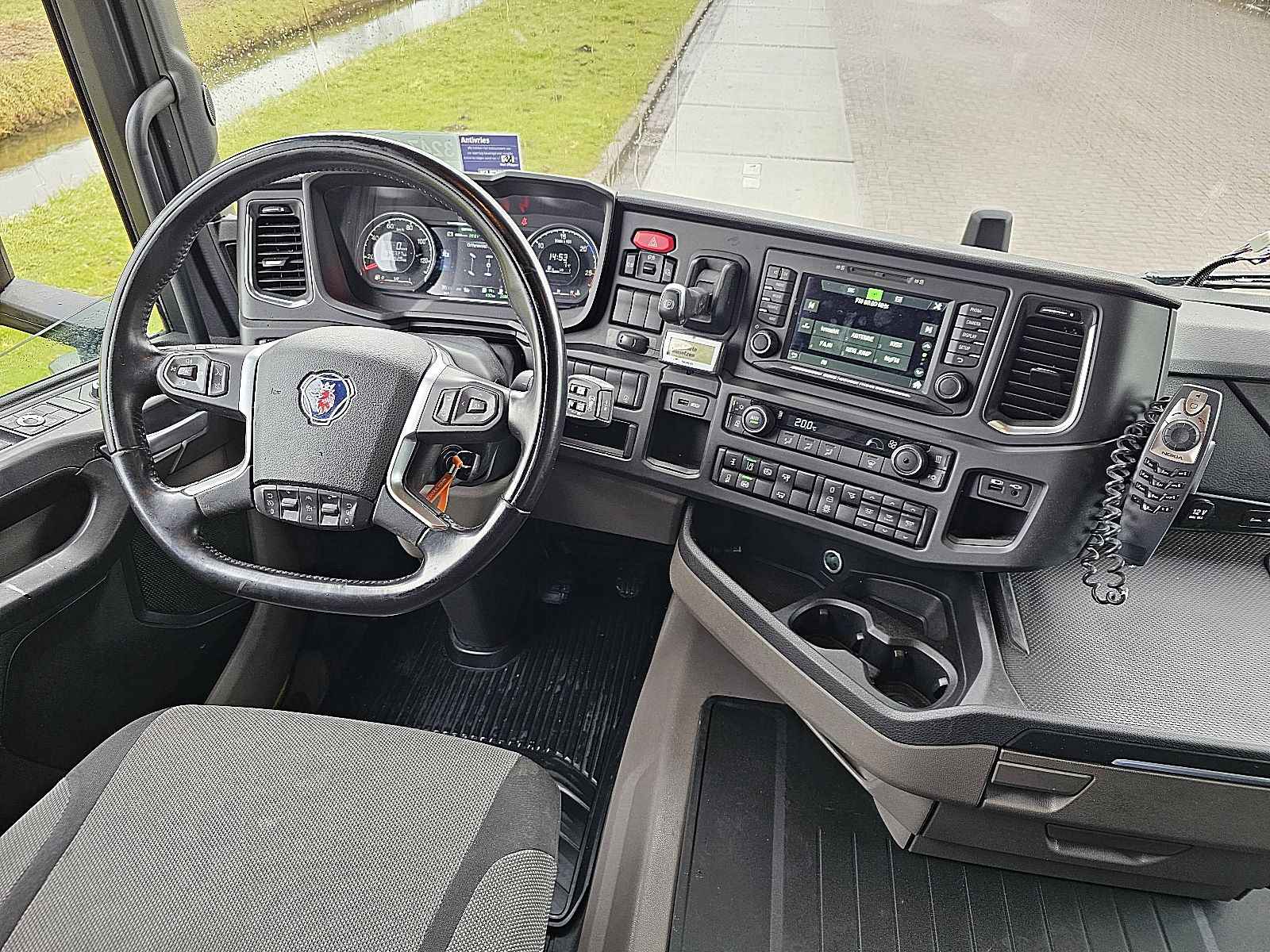 Aantal Assen: 2, Configuratie: 4x2, Diesel inhoud totaal: 1370 liter, 2e dieseltank, Schotelhoogte: 116 cm, Schotel type: Fixed, Aantal sperren: 1, Lichtmetalen velgen, Vering type: luchtvering, Soort cabine: Highline, Cruise control, Tachograaf, Digitale tachograaf, Airconditioning, Stand airco, Standkachel, Elektrische ramen, Elektrische spiegels, Radio/cassette, Carplay, Kleur: Meerkleurig, Verwarmde spiegels, Soort lampen: Led, Laneassist, Climatecontrol, Stoelverwarming, Bluetooth, Motorvermogen: 331 Kw (444 Hp), Brandstof: diesel, Euro: 6, Soort versnellingsbak: Opti-cruise, Merk versnellingsbak: Scania, Versnellingen: 12, Extra remsysteem, Merk retarder: Scania, Stuurbekrachtiging, ABS (Anti Blokkeer Systeem), ASR (Anti Slip Regeling), Start accu, Centrale vergrendeling, Stoelopstelling: 1+1, Stoelbekleding: stof, Stoel verstelling: Handmatig