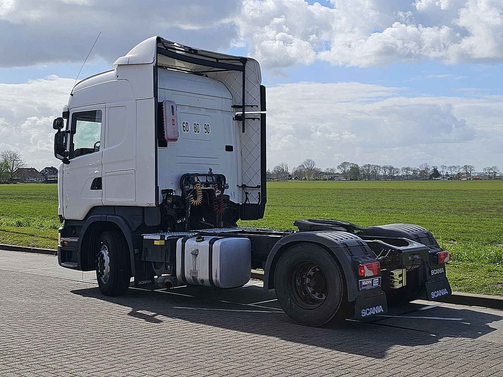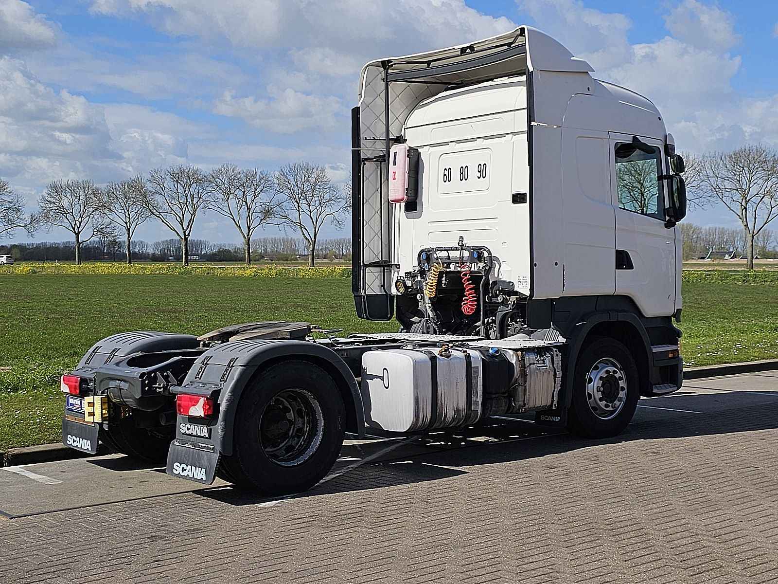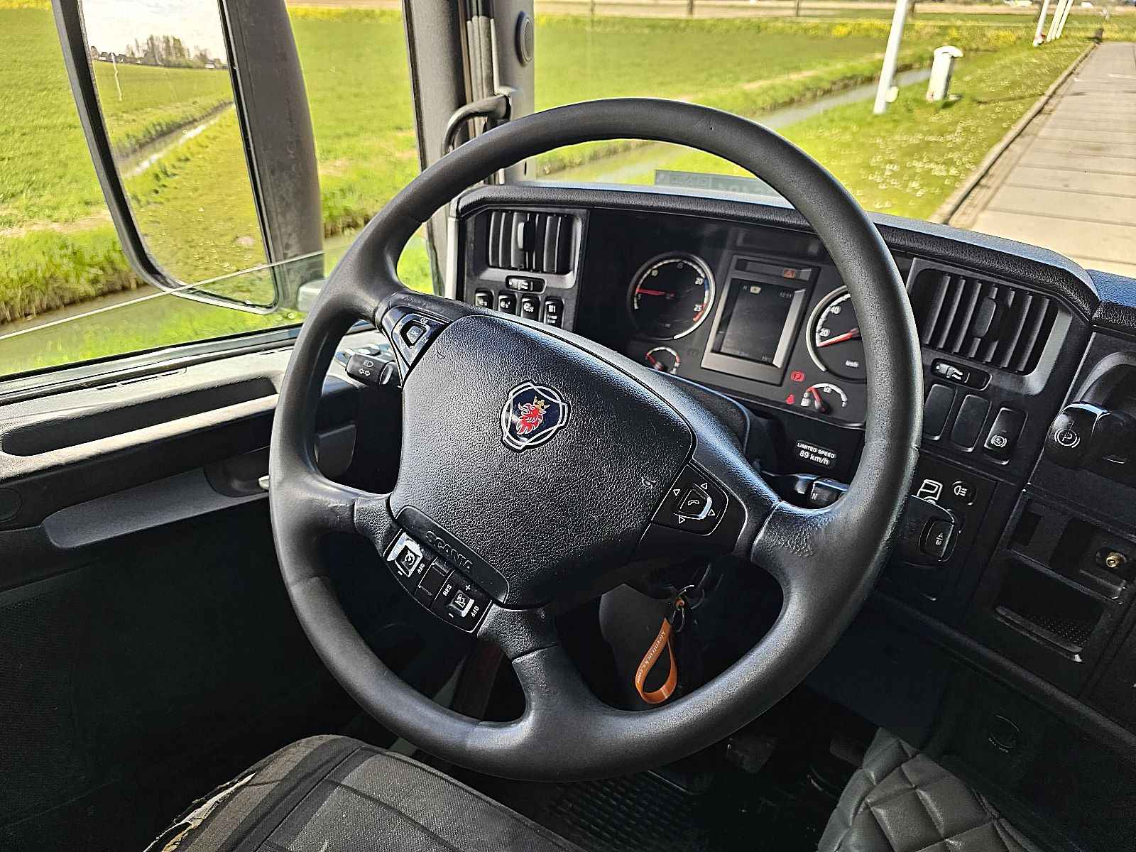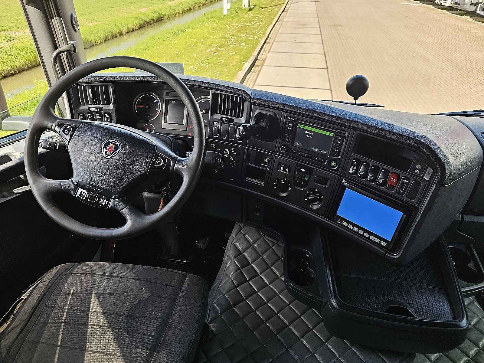 Aantal Assen: 2, Configuratie: 4x2, Eigen gewicht: 8001 kg, Totaalgewicht: 20500 kg, Diesel inhoud totaal: 700 liter, 2e dieseltank, Schotelhoogte: 117 cm, Schotel type: Fixed, Aantal sperren: 1, Soort cabine: slaapcabine, Cruise control, Tachograaf, Digitale tachograaf, Airconditioning, Stand airco, Standkachel, Radio/cassette, Kleur: Wit, Soort lampen: Halogeen, Motorvermogen: 331 Kw (444 Hp), Brandstof: diesel, Euro: 6, Soort versnellingsbak: Opti-cruise, Merk versnellingsbak: Scania, Versnellingen: 12, Extra remsysteem, Merk retarder: Scania, Stuurbekrachtiging, ABS (Anti Blokkeer Systeem), ASR (Anti Slip Regeling), Start accu, Stoelopstelling: 1+1, Stoelbekleding: stof, Stoel verstelling: Handmatig, Retarder 2x TANK 4X2 Export!