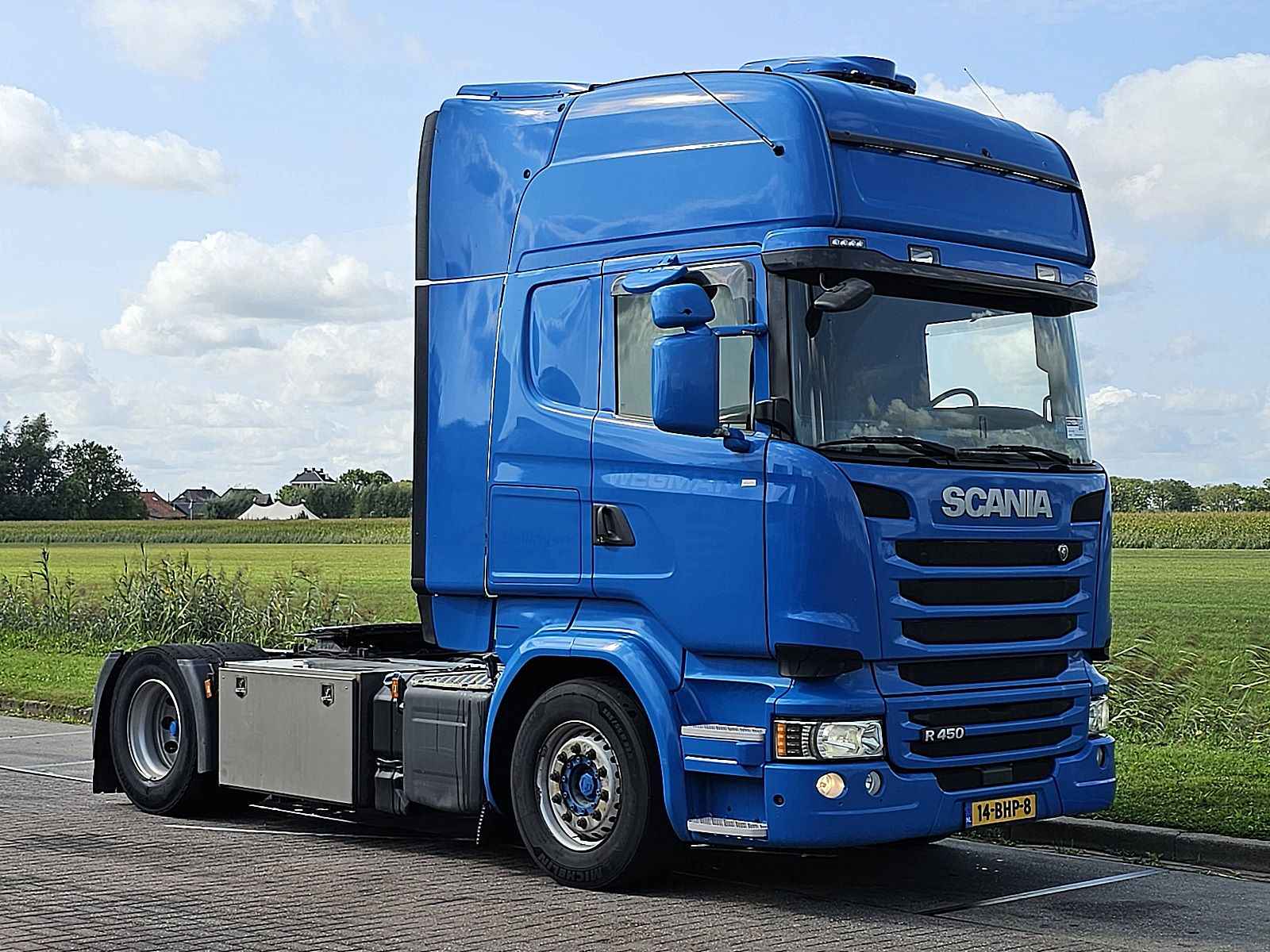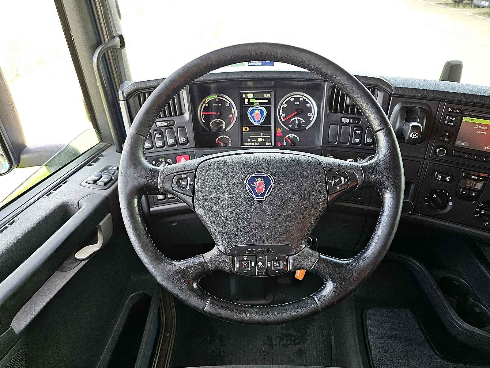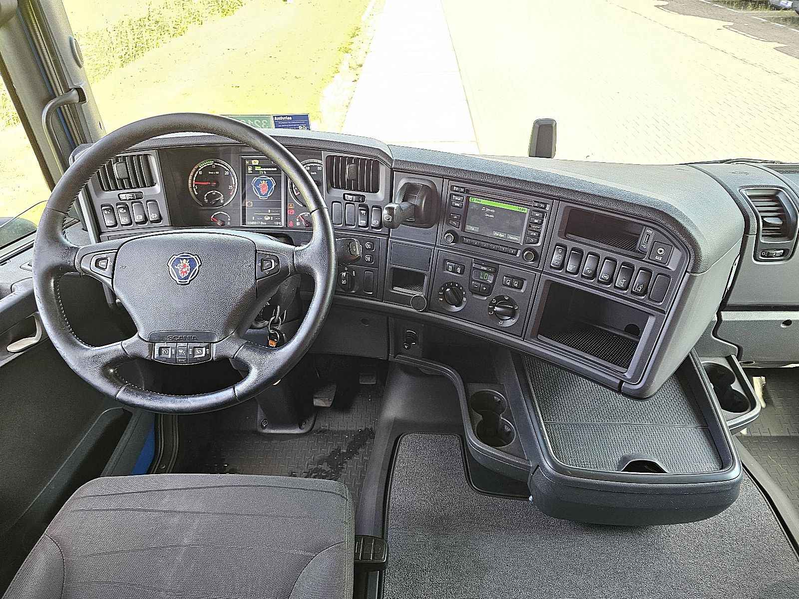 Aantal Assen: 2, Configuratie: 4x2, Laadvermogen: 10911 kg, Eigen gewicht: 8089 kg, Totaalgewicht: 19000 kg, Diesel inhoud totaal: 1000 liter, Trekgewicht ongeremd: 750 kg, Schotelhoogte: 110 cm, Schotel type: Fixed, Aantal sperren: 1, Vering type: luchtvering, Soort cabine: Highline, Cruise control, Tachograaf, Digitale tachograaf, Airconditioning, Stand airco, Standkachel, Elektrische ramen, Elektrische spiegels, Radio/cassette, GPS navigatie, Kleur: Blauw, Verwarmde spiegels, Soort lampen: Halogeen, Snelheidsbegrenzing, Laneassist, Climatecontrol, Stoelverwarming, Bluetooth, Motorvermogen: 331 Kw (444 Hp), Brandstof: diesel, Euro: 6, Soort versnellingsbak: Opti-cruise, Merk versnellingsbak: Scania, Snelheidsbegrenzing, Versnellingen: 12, Extra remsysteem, Merk retarder: Scania, Stuurbekrachtiging, ABS (Anti Blokkeer Systeem), ASR (Anti Slip Regeling), Start accu, Centrale vergrendeling, Zitplaatsen: 2, Stoelopstelling: 1+1, Stoelbekleding: stof, Stoel verstelling: Handmatig