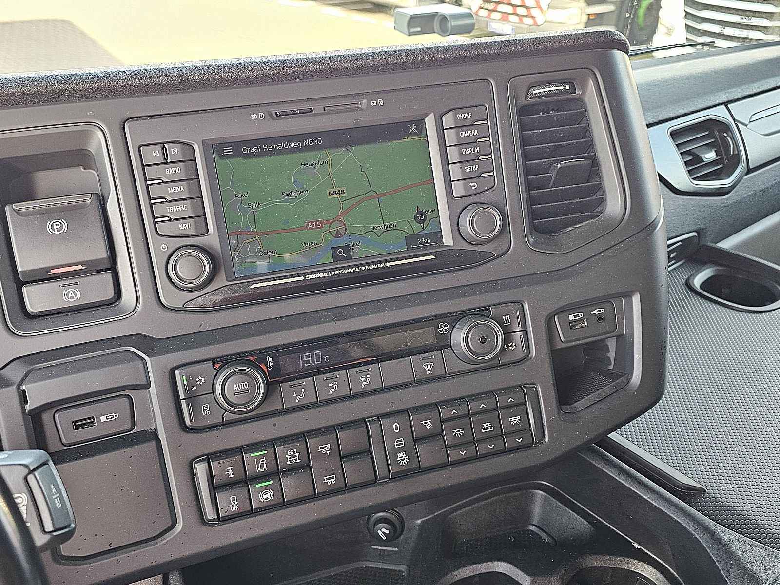 Aantal Assen: 2, Configuratie: 4x2, Eigen gewicht: 8184 kg, Totaalgewicht: 19000 kg, Diesel inhoud totaal: 865 liter, 2e dieseltank, Schotelhoogte: 117 cm, Schotel type: Fixed, Aantal sperren: 1, Vering type: luchtvering, Soort cabine: slaapcabine, Cruise control, Tachograaf, Digitale tachograaf, Airconditioning, Stand airco, Standkachel, Elektrische ramen, Elektrische spiegels, Radio/cassette, Carplay, GPS navigatie, Kleur: Rood, Verwarmde spiegels, Soort lampen: Led, Laneassist, Climatecontrol, Stoelverwarming, Bluetooth, Dodehoek detectie, Motorvermogen: 338 Kw (453 Hp), Brandstof: diesel, Euro: 6, Soort versnellingsbak: Opti-cruise, Merk versnellingsbak: Scania, Versnellingen: 12, Extra remsysteem, Merk retarder: Scania, Stuurbekrachtiging, ABS (Anti Blokkeer Systeem), ASR (Anti Slip Regeling), PTO, PTO soort: 2, Start accu, Centrale vergrendeling, Stoelopstelling: 1+1, Stoelbekleding: stof, Stoel verstelling: Handmatig