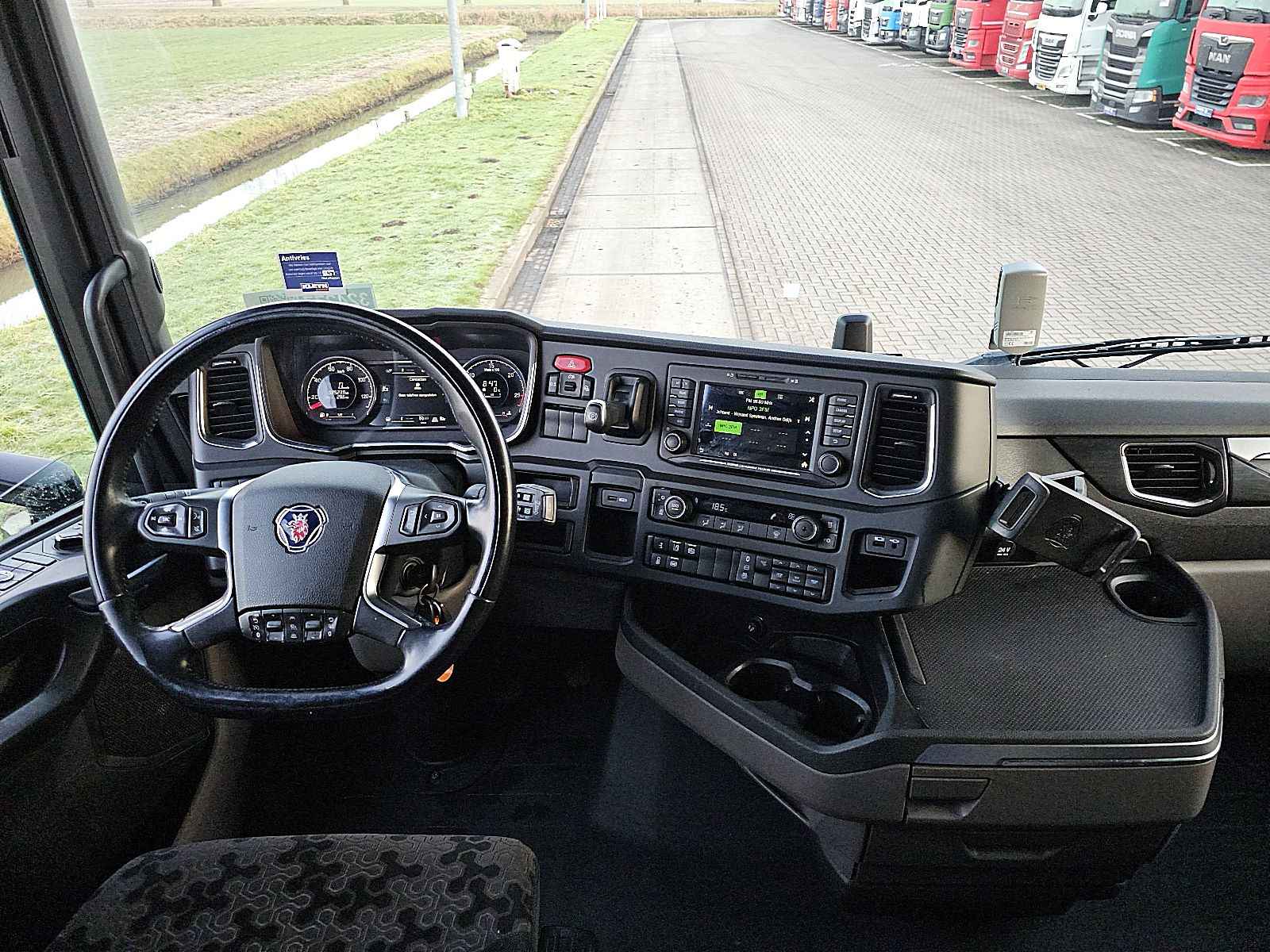 Aantal Assen: 2, Configuratie: 4x2, Eigen gewicht: 8919 kg, Totaalgewicht: 19000 kg, Diesel inhoud totaal: 1400 liter, 2e dieseltank, Schotelhoogte: 120 cm, Schotel type: Fixed, Aantal sperren: 1, Vering type: luchtvering, Soort cabine: Highline, Cruise control, Tachograaf, Digitale tachograaf, Airconditioning, Stand airco, Standkachel, Elektrische ramen, Elektrische spiegels, Radio/cassette, Carplay, GPS navigatie, Kleur: Turquoise, Verwarmde spiegels, Soort lampen: Led, Laneassist, Climatecontrol, Stoelverwarming, Bluetooth, Motorvermogen: 368 Kw (493 Hp), Brandstof: diesel, Euro: 6, Soort versnellingsbak: Opti-cruise, Merk versnellingsbak: Scania, Versnellingen: 12, Extra remsysteem, Merk retarder: Scania, Stuurbekrachtiging, ABS (Anti Blokkeer Systeem), ASR (Anti Slip Regeling), Start accu, Centrale vergrendeling, Stoelopstelling: 1+1, Stoelbekleding: stof, Stoel verstelling: Handmatig