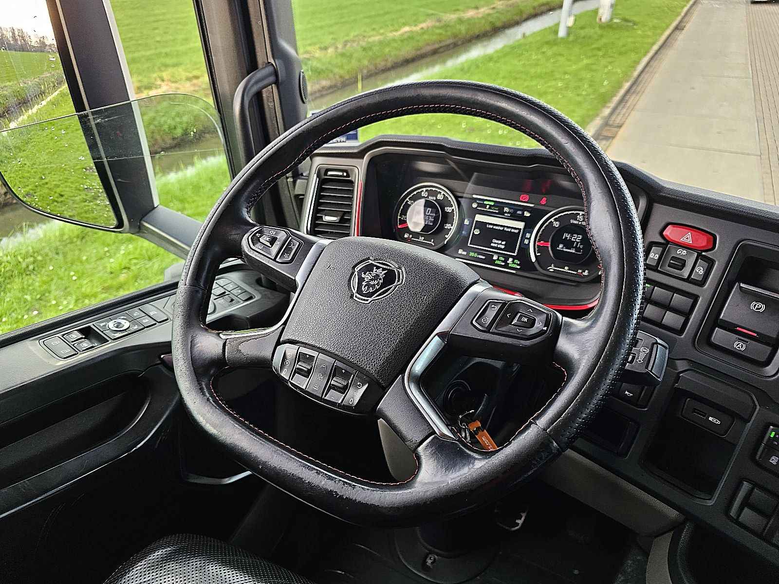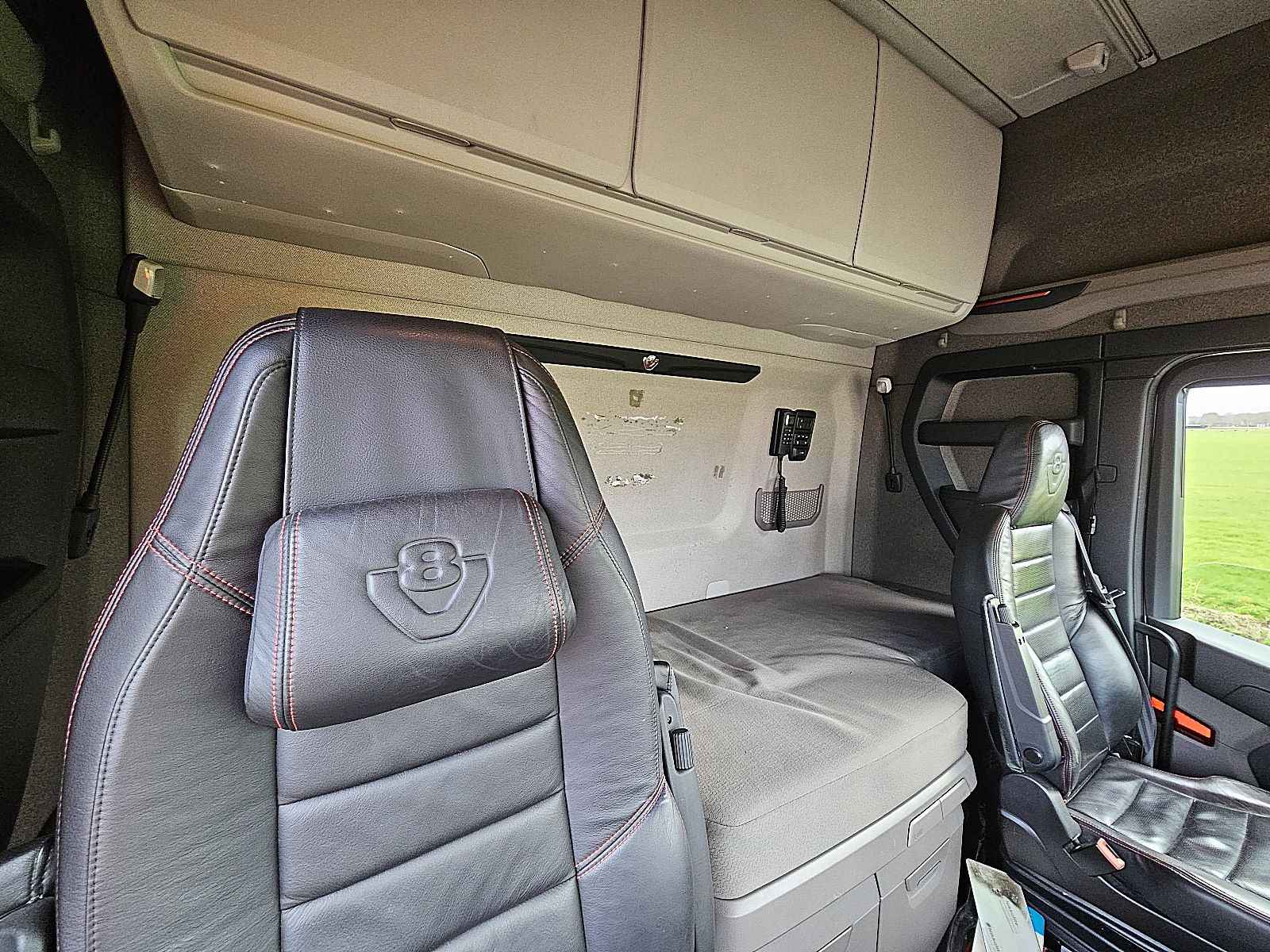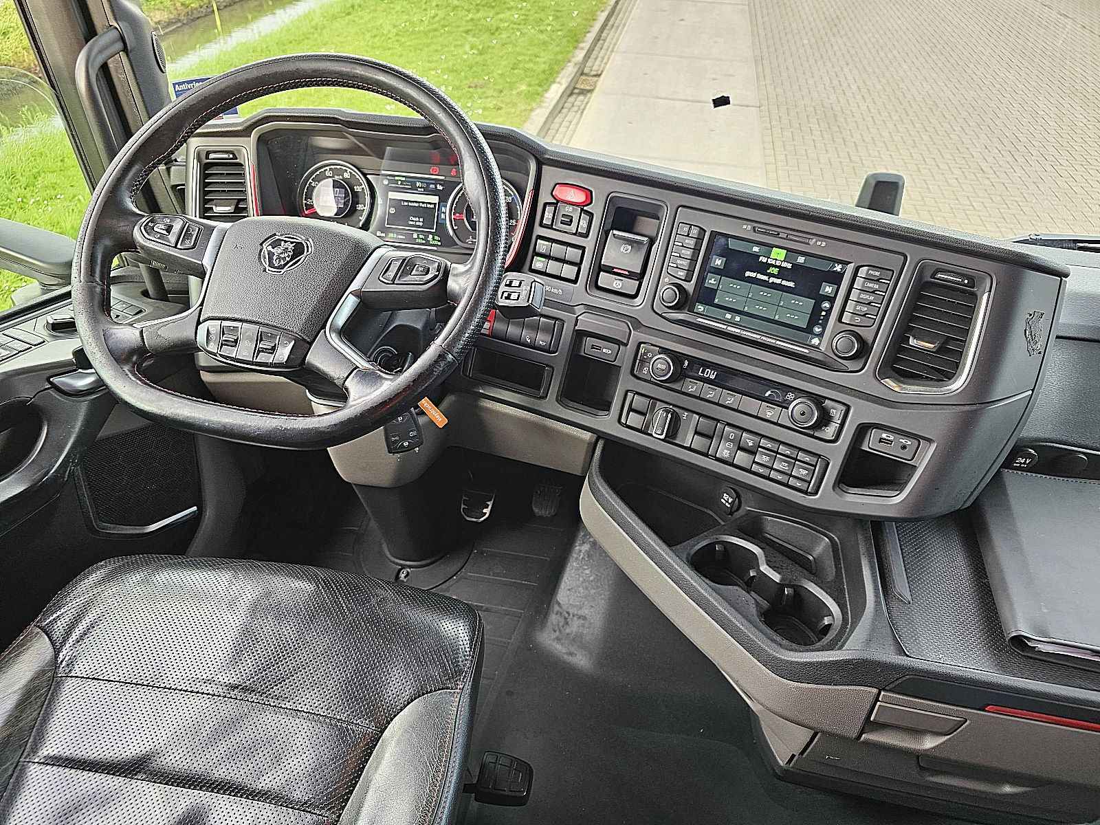 Aantal Assen: 2, Configuratie: 4x2, Eigen gewicht: 9085 kg, Totaalgewicht: 20500 kg, Diesel inhoud totaal: 1200 liter, 2e dieseltank, Schotelhoogte: 121 cm, Schotel type: Fixed, Aantal sperren: 1, Lichtmetalen velgen, Vering type: luchtvering, Soort cabine: Highline, Cruise control, Tachograaf, Digitale tachograaf, Airconditioning, Stand airco, Standkachel, Elektrische ramen, Elektrische spiegels, Radio/cassette, Carplay, GPS navigatie, Kleur: Wit, Verwarmde spiegels, Soort lampen: Led, Laneassist, Climatecontrol, Stoelverwarming, Bluetooth, Motorvermogen: 427 Kw (573 Hp), Brandstof: diesel, Euro: 6, Soort versnellingsbak: Opti-cruise, Merk versnellingsbak: Scania, Versnellingen: 12, Extra remsysteem, Merk retarder: Scania, Stuurbekrachtiging, ABS (Anti Blokkeer Systeem), ASR (Anti Slip Regeling), Start accu, Centrale vergrendeling, Stoelopstelling: 1+1, Stoelbekleding: leder, Stoel verstelling: Handmatig, Highline,durabright etc