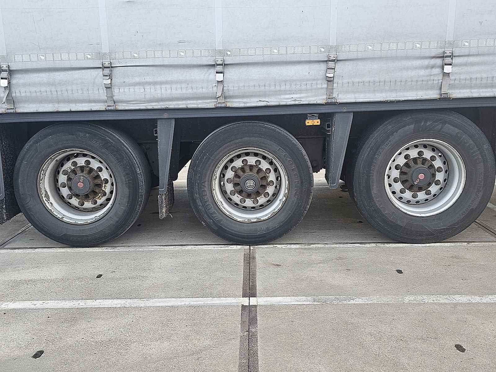 Aantal Assen: 3, Laadvermogen: 32024 kg, Eigen gewicht: 6976 kg, Totaalgewicht: 39000 kg, Soort chassis: Volledig chassis, Kingpin afmeting: 2 inch, Vering type: vollucht, ABS (Anti Blokkeer Systeem), EBS, Bouwjaar opbouw: 2016, Zijwand materiaal: zeil, Schuifdak, Merk as: SAF