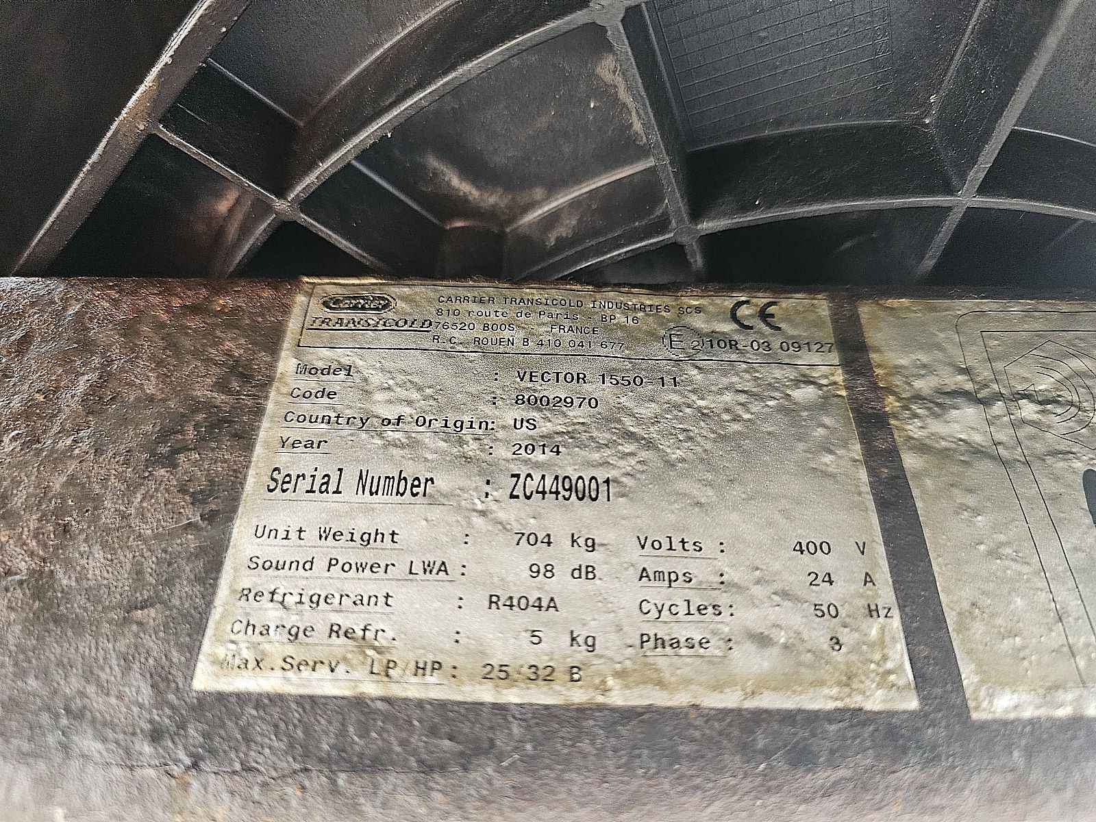 Aantal Assen: 3, Laadvermogen: 33252 kg, Eigen gewicht: 8748 kg, Totaalgewicht: 42000 kg, Soort chassis: Niet volledig chassis, Kingpin afmeting: 2 inch, Vering type: vollucht, ABS (Anti Blokkeer Systeem), EBS, Bouwjaar opbouw: 2015, Zijwand materiaal: geisoleerd, Merk koelmotor: Carrier, Type koelmotor: Vector1550, Koelmotor: diesel/elektrisch, Draaiuren elektrisch: 1919 uur, Draaiuren diesel: 16073 uur, Wanddikte: 45 mm, Soort koeling: Koelen, Dag/nacht koeling: dag/nacht cooling, Merk as: SCHMITZ