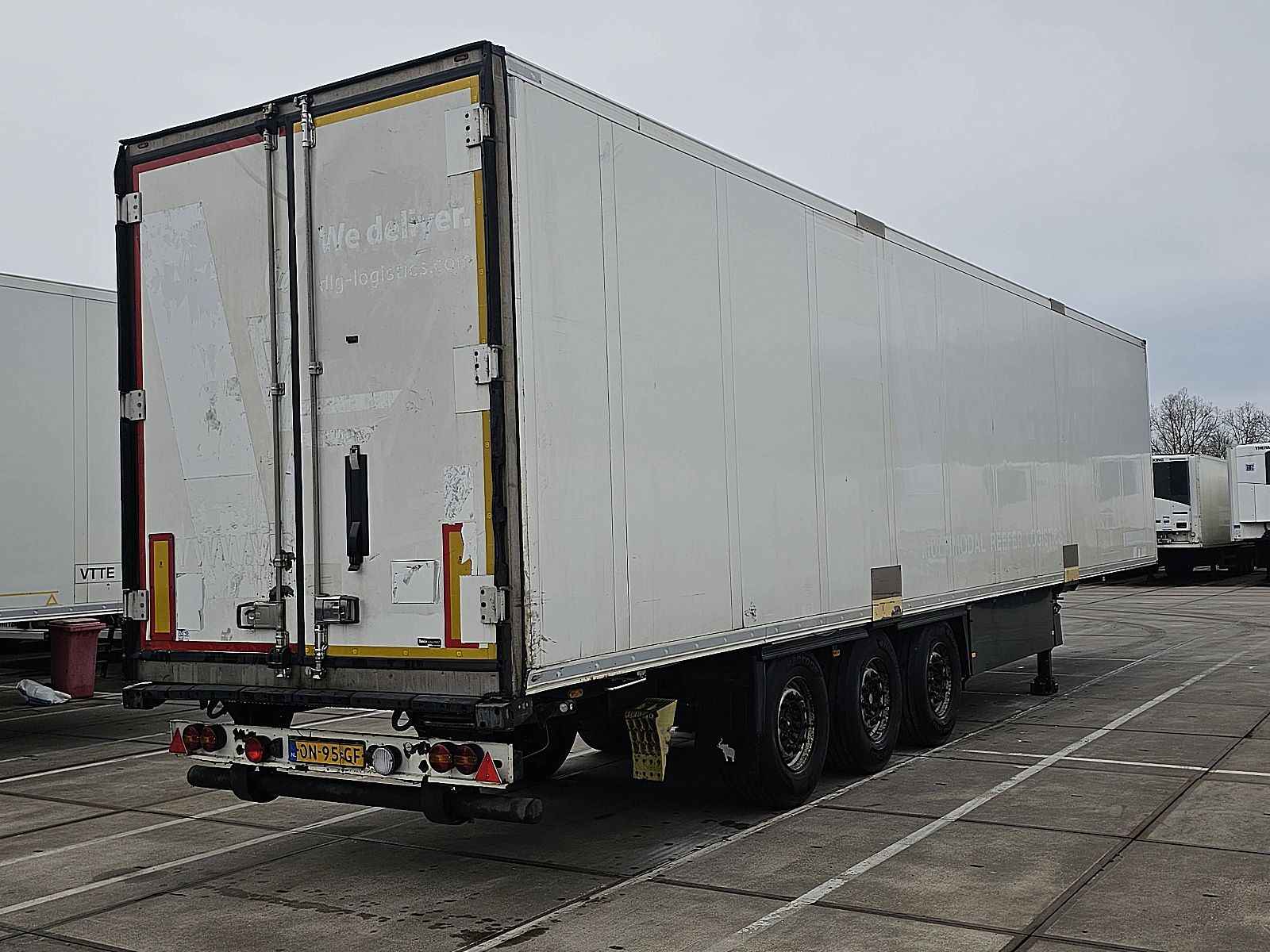 Aantal Assen: 3, Laadvermogen: 33278 kg, Eigen gewicht: 8722 kg, Totaalgewicht: 42000 kg, Soort chassis: Niet volledig chassis, Kingpin afmeting: 2 inch, Vering type: vollucht, ABS (Anti Blokkeer Systeem), EBS, Bouwjaar opbouw: 2014, Zijwand materiaal: geisoleerd, Merk koelmotor: Thermoking, Type koelmotor: SLXe Spectrum, Koelmotor: diesel/elektrisch, Draaiuren elektrisch: 2405 uur, Draaiuren diesel: 21369 uur, Laadbakisolatie, Wanddikte: 45 mm, Soort koeling: Koelen, Dag/nacht koeling: dag/nacht cooling, Extra verdamper, Merk as: SCHMITZ