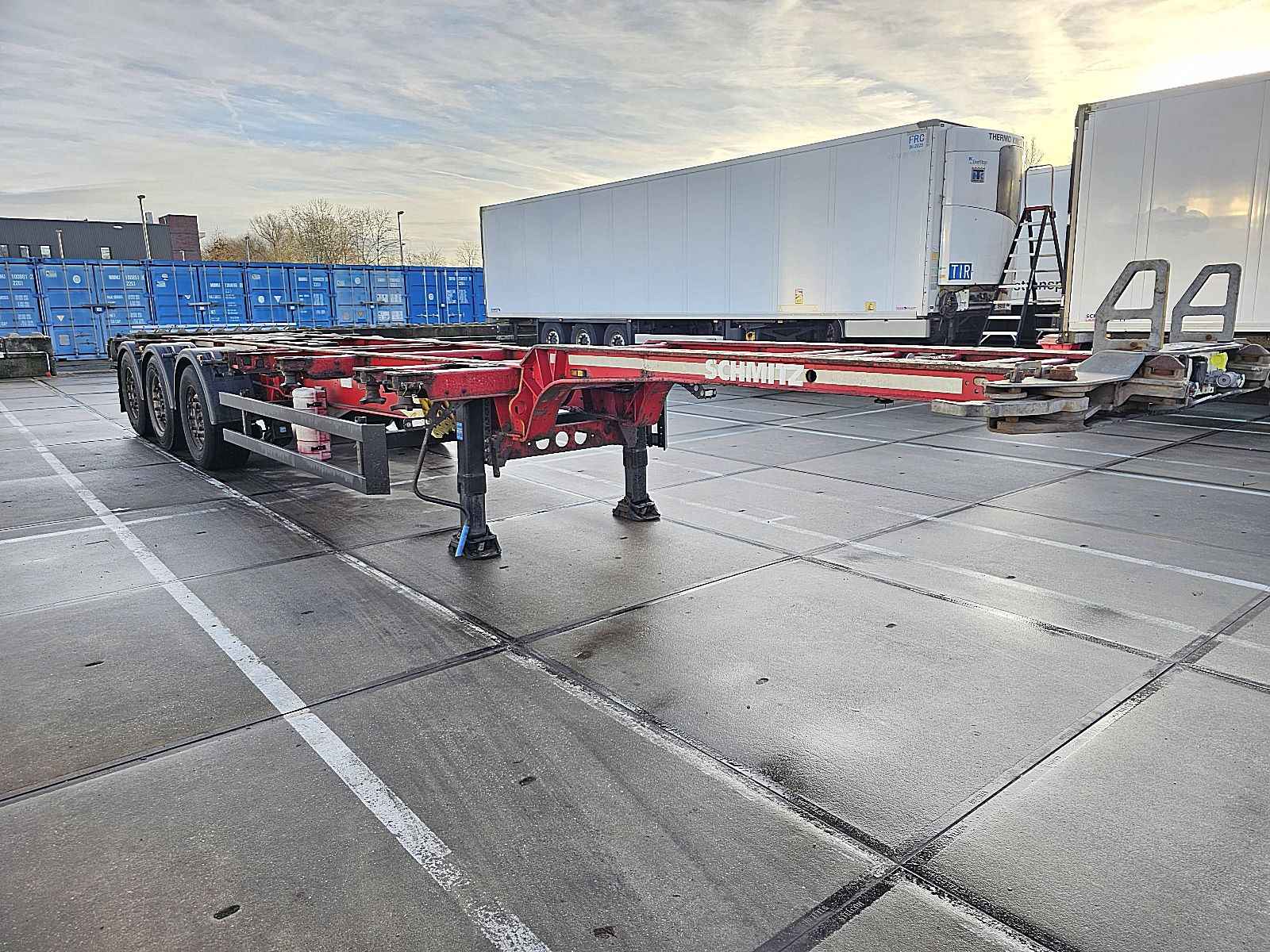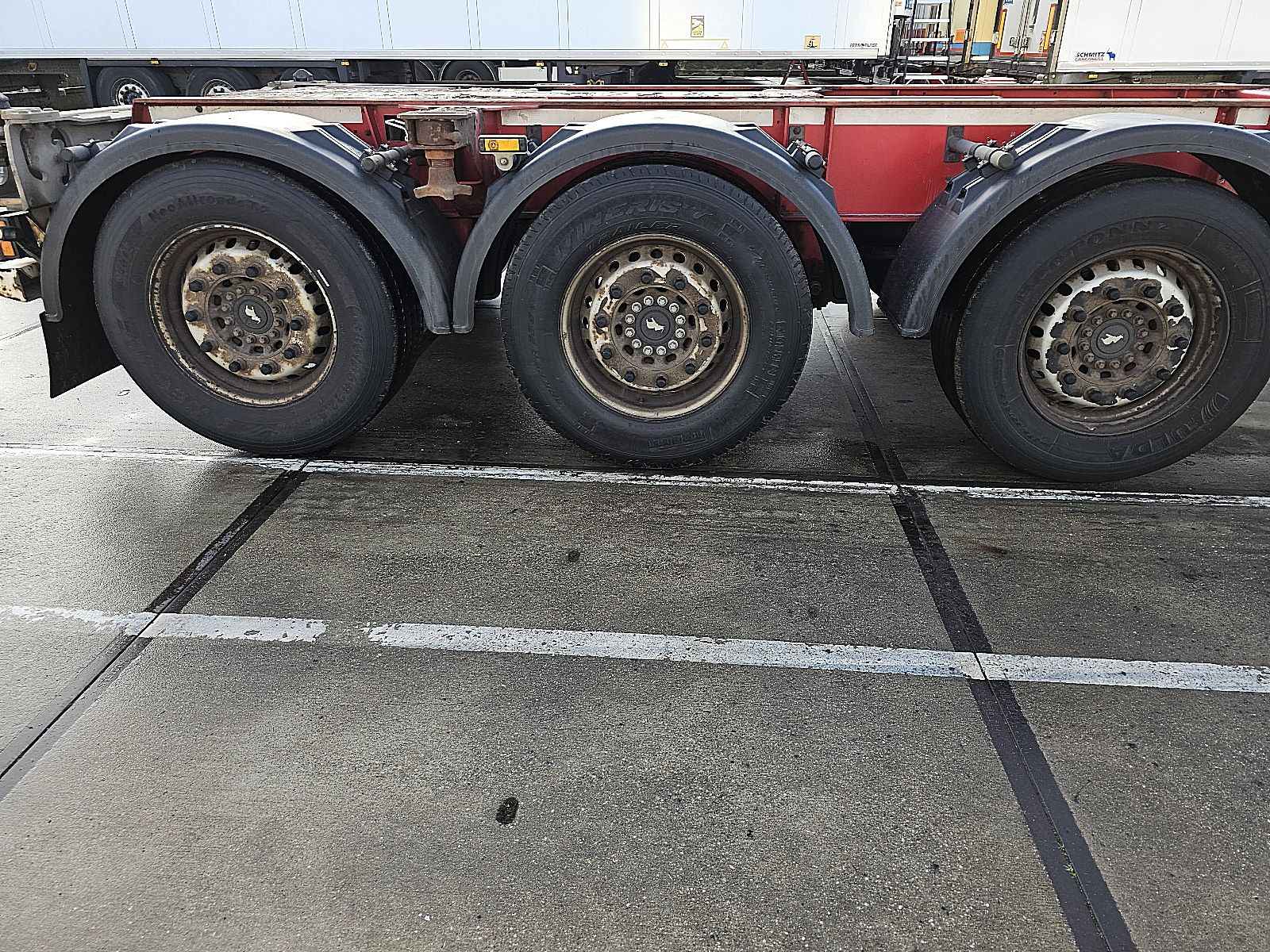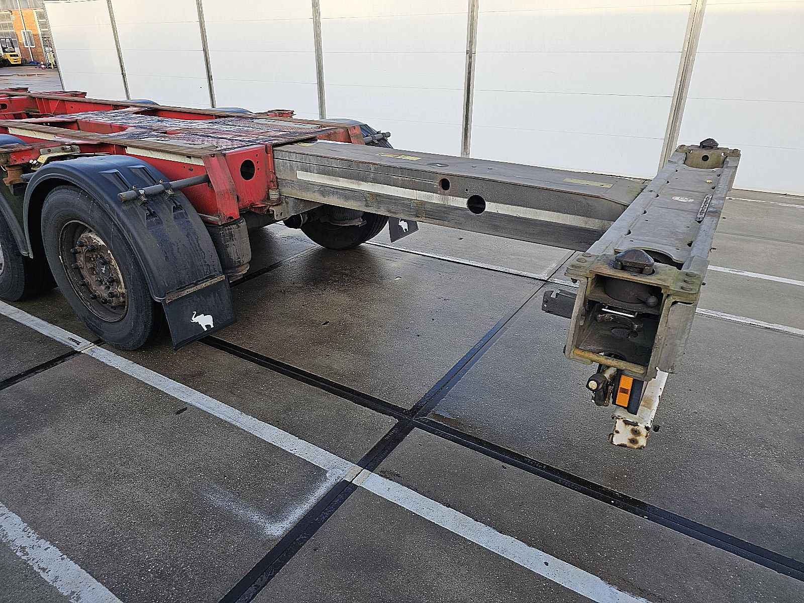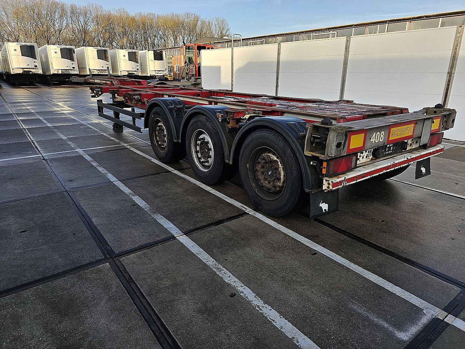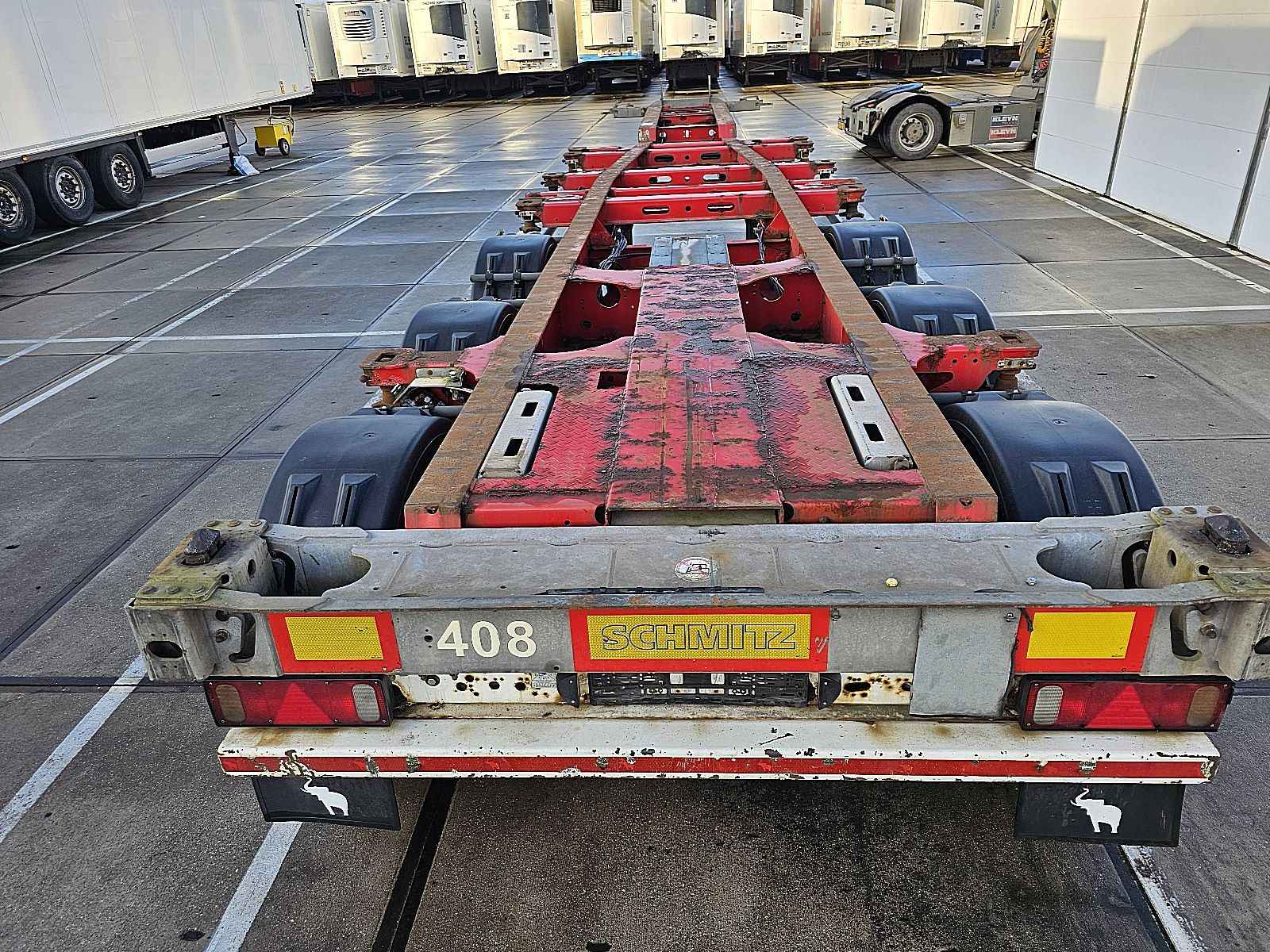 Aantal Assen: 3, Soort chassis: Volledig chassis, Materiaal chassis: staal, Kingpin afmeting: 2 inch, Vering type: vollucht, ABS (Anti Blokkeer Systeem), EBS, Bouwjaar opbouw: 2012, Twistlocks: 2x20 + 1x30 + 1x40 + 1x45 high cube, Uitschuifbare chassis: Voorkant / achter, Merk as: SCHMITZ