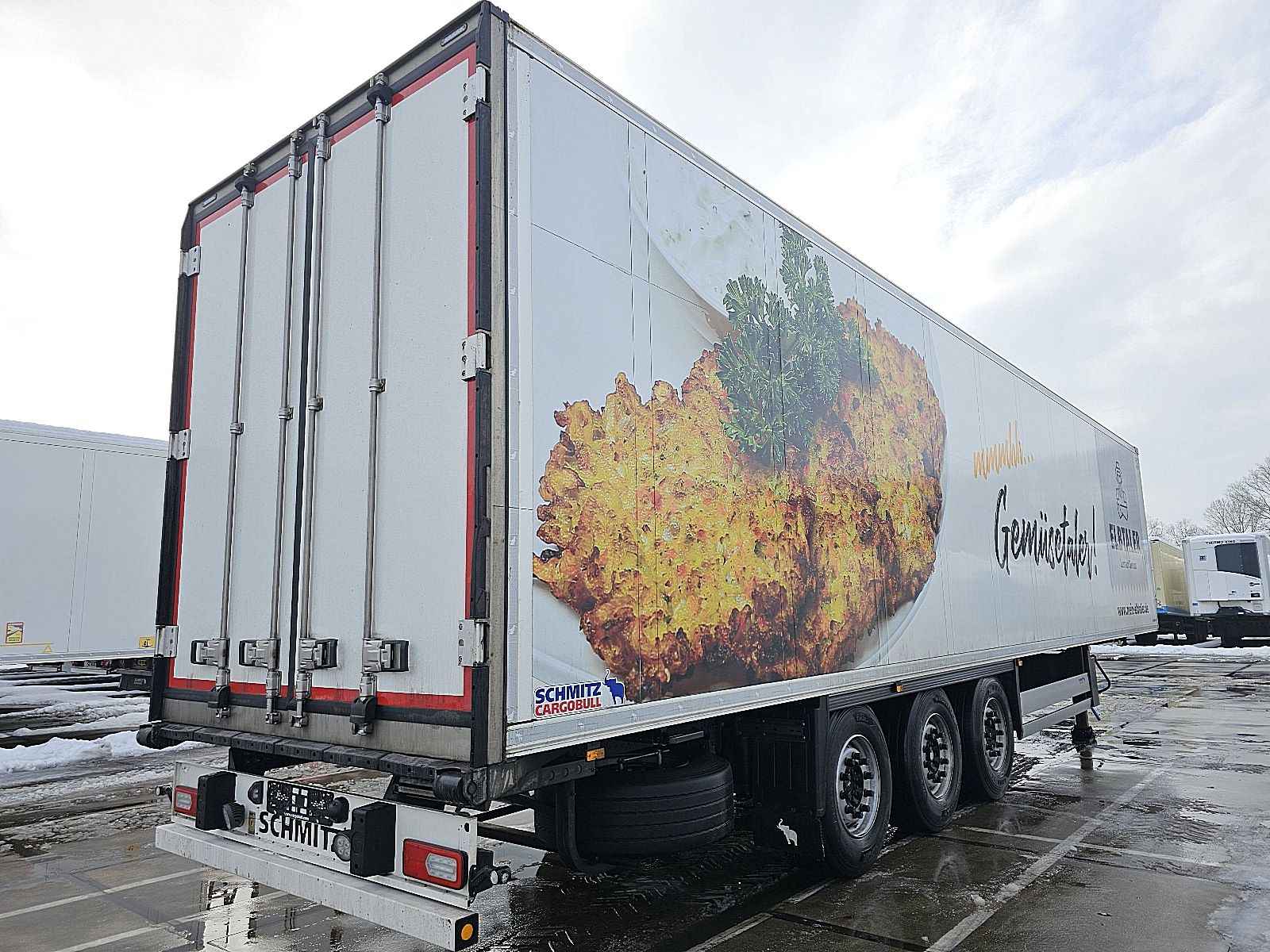 Aantal Assen: 3, Eigen gewicht: 8421 kg, Totaalgewicht: 39000 kg, Soort chassis: Niet volledig chassis, Materiaal chassis: staal, Kingpin afmeting: 2 inch, Vering type: luchtvering, ABS (Anti Blokkeer Systeem), EBS, Bouwjaar opbouw: 2021, Merk koelmotor: Schmitz Cargobull, Type koelmotor: Tkm, Koelmotor: diesel/elektrisch, Draaiuren elektrisch: 725 uur, Draaiuren diesel: 1885 uur, ATP-conditie: 01_2027, Verwarming, Wanddikte: 45 mm, Soort koeling: Koelen, Merk as: SCHMITZ, Reservewiel, Profiel reservewiel: 7 %
