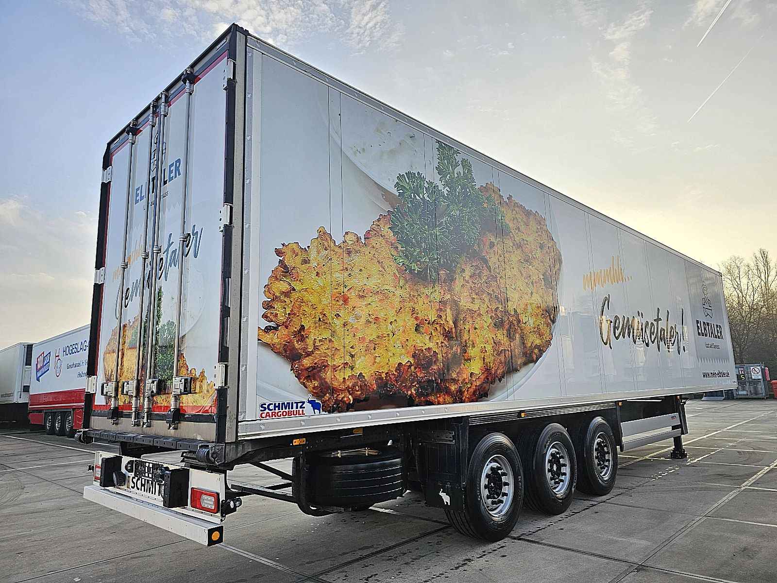 Aantal Assen: 3, Eigen gewicht: 8418 kg, Totaalgewicht: 39000 kg, Soort chassis: Niet volledig chassis, Materiaal chassis: staal, Kingpin afmeting: 2 inch, Vering type: luchtvering, ABS (Anti Blokkeer Systeem), EBS, Bouwjaar opbouw: 2021, Merk koelmotor: Schmitz Cargobull, Type koelmotor: Tkm, Koelmotor: diesel/elektrisch, Draaiuren elektrisch: 273 uur, Draaiuren diesel: 2614 uur, ATP-conditie: 01_2027, Verwarming, Wanddikte: 45 mm, Soort koeling: Koelen, Merk as: SCHMITZ, Reservewiel, Profiel reservewiel: 4 %