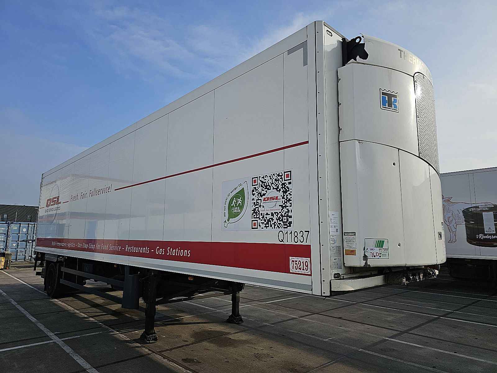 Aantal Assen: 1, Dubbele banden, Eigen gewicht: 8840 kg, Totaalgewicht: 22000 kg, Soort chassis: Niet volledig chassis, Materiaal chassis: staal, Kingpin afmeting: 2 inch, Vering type: luchtvering, ABS (Anti Blokkeer Systeem), EBS, Bouwjaar opbouw: 2017, Merk koelmotor: Thermoking, Type koelmotor: Slxi, Koelmotor: diesel/elektrisch, Draaiuren elektrisch: 374 uur, Draaiuren diesel: 16394 uur, Laadbakisolatie, Wanddikte: 40 mm, Soort koeling: Koelen, Extra verdamper, Merk as: SAF, Laadklep, Soort laadklep: achtersluit klep, Capaciteit laadklep: 2500 kg, Merk laadklep: Dhollandia, Materiaal laadklep: aluminium, Plateau grootte: 240x257, Laadklep accu