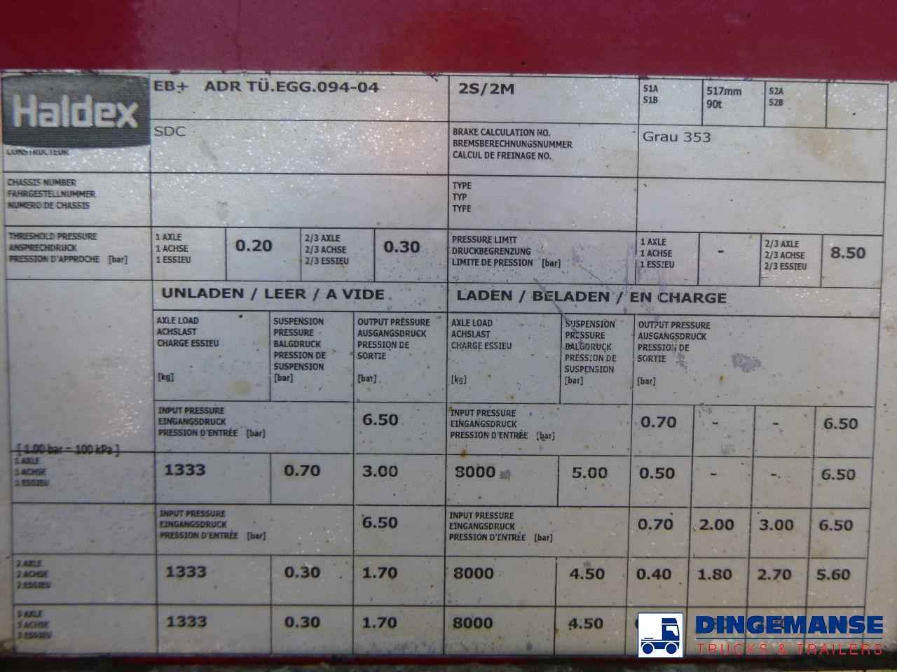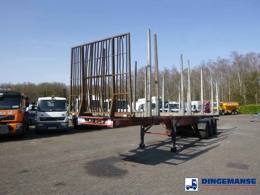 3- Axle 39 t log trailer, Air suspension, SAF axles, Drum brakes, ABS, Kingpin diameter 2 inches, Kingpin height 120 cm, Tyre size: 455/45R22.5, Load height: 165 cm, Headboard hight: 379 cm, Shipment dimensions 1310x255x411 cm.