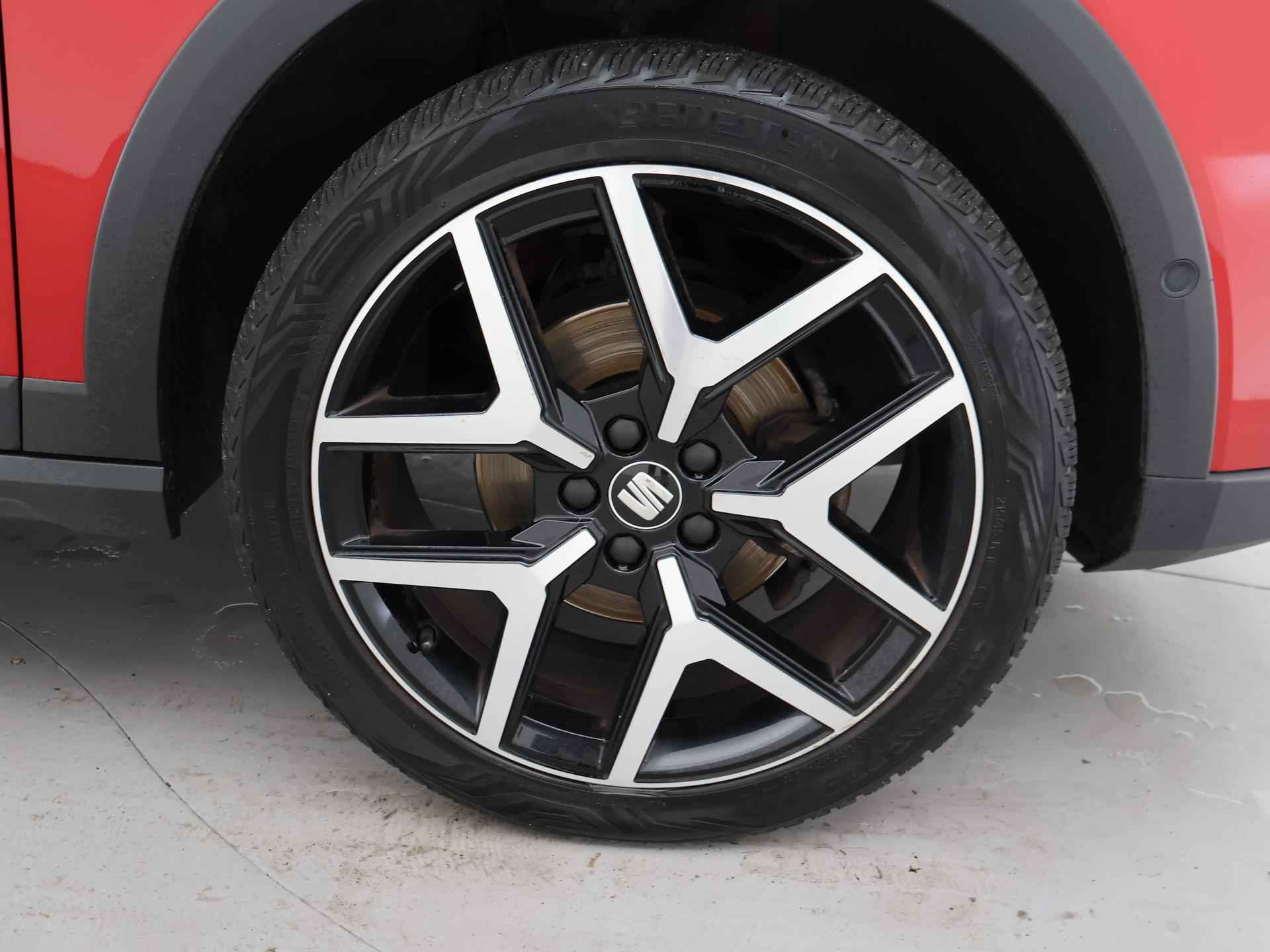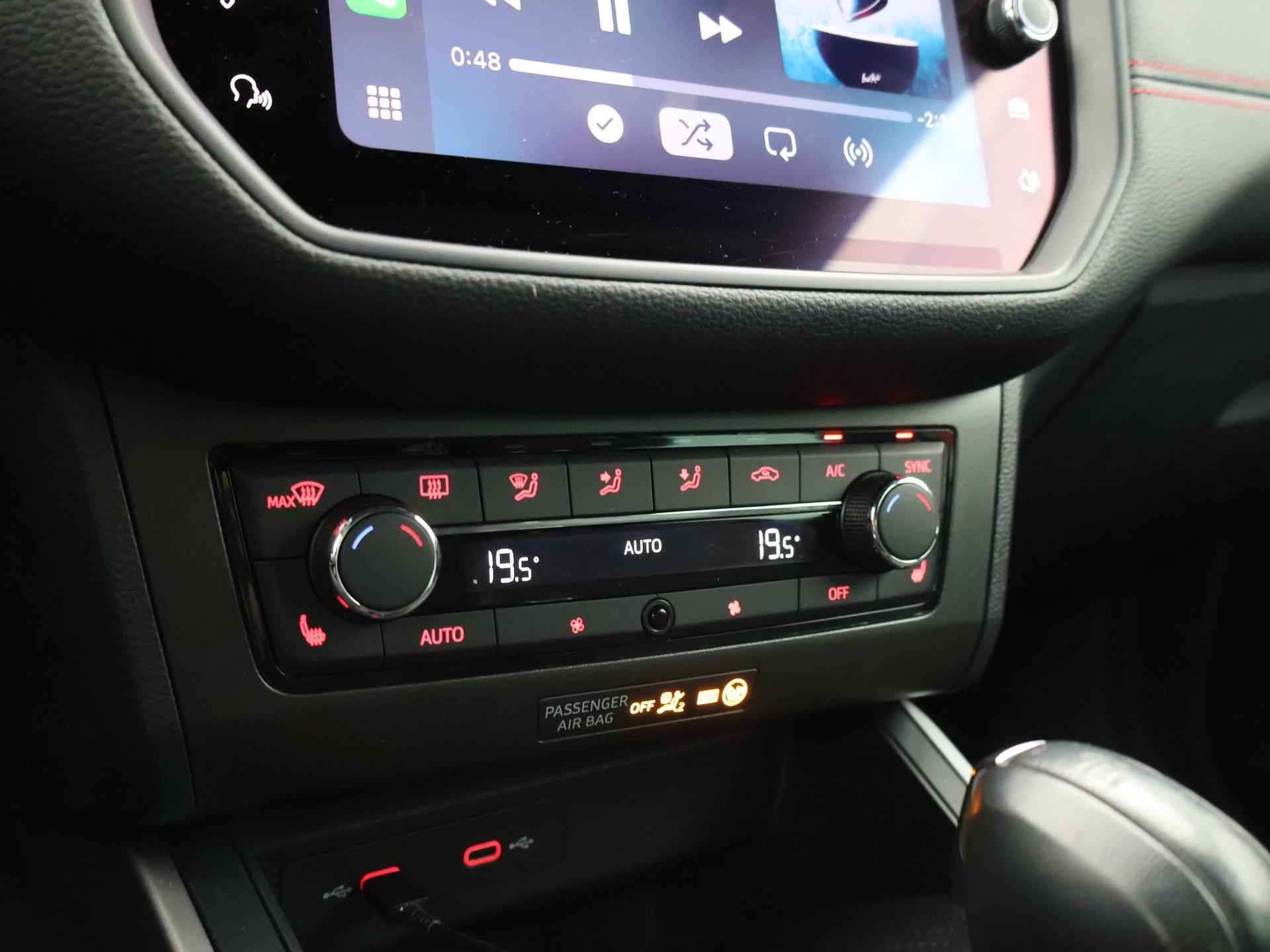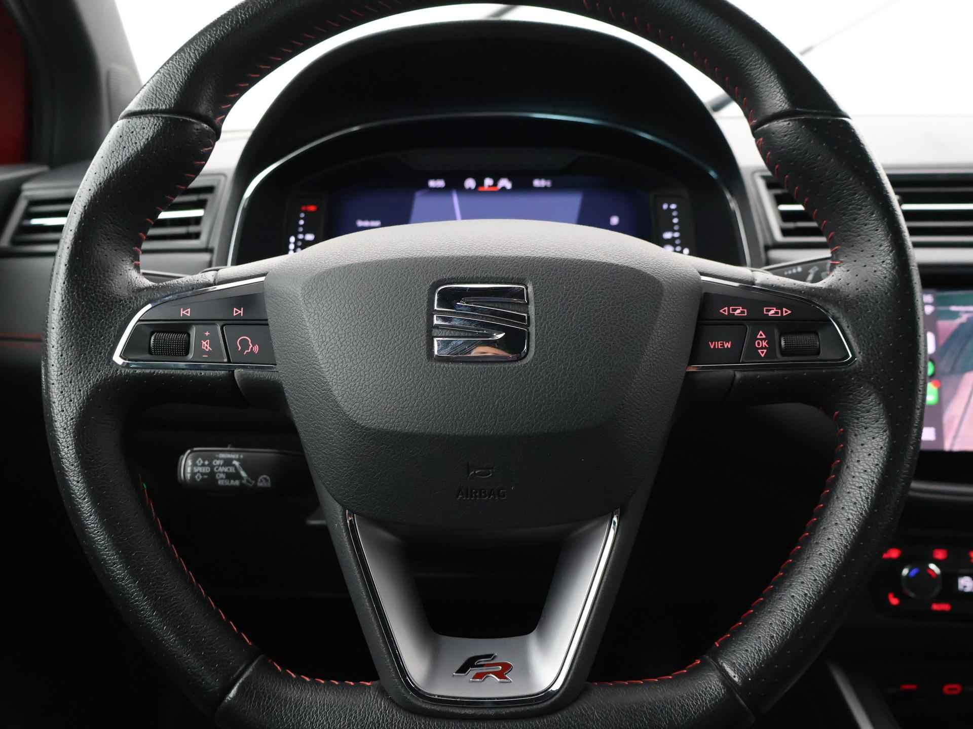 1.0 TSI 110 PK Automaat, BTW verrekenbaar, FR uitvoering met FR Sportpakket interieur + exterieur, FR bumpers, 18 inch velgen, Sportstoelen, Sportstuur, Zwarte hemelbekleding, Full LED koplampen, LED achterlichten, Donker glas achter, Desire Red metallic met Midnight Black dak en buitenspiegels, Virtual cockpit digitale cockpit met verschillende thema's en tellerweergave mogelijkheden en navigatiekaartweergave, Trekhaak, Navigatie, Apple Carplay / Android Auto appstreaming Google Maps, Flitsmeister, Whatsapp, Spotify etc, Adaptive cruise control, Achteruitrijcamera, Stoelverwarming, Climate control, Parkeersensoren voor + achter met inparkeerhulp, Dodehoek assistentie, Sfeerverlichting interieur, DAB+ digitale radio, Schakelflippers aan het stuurwiel.