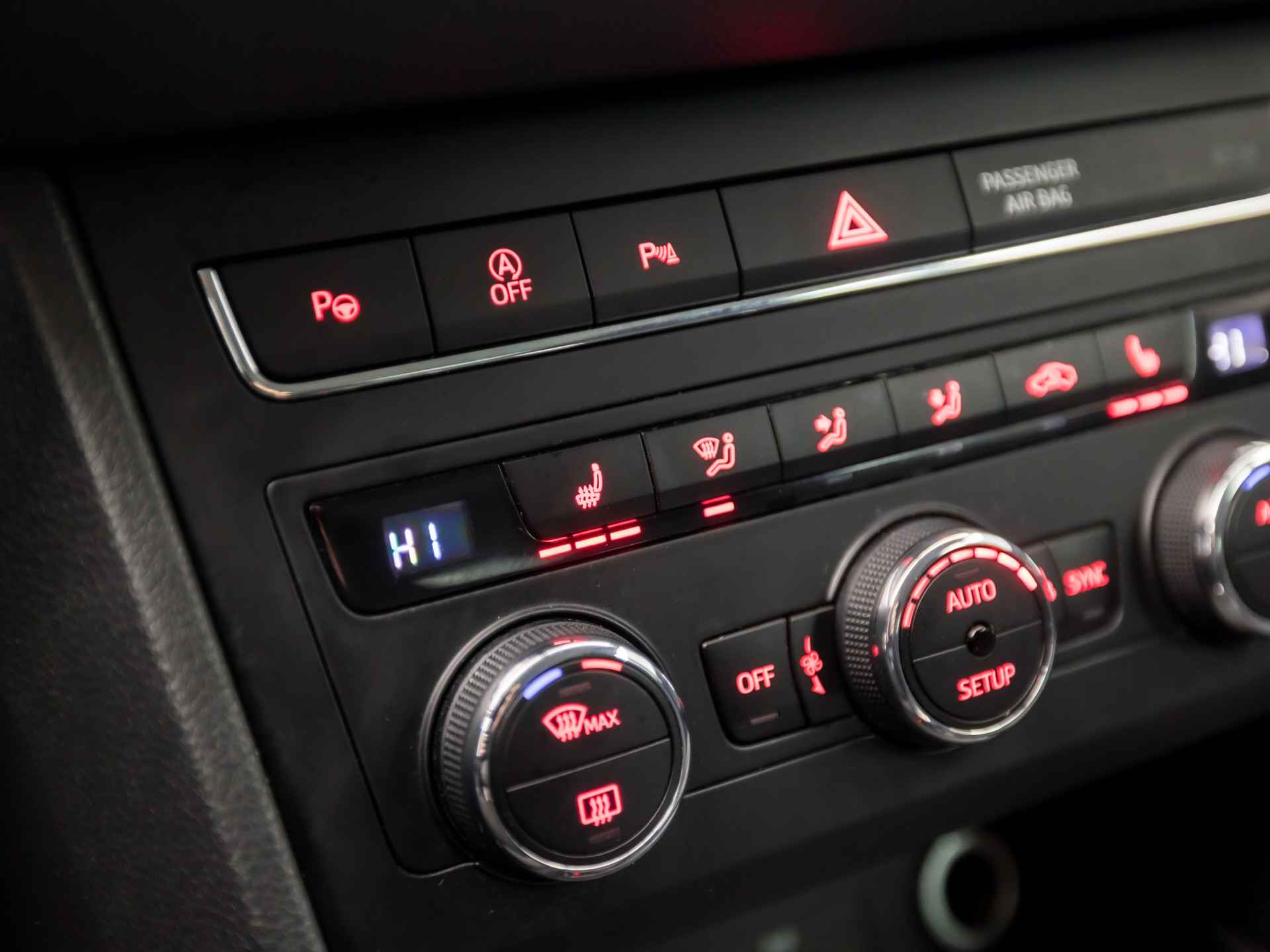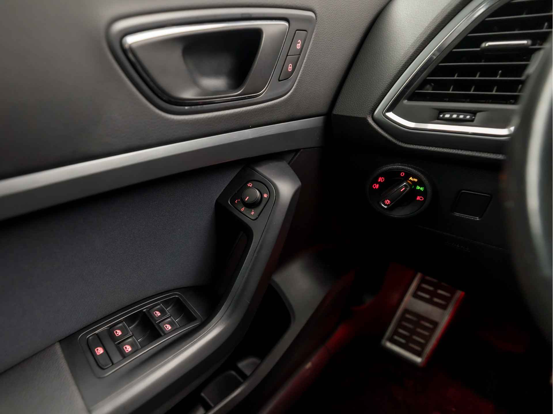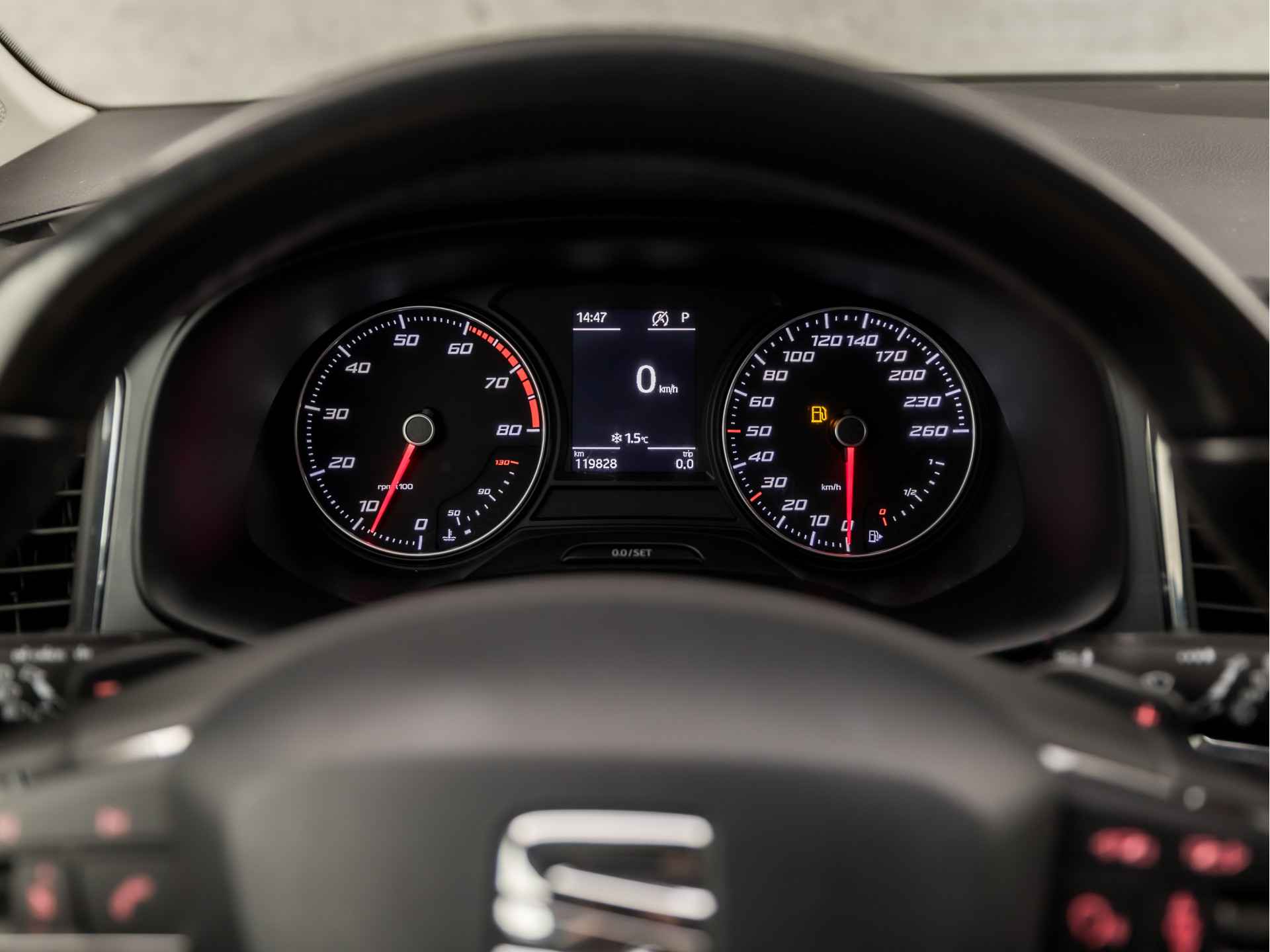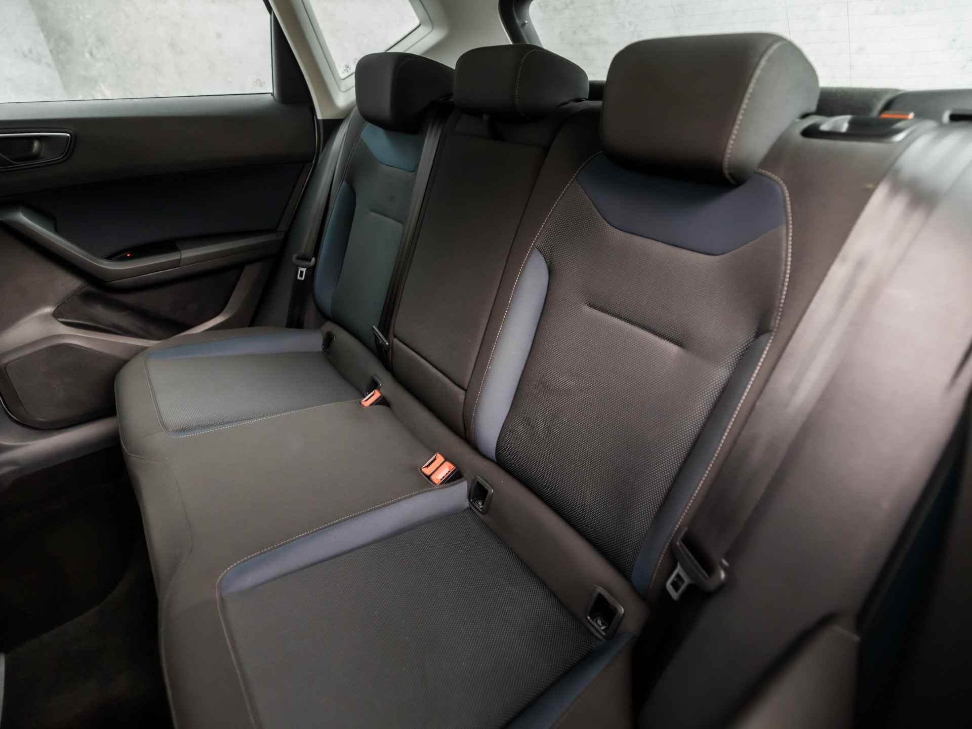 Niets achter deze auto blijft verborgen door de achteruitrijcamera. Een veilig gevoel! Spraaksturing is onderdeel van de uitrusting van deze auto. Met uw stem kunt u de belangrijkste voertuigfuncties bedienen. Deze auto gaat met u in gesprek. Hij vertelt u dankzij remote services alles over de status van diverse onderdelen en laat zich desgevraagd ook activeren. Gewoon via uw smartphone. De automatische airconditioning zorgt voor een prettige binnentemperatuur. Het drukke verkeer eist onderweg al uw aandacht op. Daarom is het goed dat deze SEAT is voorzien van diverse systemen die u assisteren tijdens de rit. Een automatisch inschakelbare verlichting neemt het waar als het donker wordt of gaat schemeren, en schakelt dan automatisch de verlichting in. Op dezelfde manier "ziet" de regensensor de eerste spatjes regen en schakelt dan de ruitenwissers in, en als het harder gaat regenen zet hij de ruitenwissers ook in een snellere stand. De uitrusting van deze SEAT is met sportstuur met schakelpaddels, cruise control, buitentemperatuurmeter, automatisch dimmende binnenspiegel, isofix-aansluiting en centrale deurvergrendeling met afstandsbediening behoorlijk compleet.