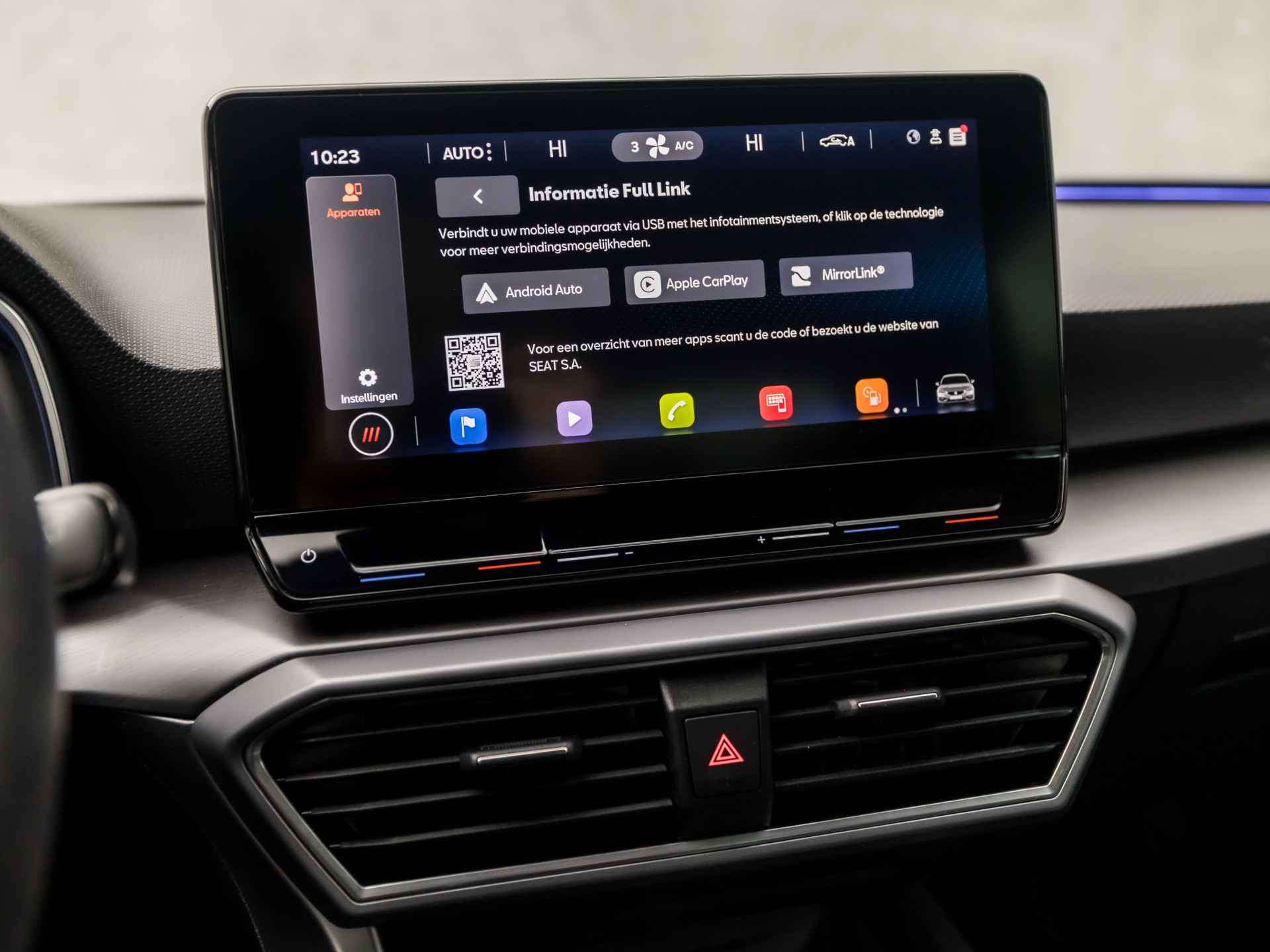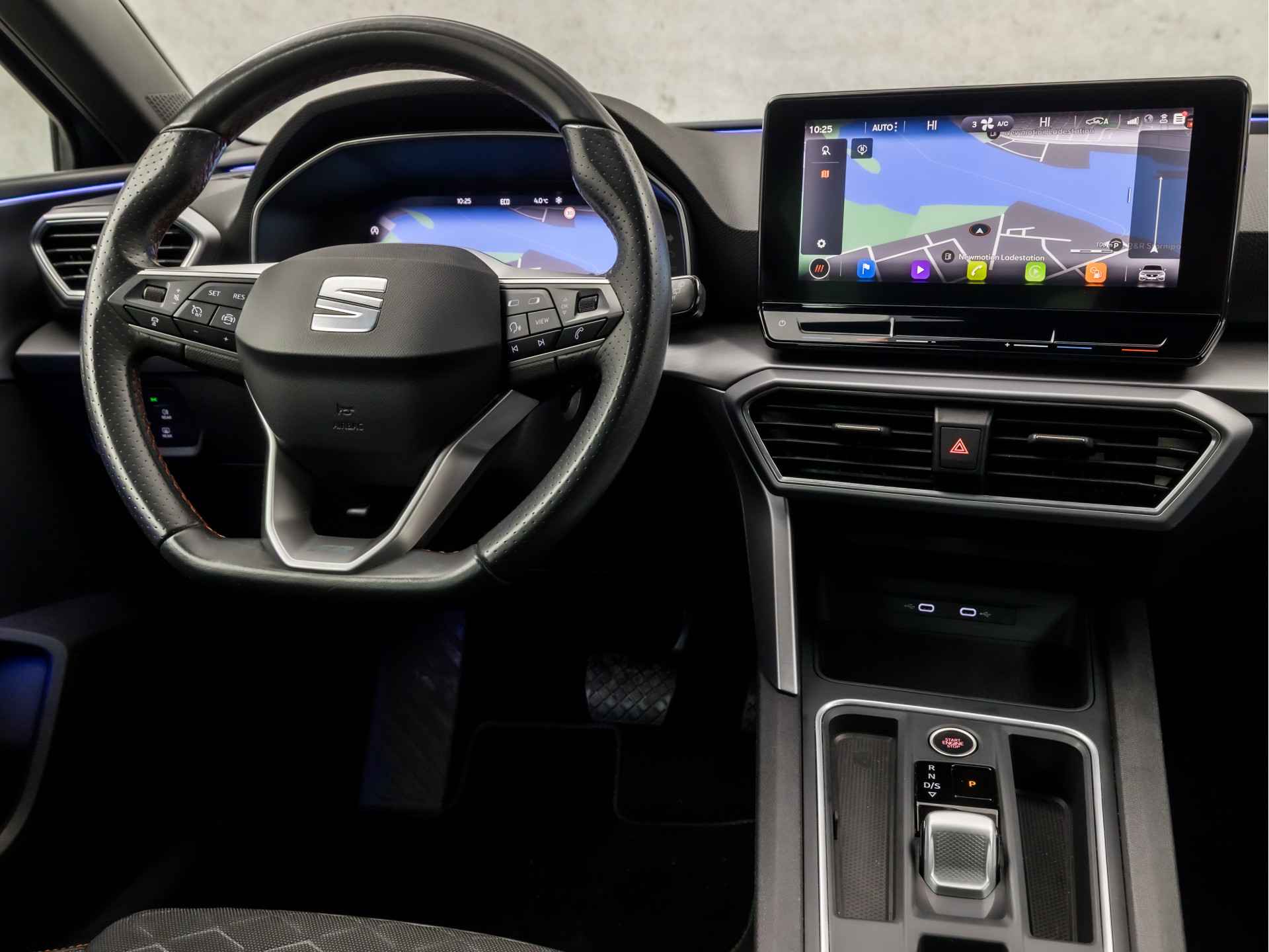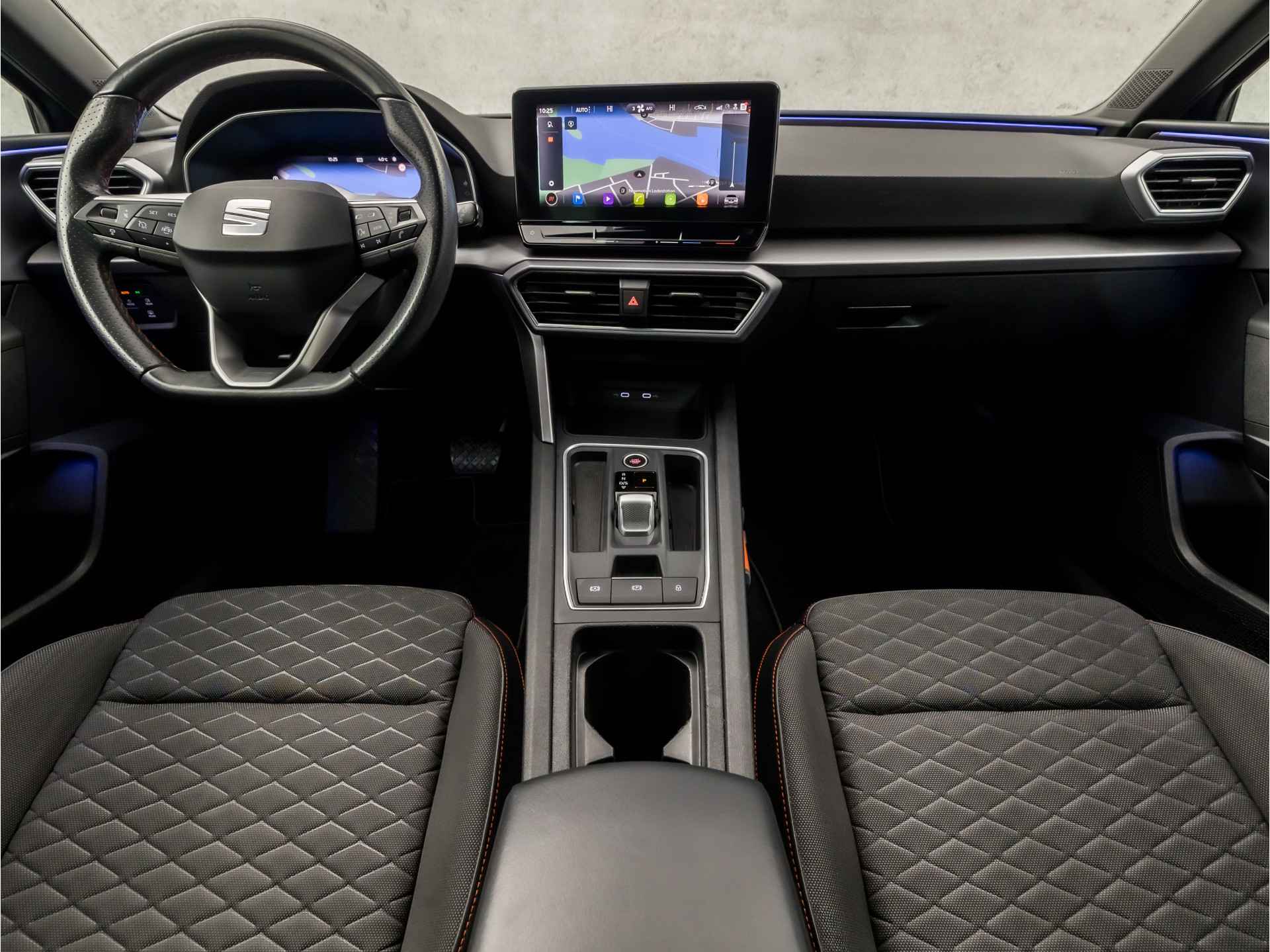 Alle benodigde informatie helder in beeld: het digitale dashboard is een geweldige rijhulp. Adaptive cruise control houdt de ingestelde snelheid vast en houdt automatisch afstand tot uw voorligger. Navigatie, onderhoudsstatus, vergrendeling, audio... de mogelijkheden van remote services zijn haast oneindig. Ook deze auto laat zich bedienen en analyseren via uw smartphone! Deze SEAT is voorzien van spraakbediening voor het navigatiesysteem en voor het audio-installatiesysteem met DAB-ontvangst. Maar u kunt ook de knoppen op het stuur gebruiken. Automatische airconditioning regelt volautomatisch de temperatuur. U kiest de gewenste temperatuur en het systeem doet de rest. De SEAT is standaard voorzien van: sportstuur met schakelpaddels, parkeersensoren voor en achter, regensensor, automatisch dimmende binnenspiegel, isofix-aansluiting en centrale deurvergrendeling met afstandsbediening.