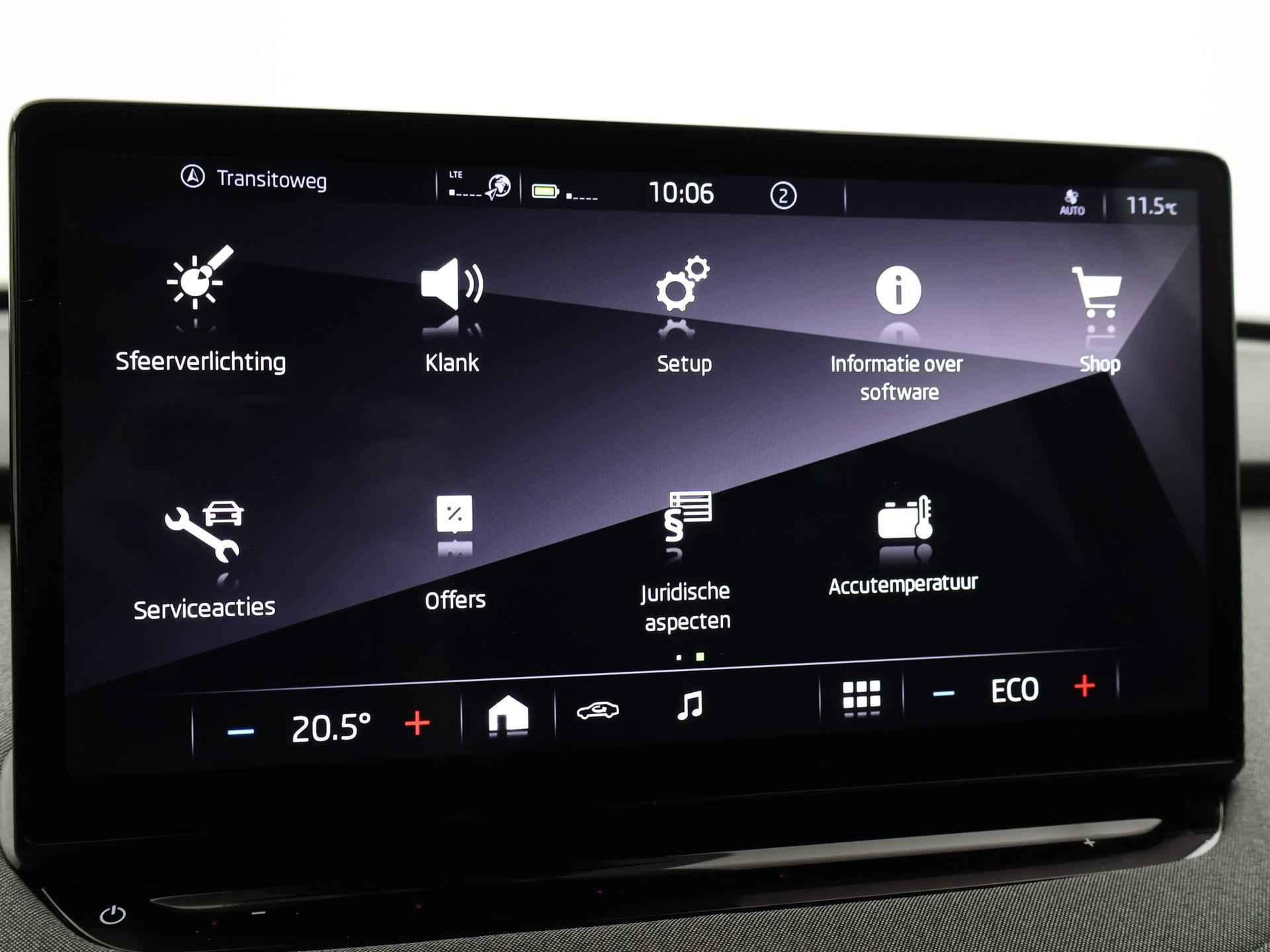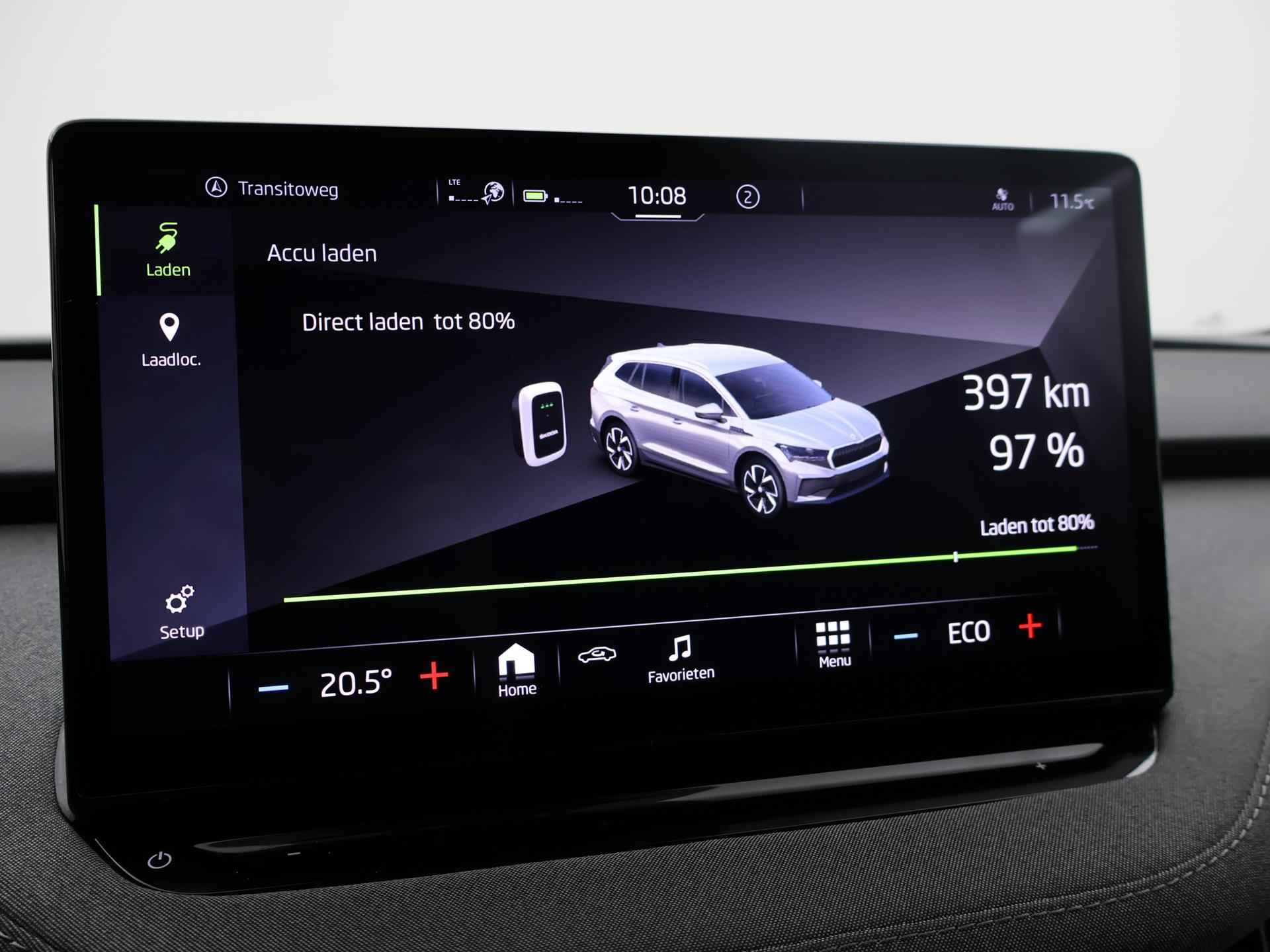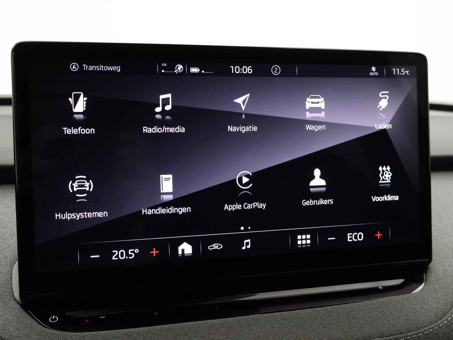 BTW verrekenbaar, Skoda Enyaq iV 80 met de grotere 80 kwh accu met 523 km actieradius WLPT en 204 PK vermogen, Sfeerverlichting met verschillende kleuren, Cruise control, Achteruitrijcamera, Stuurwielverwarming, Navigatie touch-screen, Apple Carplay / Android Auto appstreaming Google Maps, Flitsmeister, Whatsapp, Spotify etc, Privacy glass, Parkeersensoren voor en achter met automatisch inparkeren, Dodehoek assistentie, Lijnassistentie, 19 inch Lichtmetalen velgen, DAB+ digitale radio, Bluetooth met audiostreaming, Digitale cockpit, Chromen raamlijsten en dakrailing, LED koplampen, LED achterlichten, Verkeersbordenherkenning, Elektrisch inklapbare buitenspiegels.