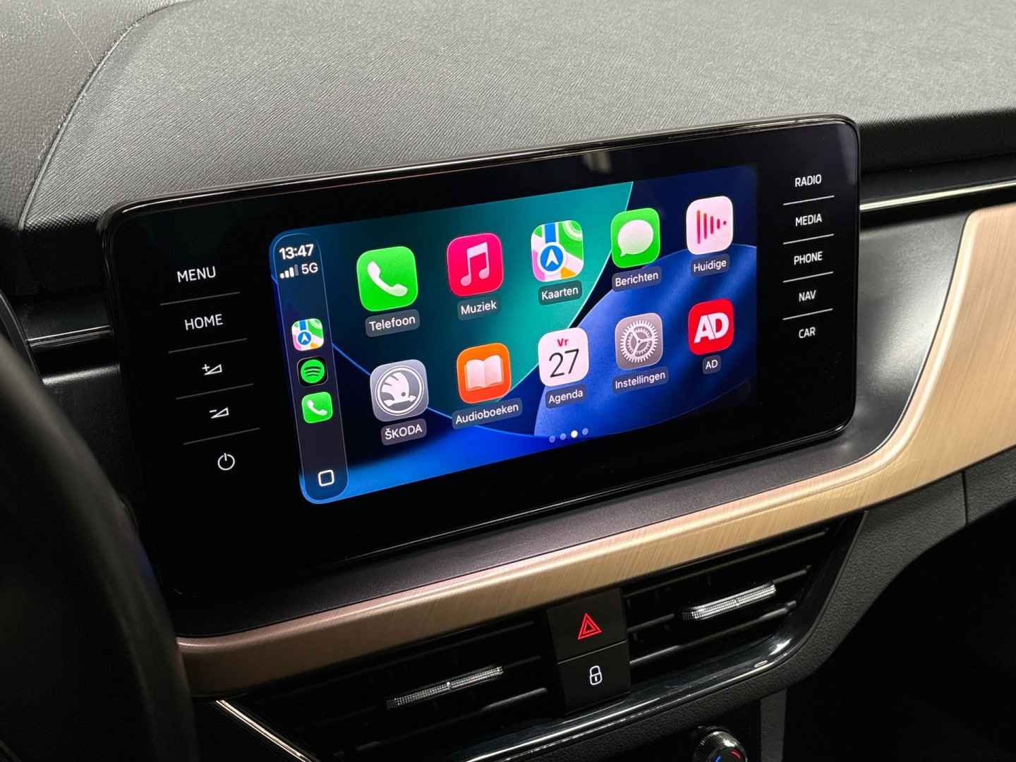 Zoals u mag verwachten van deze Škoda Kamiq is hij uitgerust met een reeks aan actieve veiligheidssystemen. De actuele snelheidslimiet, een inhaalverbod en andere verkeersborden; de verkeersborddetectie ondersteunt u tijdens elke rit. Onbedoeld buiten de rijstrook raken wordt voorkomen door het Lane-keeping systeem. Ook als uw aandacht even verslapt, blijft de forward collision warning bij de wekker. Dreigt er een botsing met een voor- of tegenligger, dan waarschuwt het systeem direct. De veiligheid van deze auto wordt verder verhoogd door Abs - anti blokkeer systeem met brake assistant, vermoeidheidsherkenning en bandenspanningcontrolesysteem.
