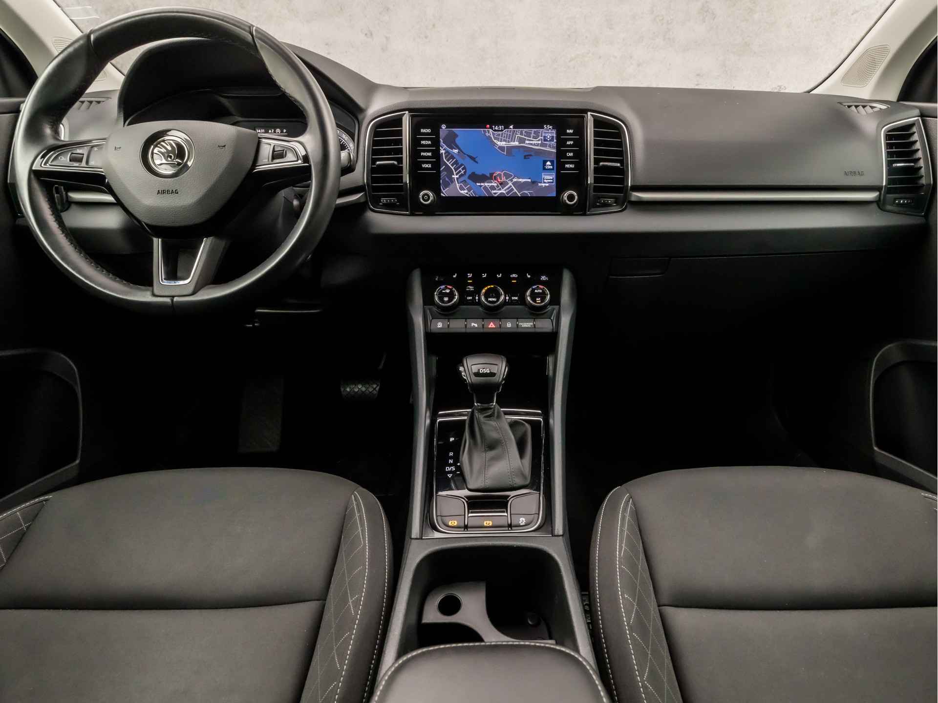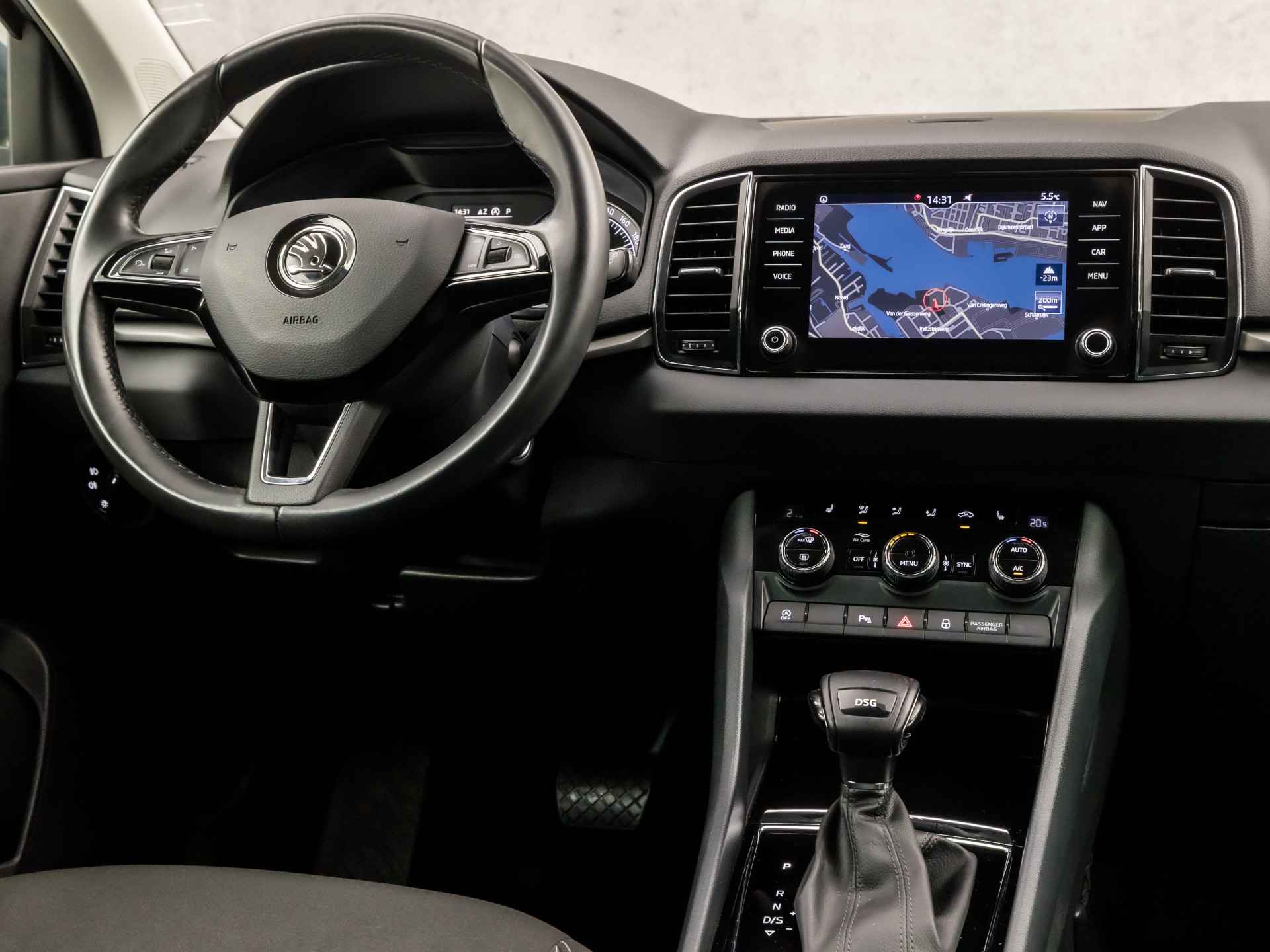 Spraaksturing betekent dat u verschillende functies met uw stem kunt bedienen. Er is geen bestemming die het aanwezige navigatiesysteem met harde schijf niet kent. Dat rijdt lekker! Met automatische airconditioning hoeft u alleen de gewenste temperatuur in te stellen. Het systeem doet de rest. Hoeveel ruimte u nog heeft bij het insteken? De parkeersensoren laten het weten! Da's gemakkelijk! Om de veiligheid onderweg te verhogen, heeft deze ŠKODA zowel een automatisch inschakelbare verlichting als een regensensor aan boord, zodat hij zelf de verlichting en de ruitenwissers kan inschakelen. Met cruise control, sportstuurwiel, keyless entry, automatisch dimmende buitenspiegels, isofix-aansluiting en centrale deurvergrendeling met afstandsbediening is deze auto helemaal compleet.