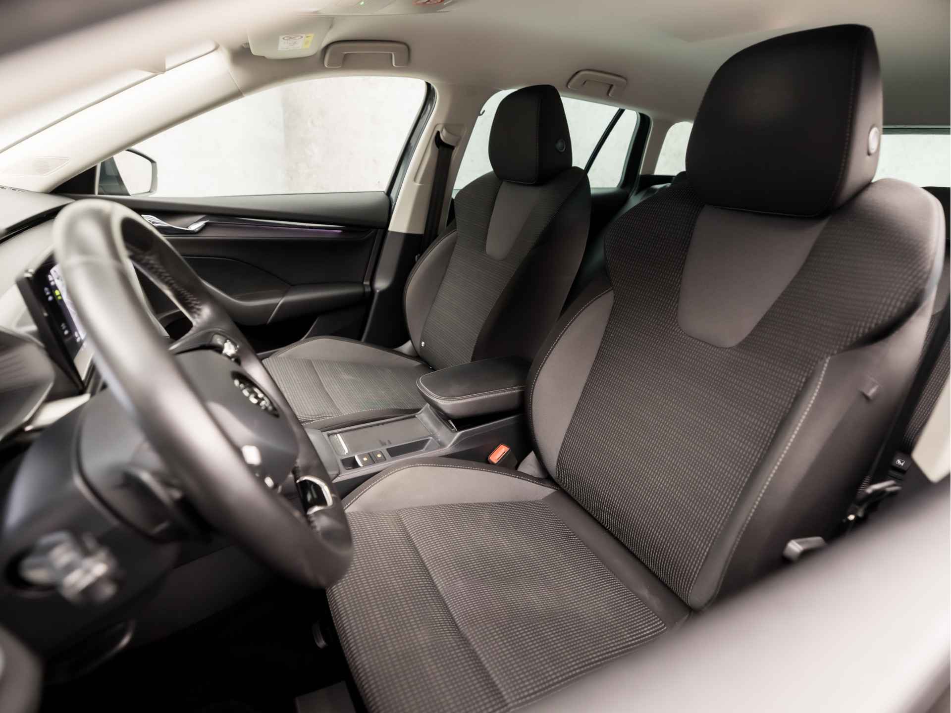 De nieuwste veiligheidssystemen komen in deze ŠKODA Octavia Combi samen. Ongemerkt buiten de rijstrook raken? Nee hoor, het Lane-keeping systeem waarschuwt en corrigeert. Veilig inhalen gaat moeiteloos dankzij actieve dodehoekdetectie. Het veiligheidssysteem waarschuwt als een ander voertuig in uw dode hoek rijdt. De forward collision warning reduceert het gevaar van een botsing met een voorligger significant. De auto is ook uitgerust met hill hold functie, vermoeidheidsherkenning, autonoom remsysteem en bandenspanningcontrolesysteem.