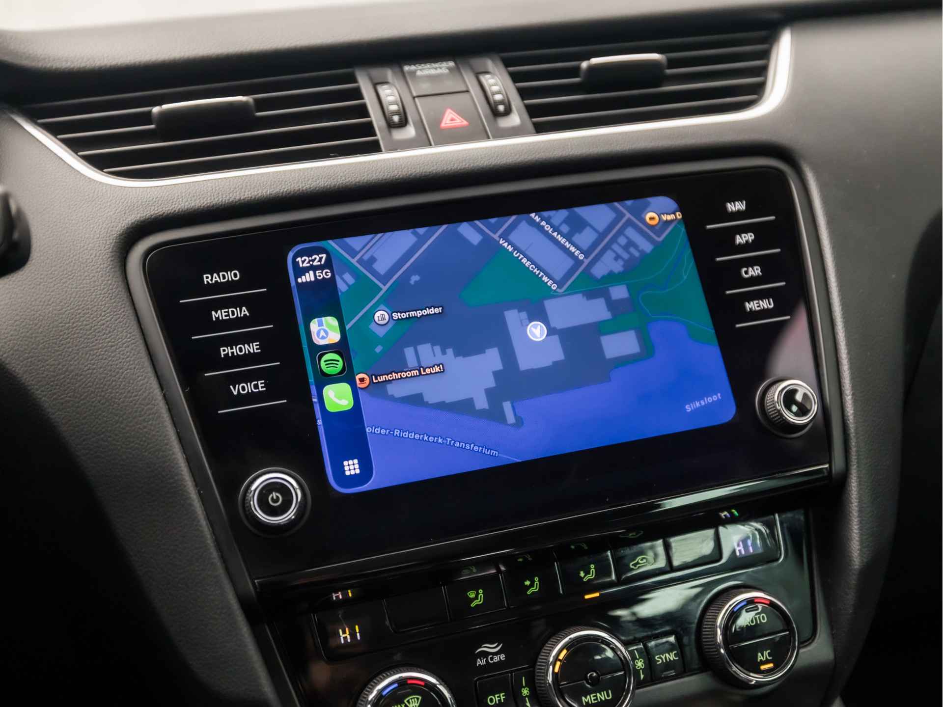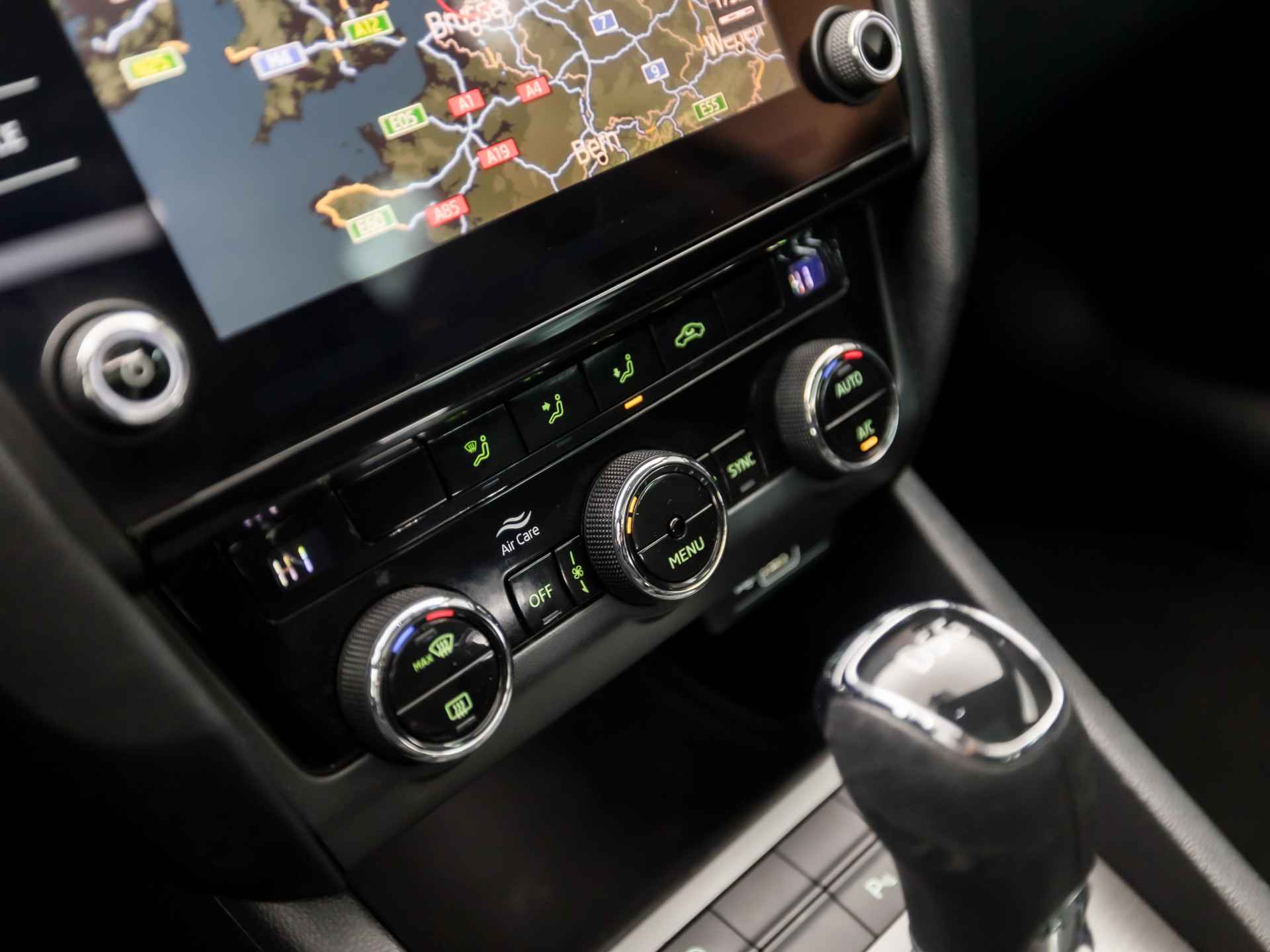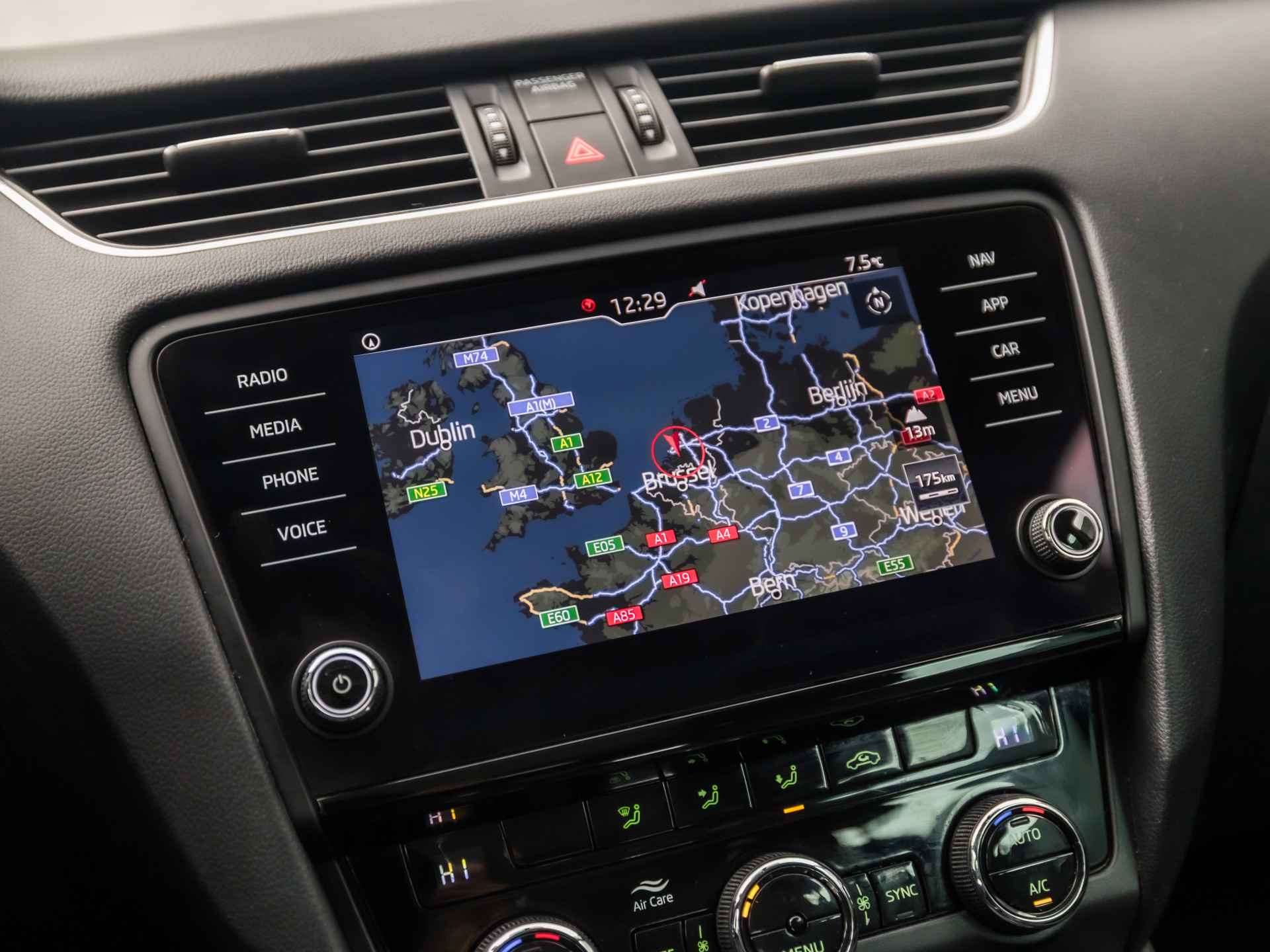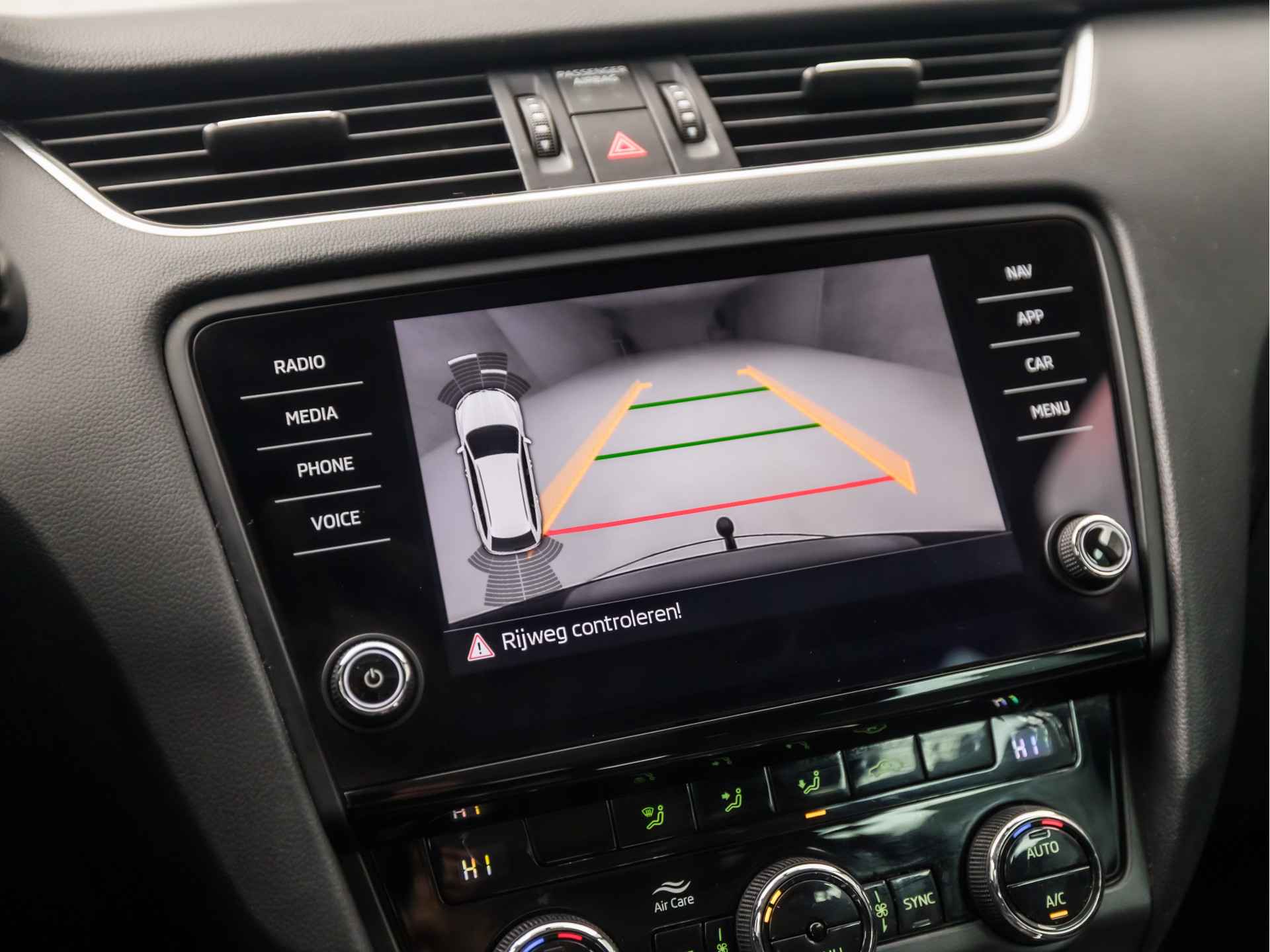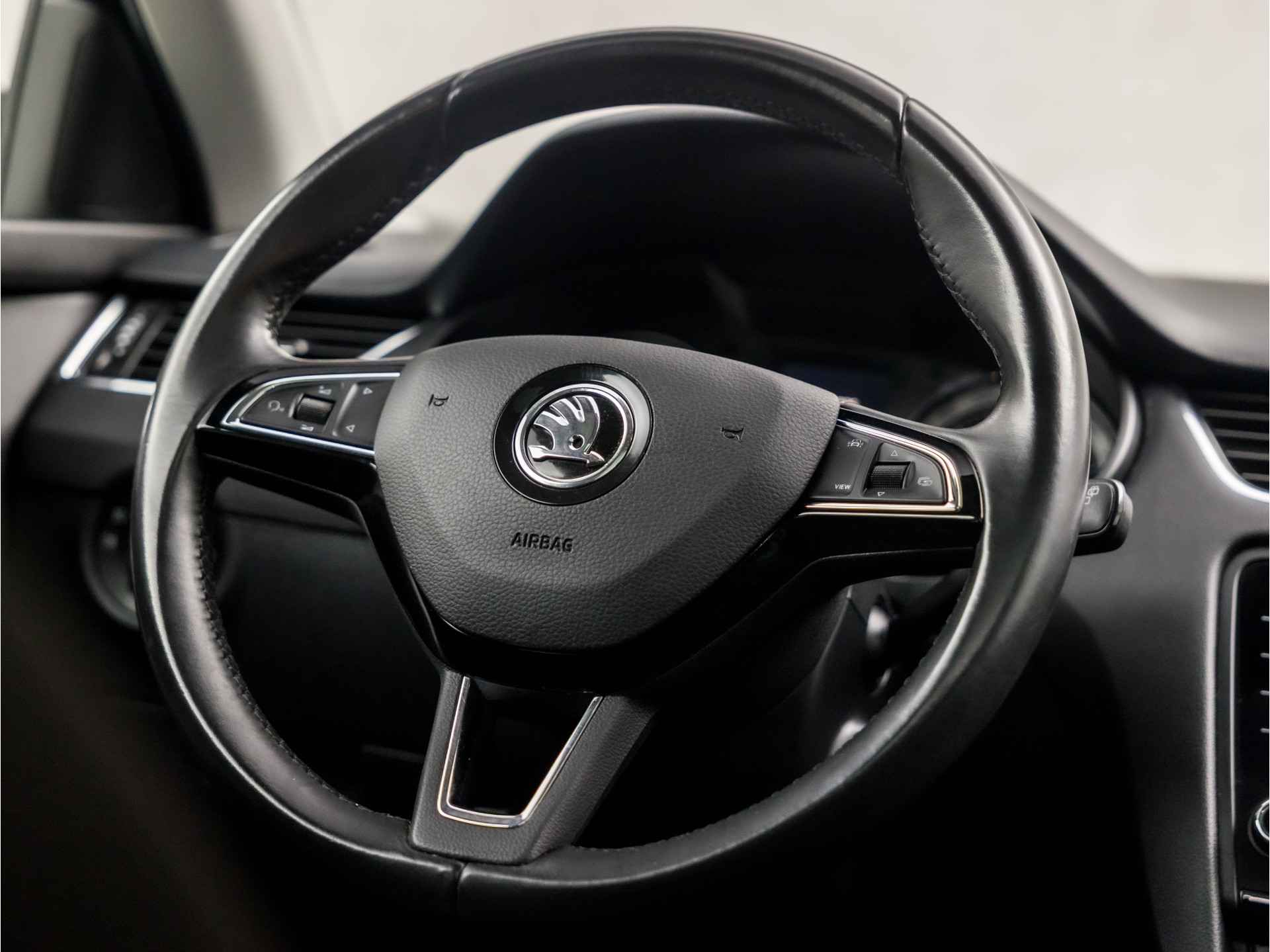 De achteruitrijcamera laat duidelijk zien hoeveel ruimte u nog heeft bij het inparkeren. De auto is voorzien van een trekhaak en is een uitstekende caravantrekker. Onderweg kunt u veilig genieten van het audio-installatiesysteem met DAB-radio en het navigatiesysteem met harde schijf. Want in deze ŠKODA bedient u ze vanaf het stuurwiel of met uw stem. Kabelkluwens en stekkerslingers van smartphones zijn hier niet aan de orde. De draadloze oplaadmogelijkheid voor telefoons maakt opladen strak, simpel en snel. De automatische airconditioning zorgt voor een prettige binnentemperatuur. Extra opties op deze auto zijn: WIFI-hotspot, regensensor, cruise control, sportstuurwiel, keyless entry en dvd-systeem.
