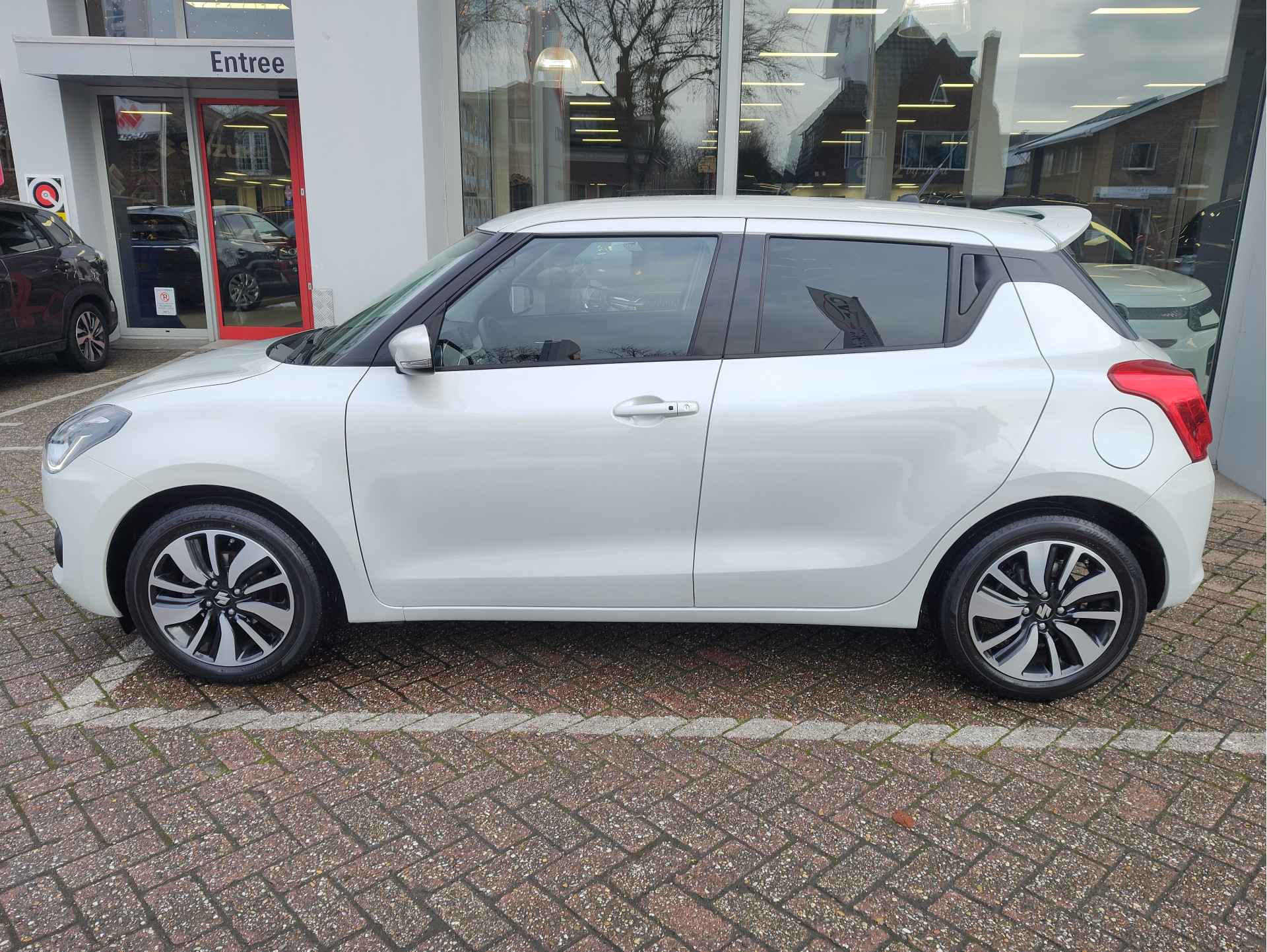 Eén ding kunnen we met zekerheid stellen: deze nette Suzuki Swift verkeert in technische topconditie! Zeer mooie en complete uitvoering, met onder andere een aantal essentiële veiligheidssystemen, zoals ESP, airbags, een automatisch noodremsysteem (Dual Sensor Brake Support), een rijstrooksensor en een automatische grootlichtfunctie. De auto staat op 4 goede banden. De auto is keurig dealeronderhouden. Zeer rappe 1.0 liter turbomotor met méér dan genoeg vermogen en gekoppeld aan een comfortabele 5-traps handbak. Geleverd incl. beurt, APK en 1 jaar garantie! Zonder extra kosten!