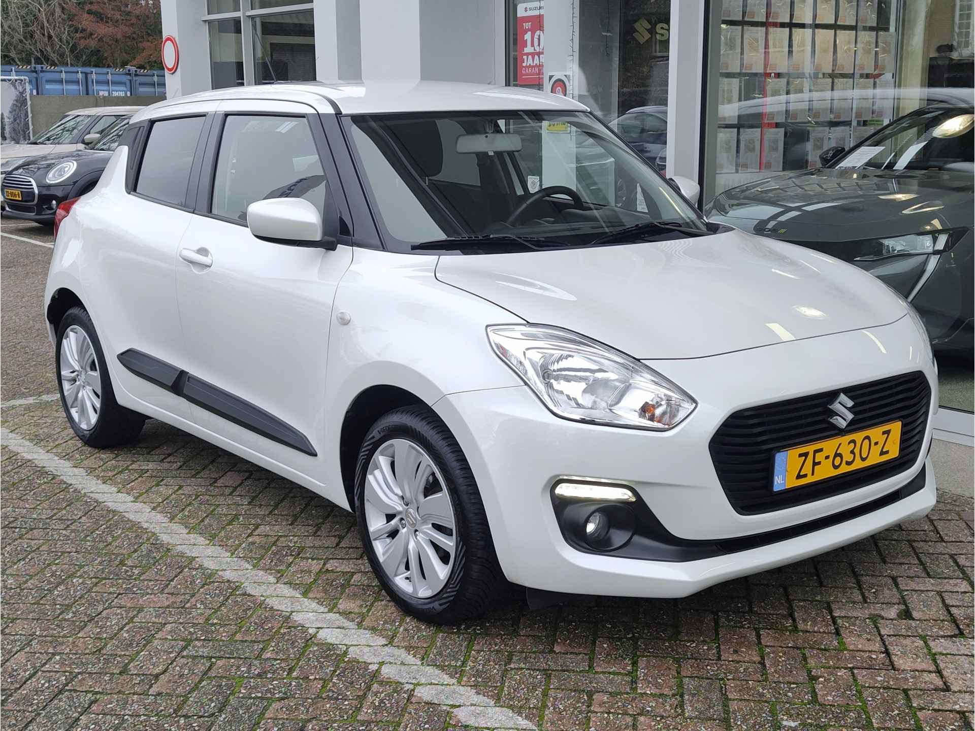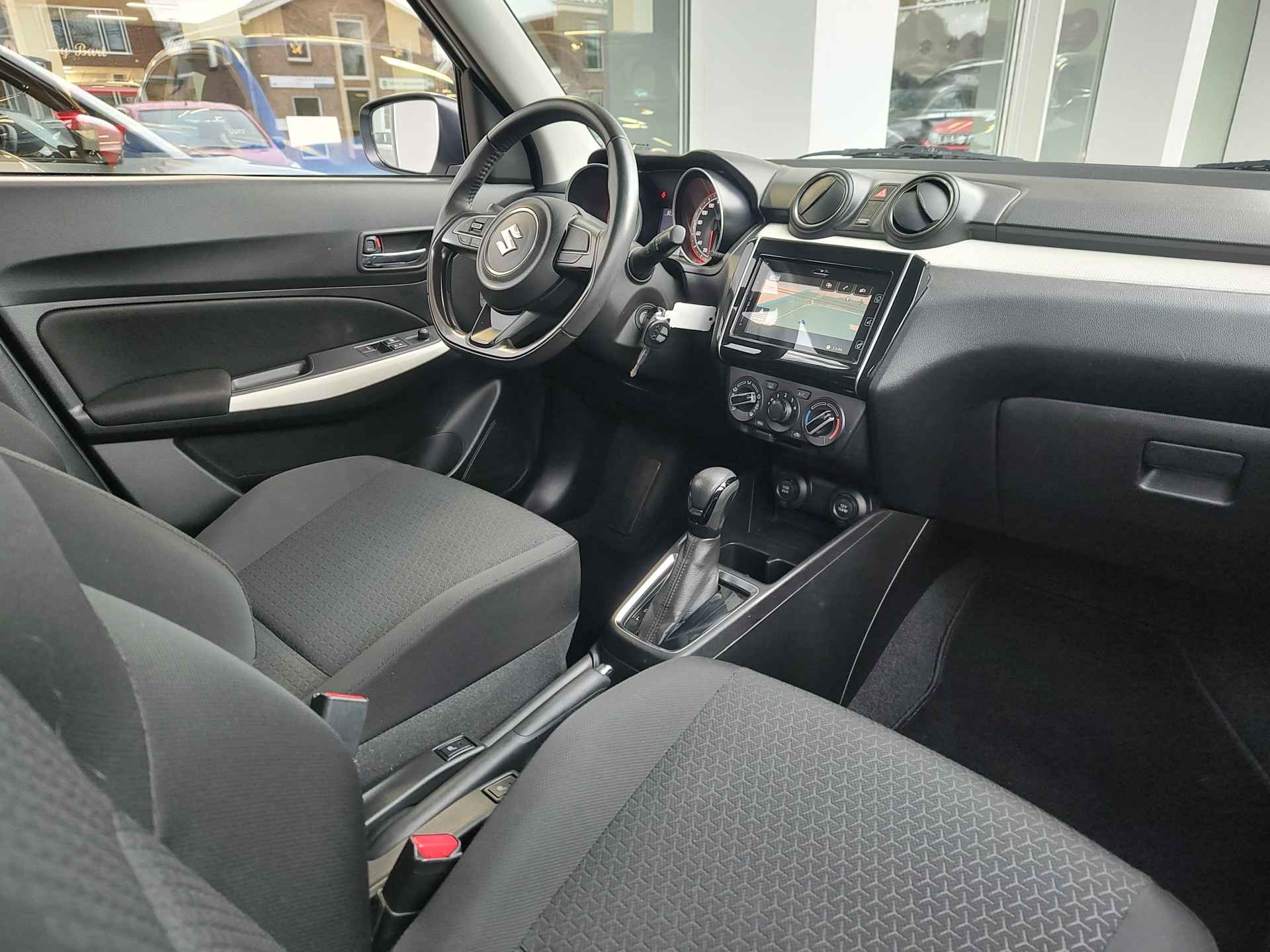 Keurige, lekker complete en geheel onderhouden Suzuki Swift in de luxe 1.2 Select-uitvoering, die onder andere voorzien is van ingebouwde navigatie, Apple CarPlay, Android Auto, een parkeercamera, stoelverwarming, stuurwielbediening en vierseizoenenbanden. Deze generatie Swift is daar bovenop ook nog eens een stuk veiliger dan voorgaande types, waardoor u met een gerust hart de weg op kunt met onze kleinste telg! Complete historie met tellerstanden is aanwezig. Wij leveren deze mooie en betrouwbare stadsauto aan u af inclusief rijklaar maken, dus met o.a. beurt, APK en 1 jaar garantie!