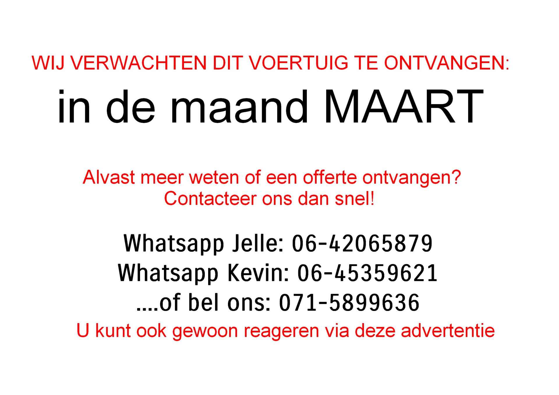 LET OP! WIJ VERWACHTEN DIT VOERTUIG PAS EIND MAART --> WILT U BIJ BINNENKOMST GEBELD WORDEN VOOR EEN PROEFRIT? STUUR ONS DAN EEN BERICHT, EN WIJ ZETTEN U OP DE LIJST.