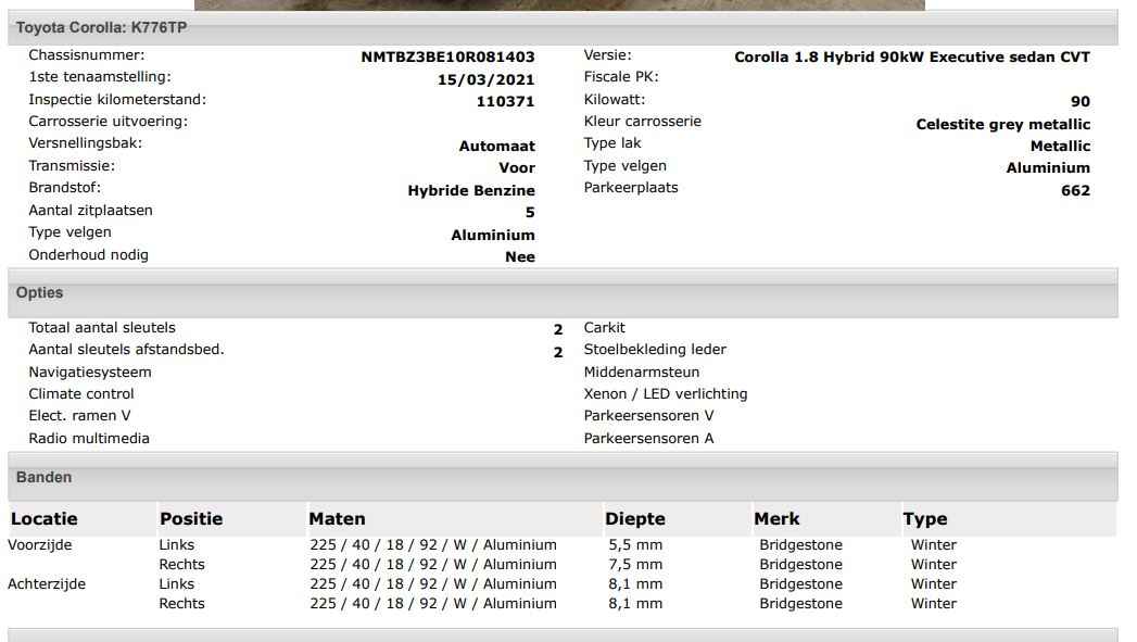 Het kan echter voorkomen dat uit de automatische voertuiginformatie een optie of accessoire naar voren komt die helaas toch niet op de auto aanwezig is.
