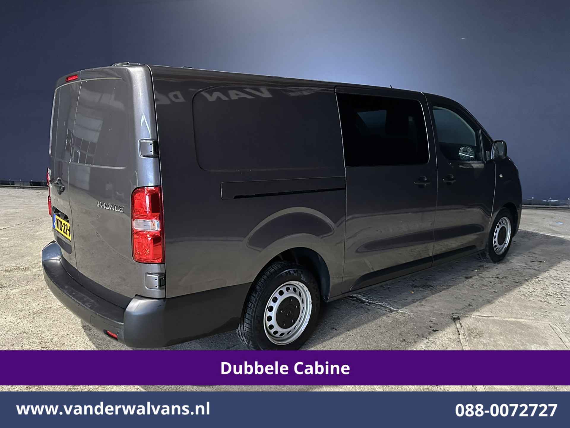 145pk sterke Toyota Proace L3H1 Dubbele cabine Euro6 2023 met slechts 77.000km en 6 zitplaatsen. Geheel dealer onderhouden en uitgevoerd met airconditioning, navigatie, Apple Carplay, Android Auto, cruisecontrol, parkeersensoren en bluetooth telefoonvoorbereiding.