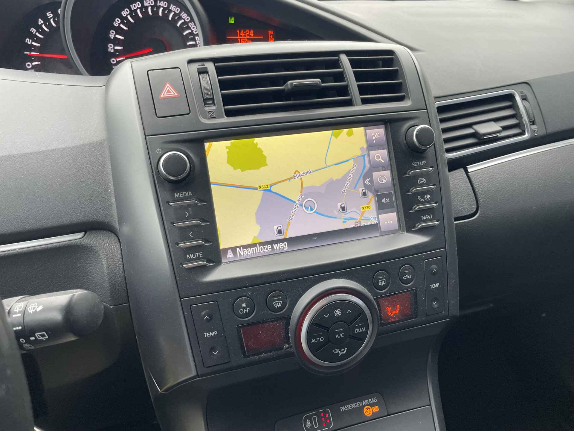 Kinderfietsje niet gezien bij het inparkeren? Dat gebeurt u nooit meer. Daar zorgt de achteruitrijcamera wel voor! Ook praktisch: deze auto is voorzien van een eigen full map navigatiesysteem. Met electronic climate control hoeft u alleen de gewenste temperatuur in te stellen. Het systeem doet de rest. Met een druk op de knop verandert u het volume of het zenderstation met de audiobediening op het stuurwiel. Geniet van een ruime selectie digitale radiostations met de DAB-ontvanger. De uitrusting van deze Toyota is met regensensor, cruise control, automatisch dimmende binnenspiegel, centrale deurvergrendeling met afstandsbediening, boordcomputer en verstelbaar stuur behoorlijk compleet.