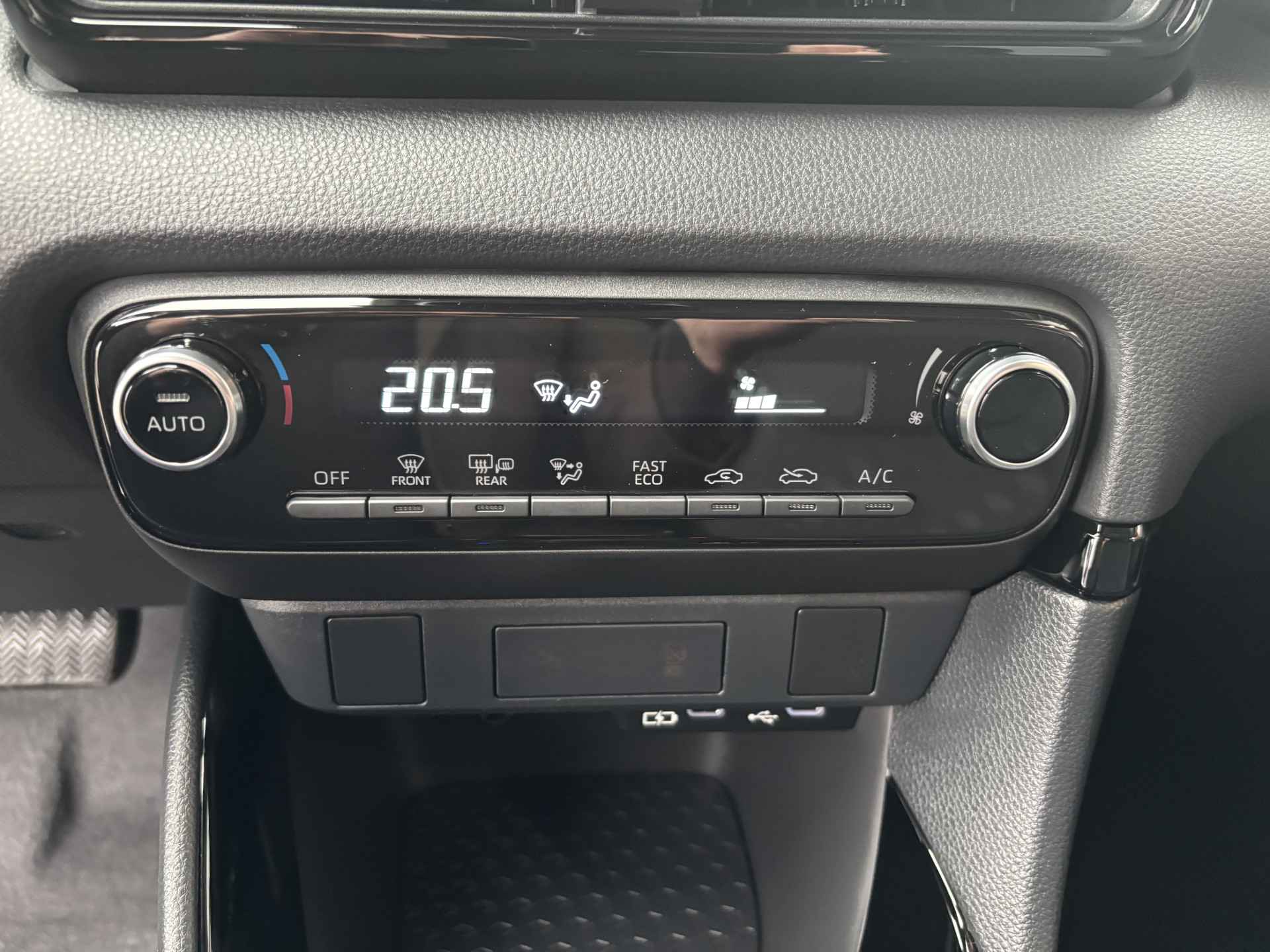 De Toyota Yaris 1.5 Hybrid 115 First Edition is voorzien van een uitgebreide standaarduitrusting. Uitgerust met een digitaal instrumentenpaneel en centraal touchscreen met navigatie en smartphone-integratie (Apple CarPlay/Android Auto), automatische climate control, keyless entry & start, een achteruitrijcamera met parkeersensoren, adaptieve cruise control, rijstrookassistentie, verkeersbordherkenning en autonome noodremassistentie, LED-verlichting en lichtmetalen velgen. Verkoopprijs €24.875,- incl. Basis Service-pakket. Rijklaarprijs € 25.470,- incl. FullService-afleverpakket van € 595,-.