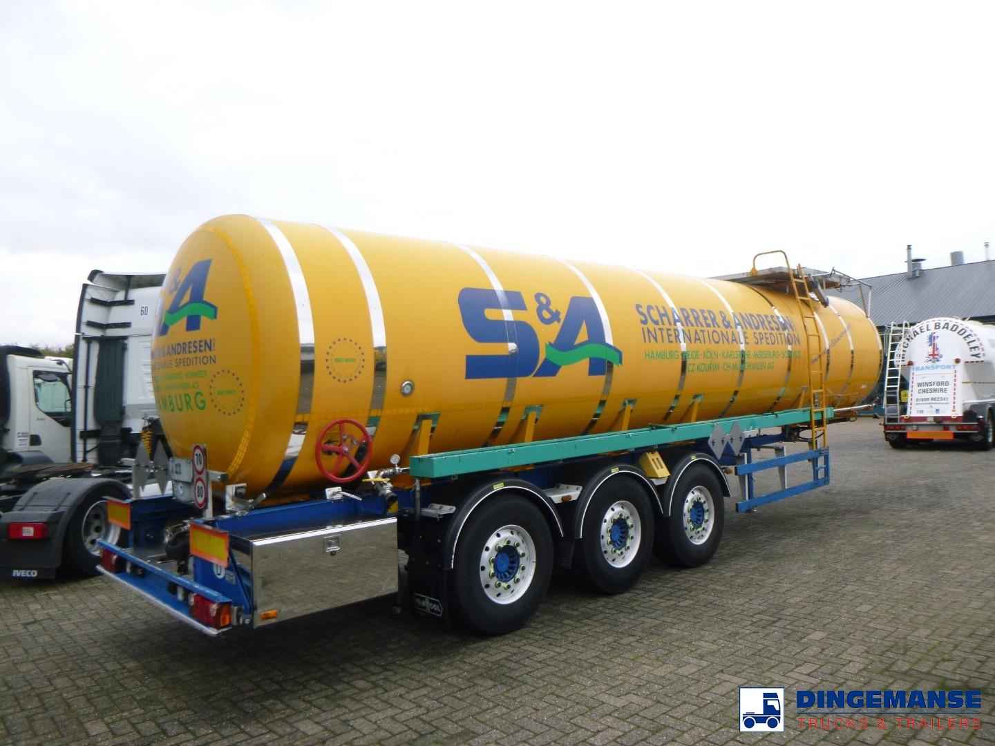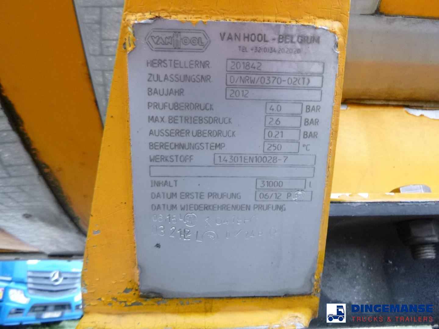 Insulated stainless steel bitumen tank, Capacity 31000 liters, 1 Compartment, Test pressure 4.0 bar, Max working pressure 2.6 bar, Tank material code 14301 EN 10028-7, Air suspension, SAF Axles, Alloy wheels, ABS, Disc brakes, Shipment dimensions 1175x250x360 cm