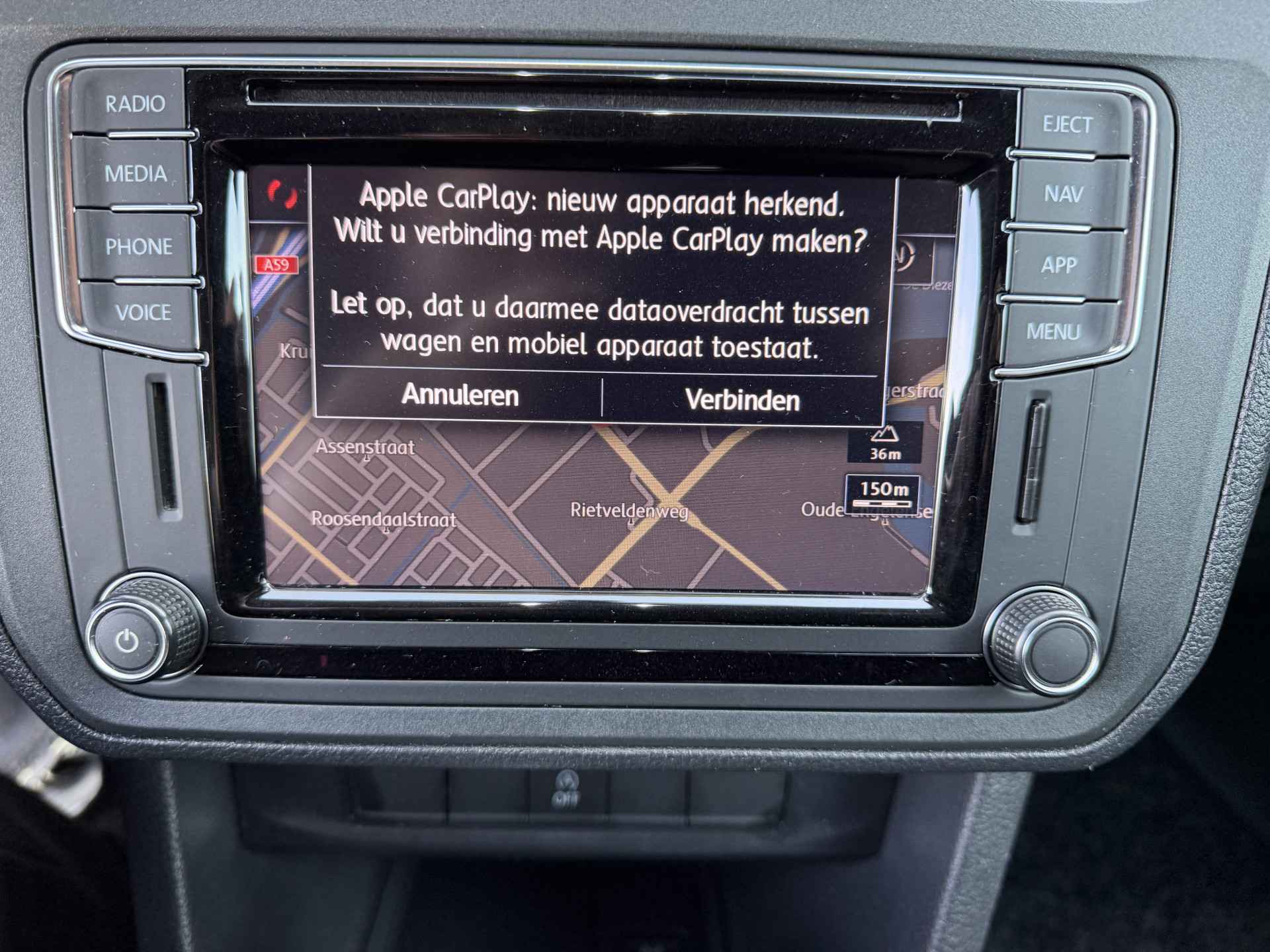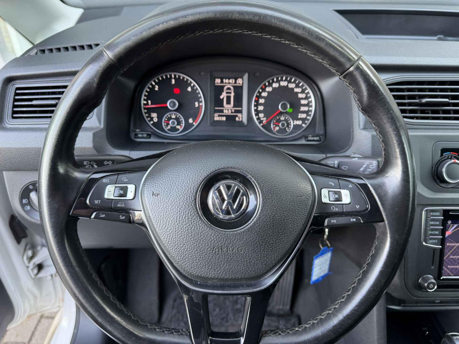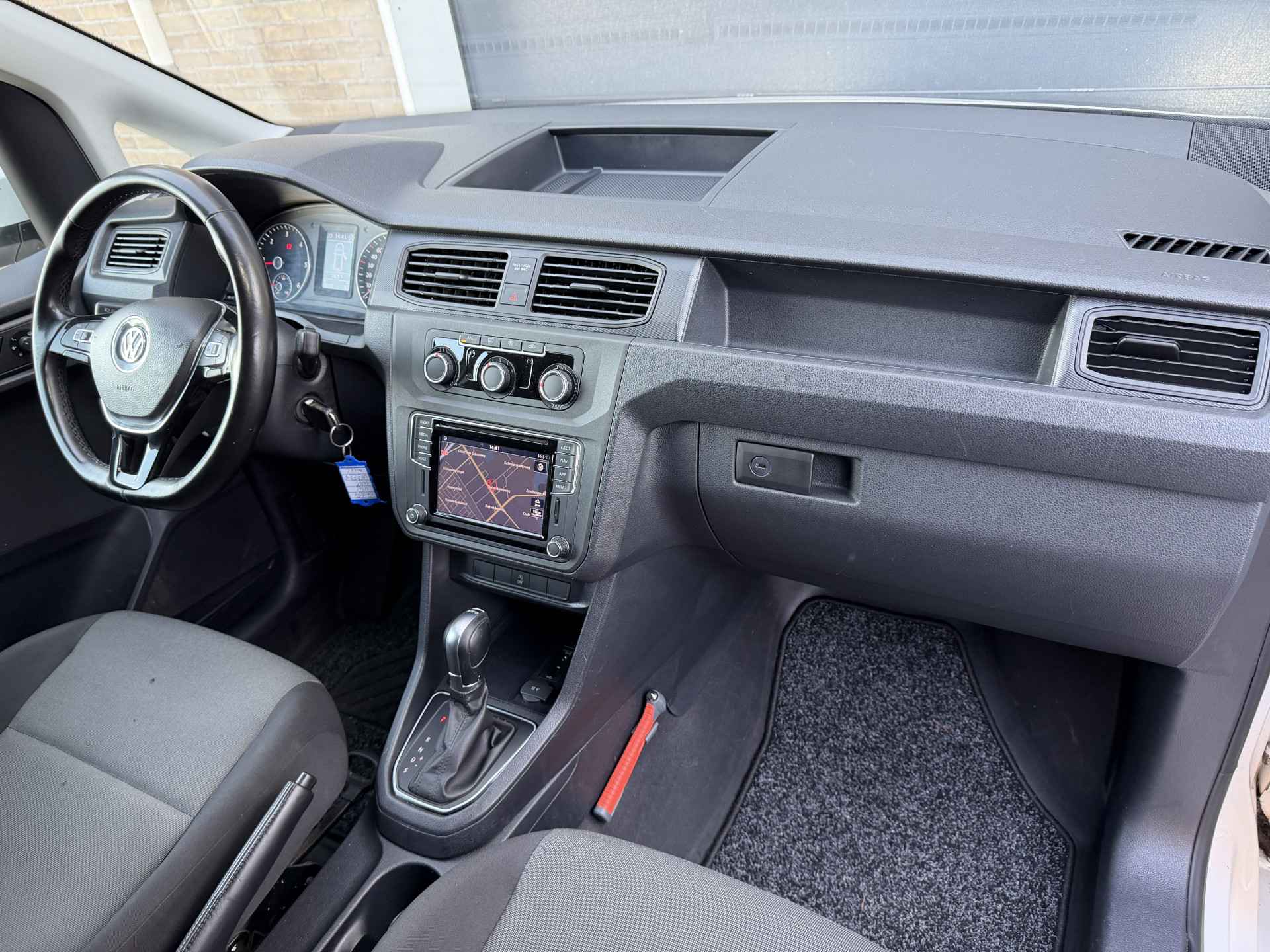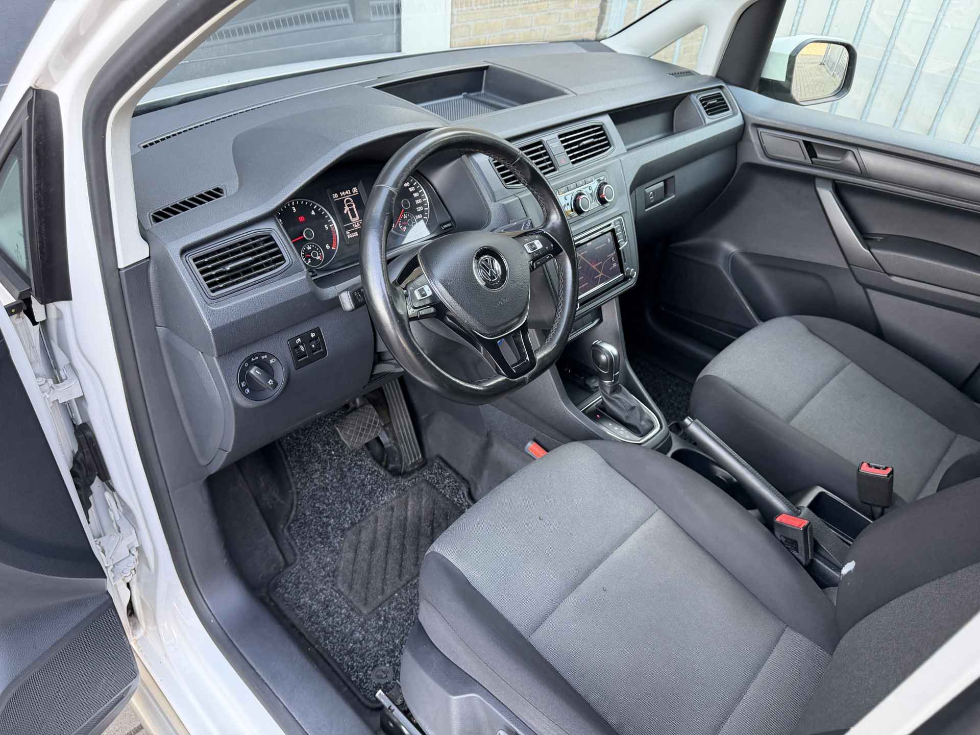 Er is geen bestemming die het aanwezige navigatiesysteem niet kent. Dat rijdt lekker! De audiobediening op het stuur zorgt dat muziek en informatie kunnen worden aangepast zonder het zicht op de weg te verliezen. Voor een storingvrije radio-ontvangst zorgt de ingebouwde DAB-ontvanger. Een plekje vinden in de binnenstad is één, inparkeren is twee. Voor dat laatste heeft deze Volkswagen Caddy prima parkeersensoren die u een handje helpen. Het hoort bij een intelligente auto als deze dat hij zelf in staat is om zijn omgeving in de gaten te houden. Dat doet deze Volkswagen met een automatisch inschakelbare verlichting en een regensensor. De Volkswagen is standaard voorzien van: cruise control, airconditioning, automatisch dimmende binnenspiegel, lederen stuur, centrale deurvergrendeling met afstandsbediening en boordcomputer.