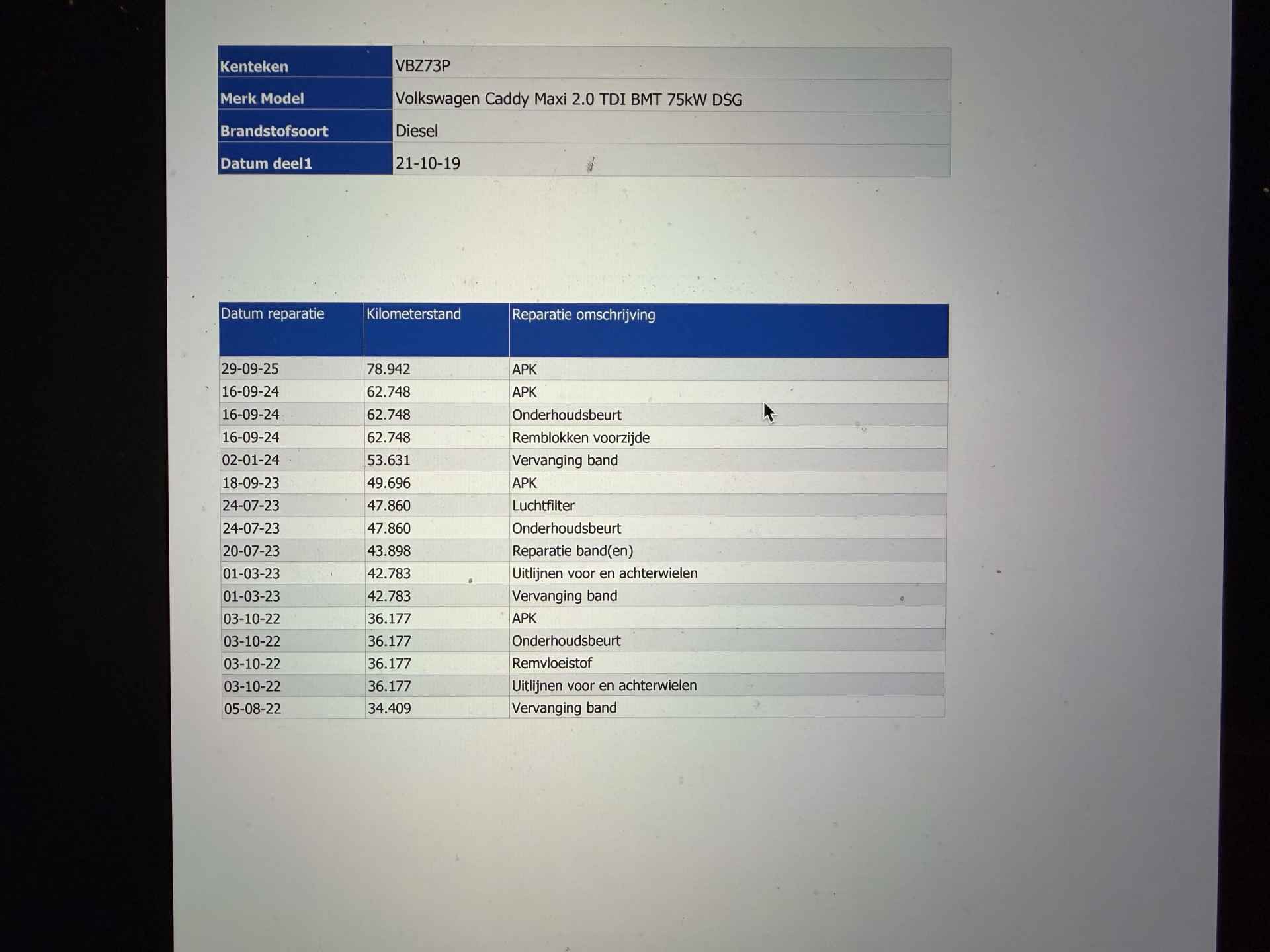 Er is ook een tellerrapport van Nationale Autopas, dat geeft u zekerheid over de kilometerstand van deze auto. Een proefrit maken met deze Volkswagen Caddy? Natuurlijk! Bel even voor een afspraak!