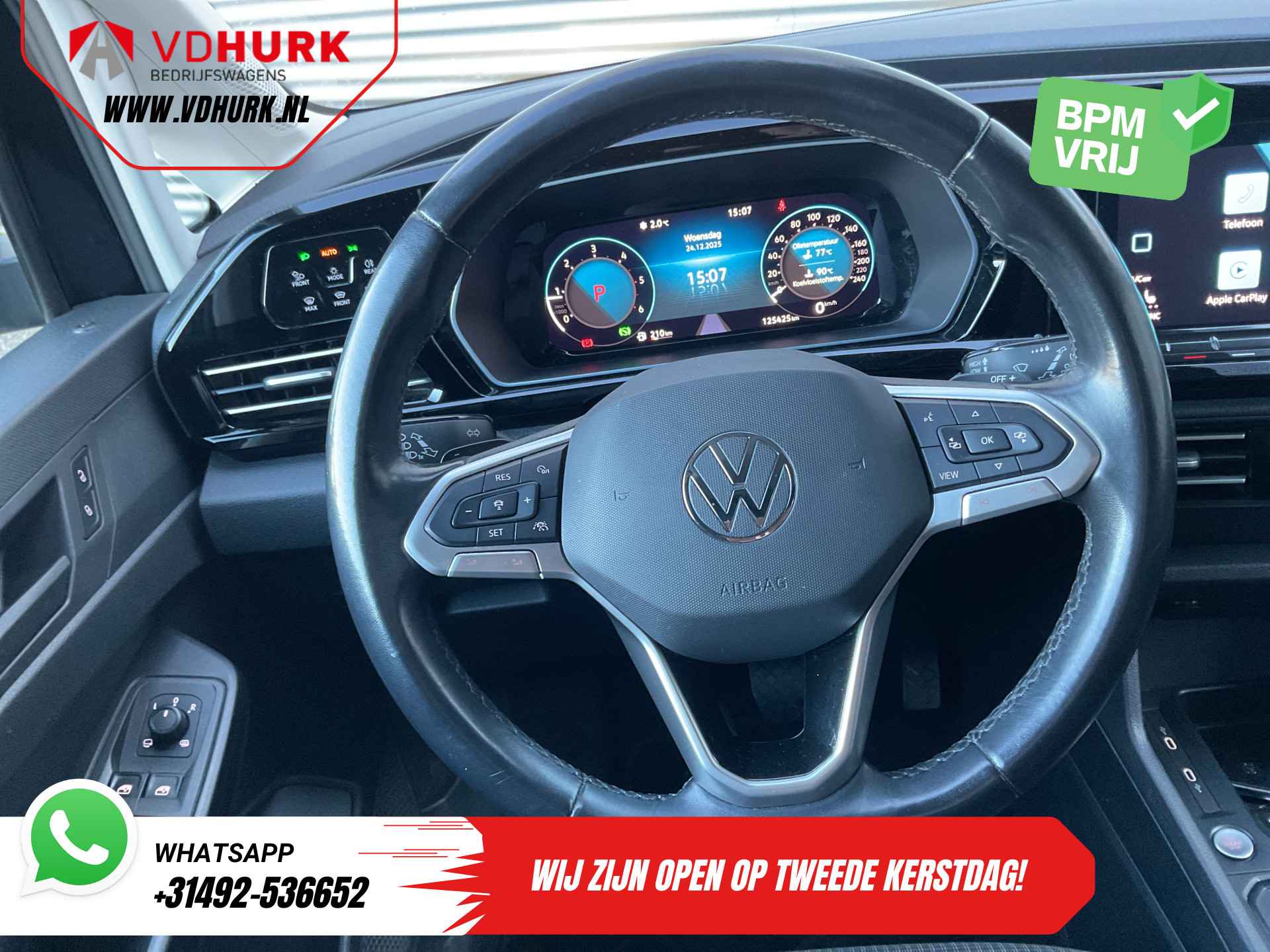 *BPM vrij is alleen van toepassing voor ondernemers* Nederlandse First Edition Volkswagen Caddy Cargo 2.0 TDI DSG automaat met 125 pk! Is voorzien van o.a: - 1st Edition - Nederlandse auto - LED verlichting voor + achter - Carplay / Android auto - Adaptive cruise control - Virtual cockpit - Stoelverwarming bestuurder + passagier - Climate control - Navigatie - Camera - Parkeersensoren voor + achter - 18” Lichtmetalen velgen - Bumpers in carrosserie kleur - Verwarmde voorruit - Verwarmde achterruit - Keyless start - Keyless entry - Elektrisch verstelbare lendesteunen - Lederen stuurwiel - Trekhaak - 1.500 kg trekvermogen - DAB - Schakelmogelijkheid aan stuur - Parkeer assistent - Uitwijk assistent - Betimmering - Laadvloer - Passagiers airbag - Zij airbags - Enz. Volledige historie aanwezig, laatste beurt gehad op 28-10-2025 bij 122.426 kilometers. 2 sleutels aanwezig Kortom de Volkswagen Caddy voor uw dagelijkse werkzaamheden. .