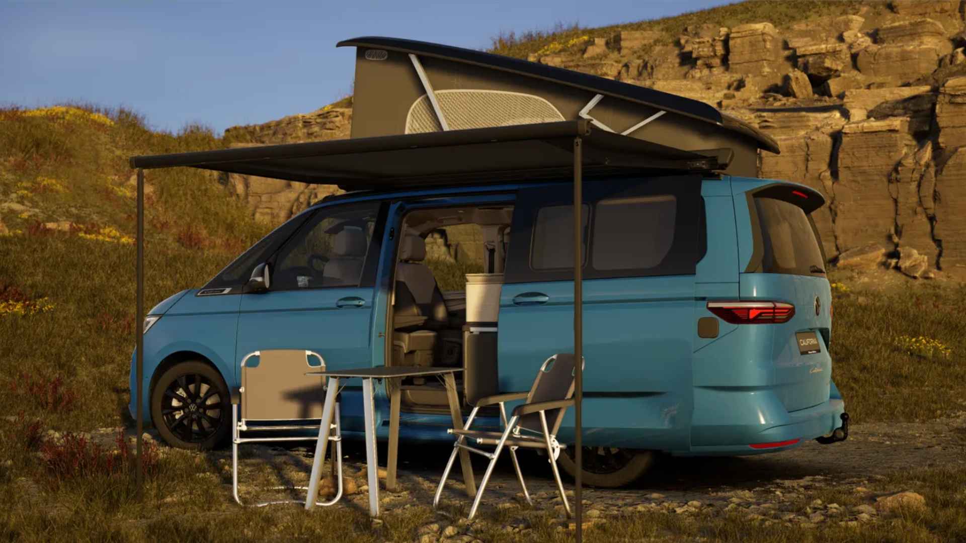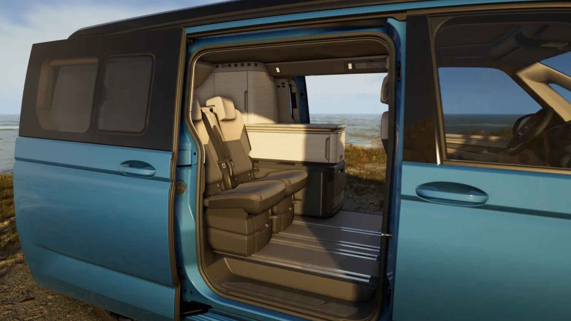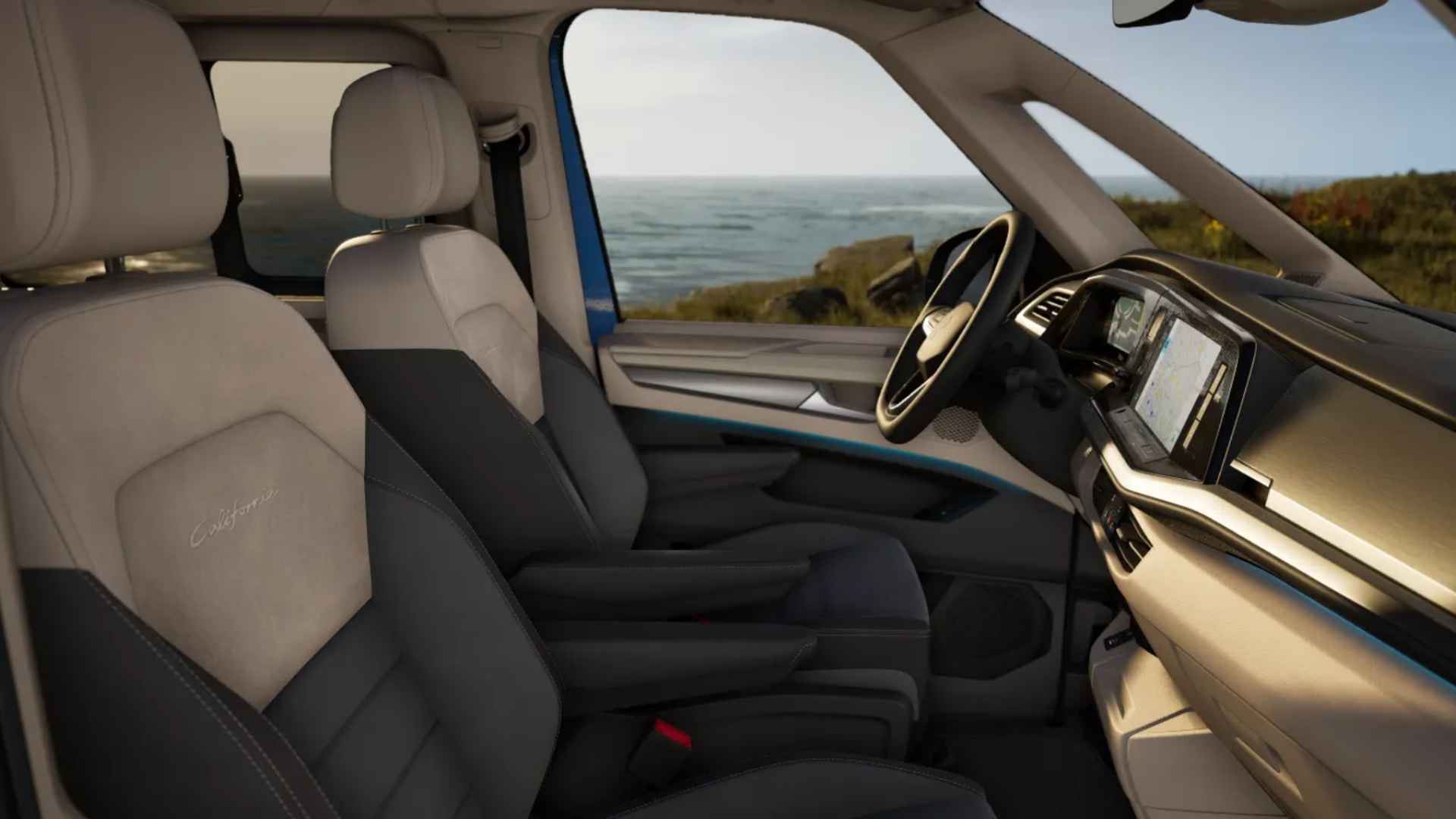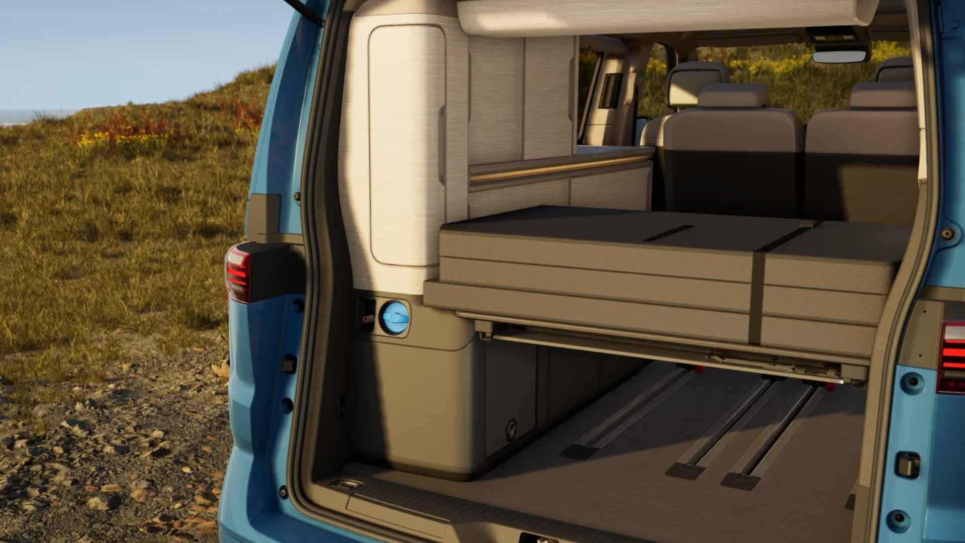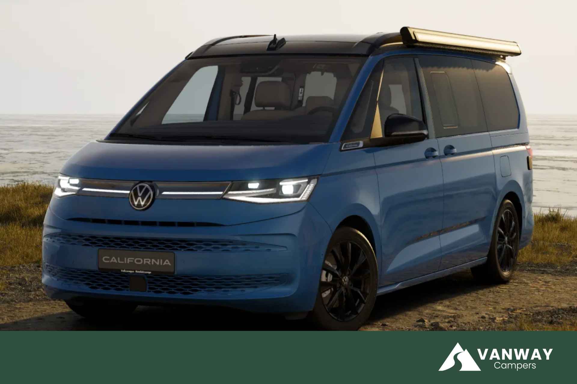 Deze Volkswagen California Ocean is gebouwd voor reizen waarbij comfort en zelfstandigheid hand in hand gaan. De diepe Florida Blue lak en het Deep Black dak geven hem een rustige, volwassen uitstraling, passend bij een uitvoering die ontworpen is om langer onderweg te zijn, zonder concessies.