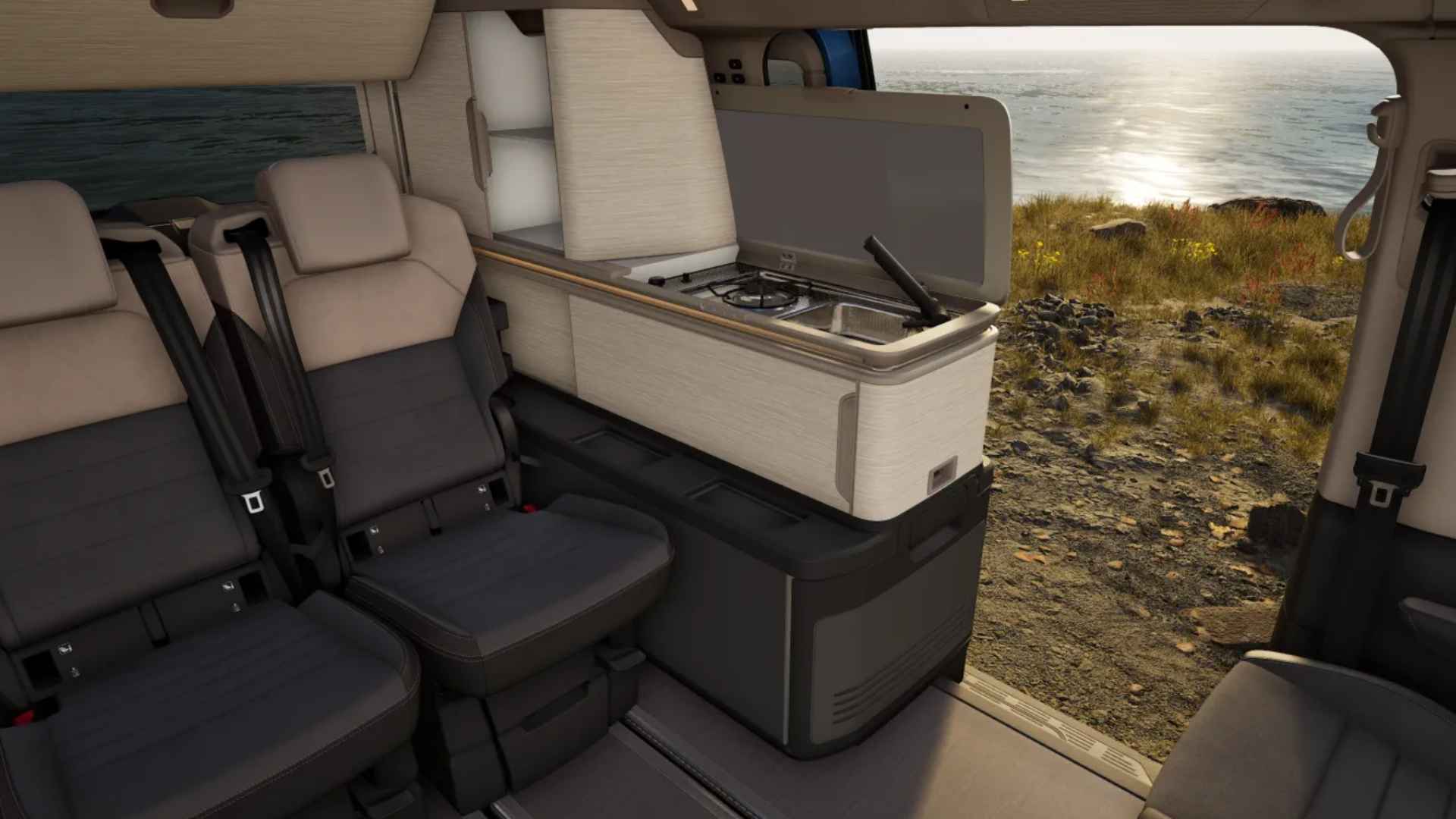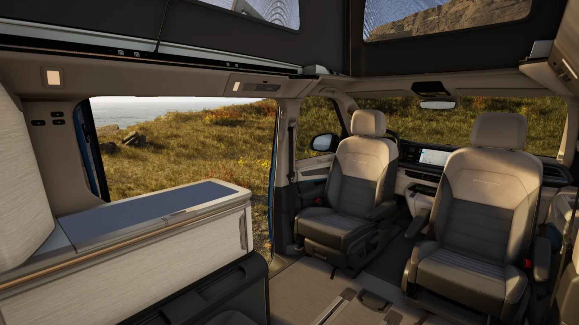 Binnen voelt hij niet als een camper, maar als een volwaardige leefruimte. Een plek waar techniek niet zichtbaar aanwezig is, maar wél voelbaar bijdraagt aan rust en gemak.
