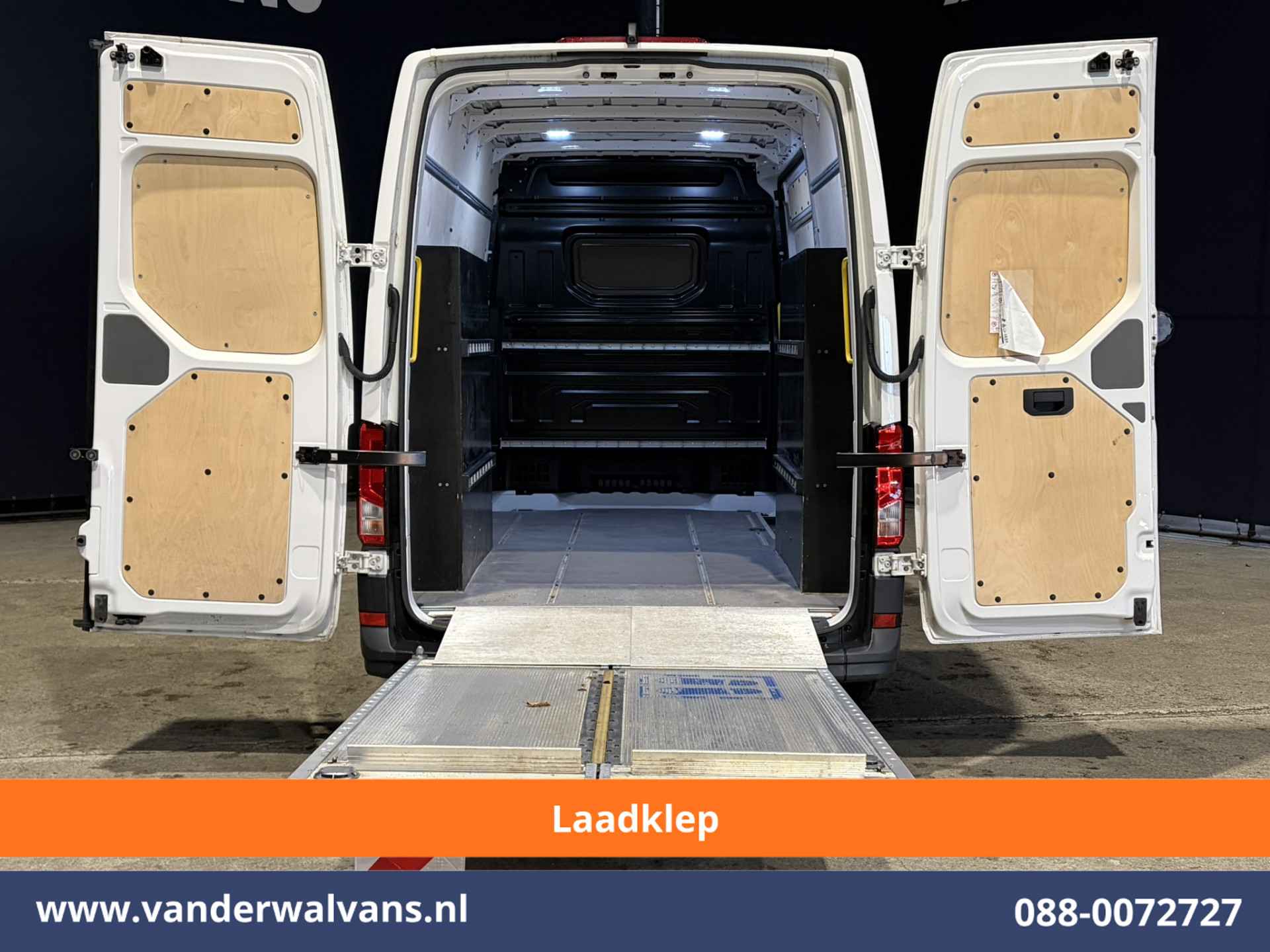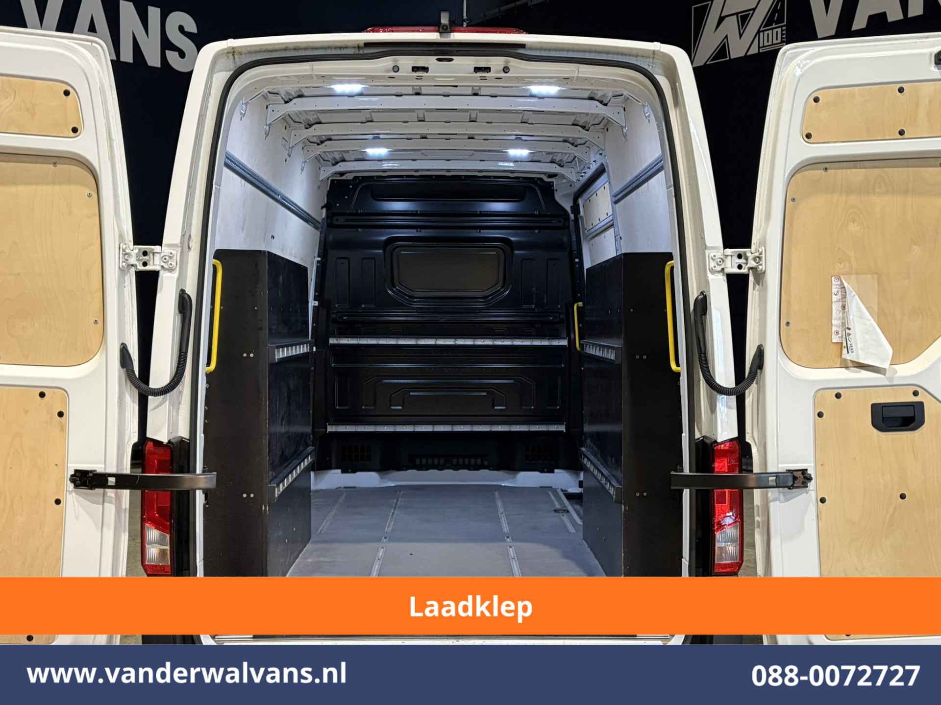 Volkswagen Crafter L3H3 (oude benaming L2H2) met laadklep en slechts 34.000km. Geheel goed onderhouden en voorzien van airconditioning, camera, navigatie, Apple Carplay, Android Auto en bluetooth telefoonvoorbereiding.
