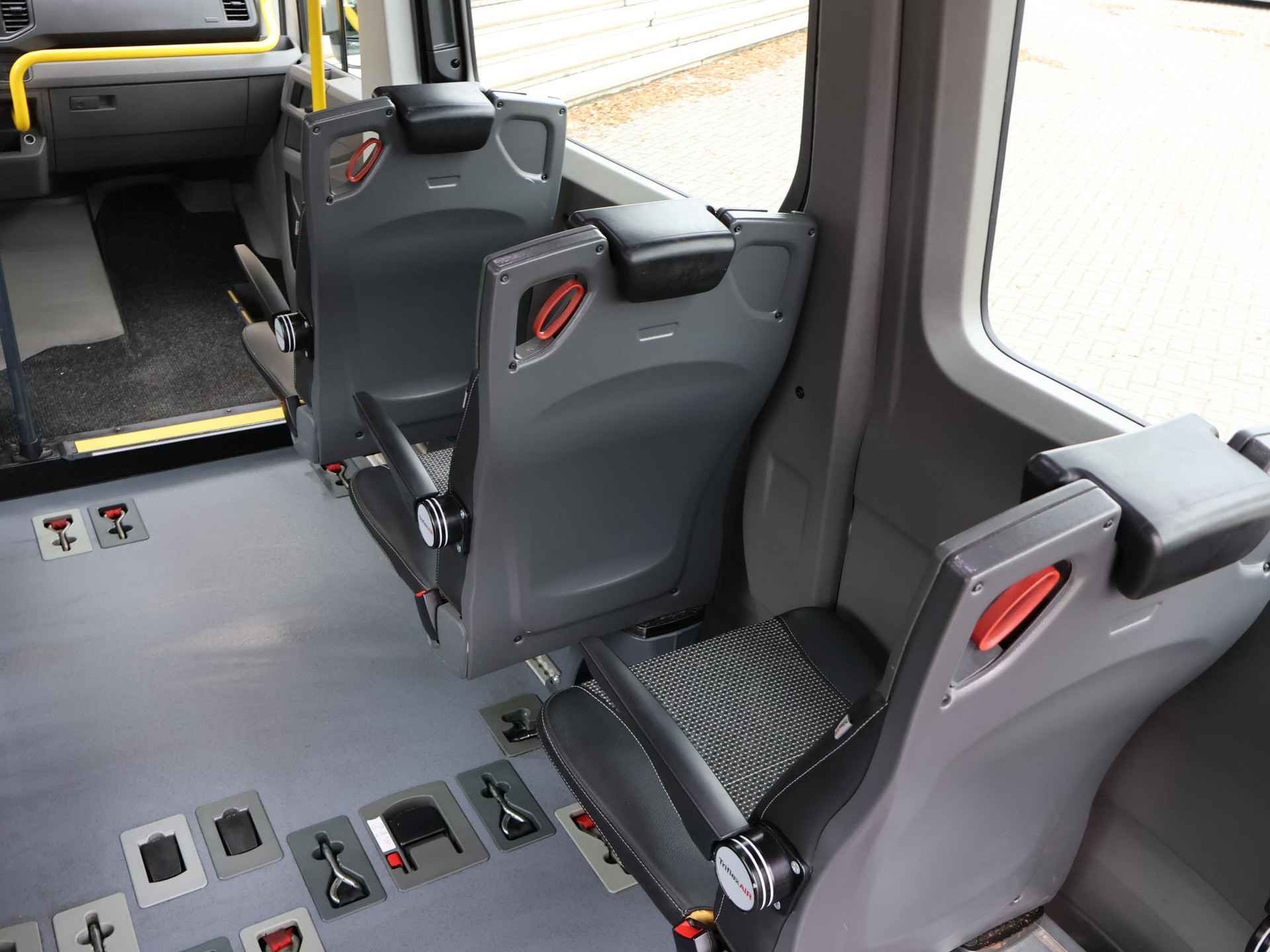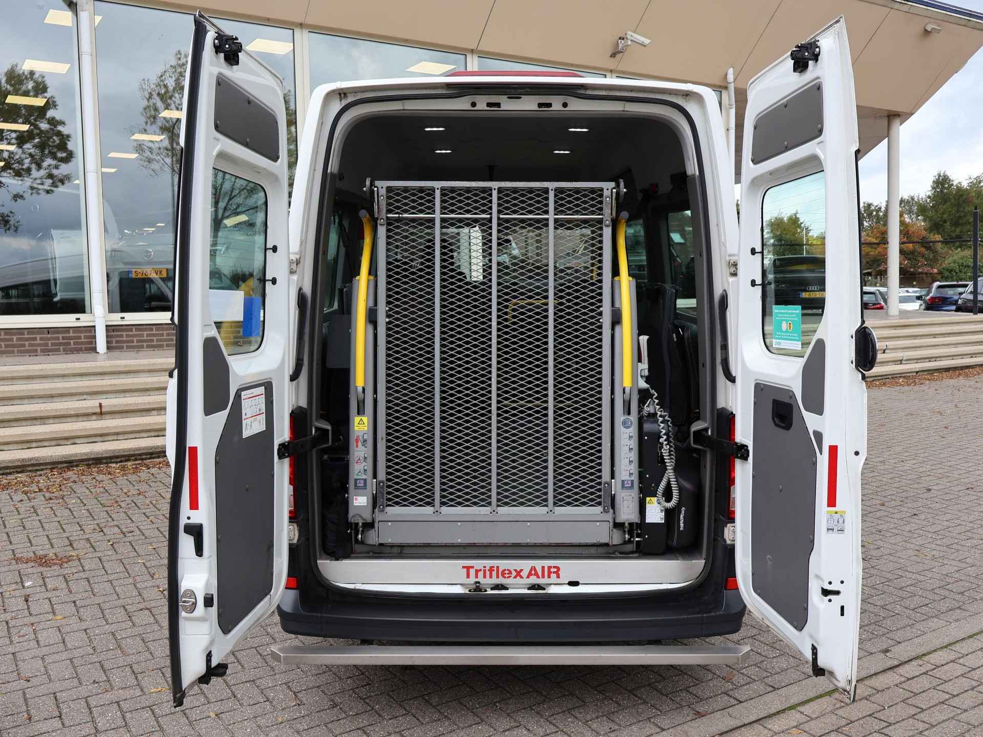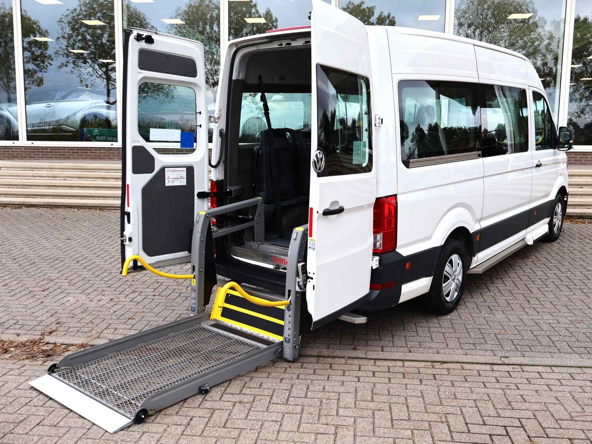Prijs is exclusief 21% BTW, vrij van BPM. 21.950 euro is exclusief BTW = 26.560 incl. BTW - Nieuw model Crafter Lang Hoog (L3H3 voorheen L2H2) 9-persoons personenbus geel kenteken met rolstoelombouw voor 4 rolstoelen, Euro 6 emissienorm, 2.0 TDI handgeschakeld met 6 versnellingen, Tribus rolstoelombouw met Triflex AIR vloer, Roelstoel laadlift op afstandsbediening, Lage instap rechtsvoor, 2 rijen van 4 zitplaatsen die weggeklapt kunnen worden, Cruise control, Airco, Bluetooth telefoon met audiostreaming, RVS bescherming aan de zijkant en achterkant.
