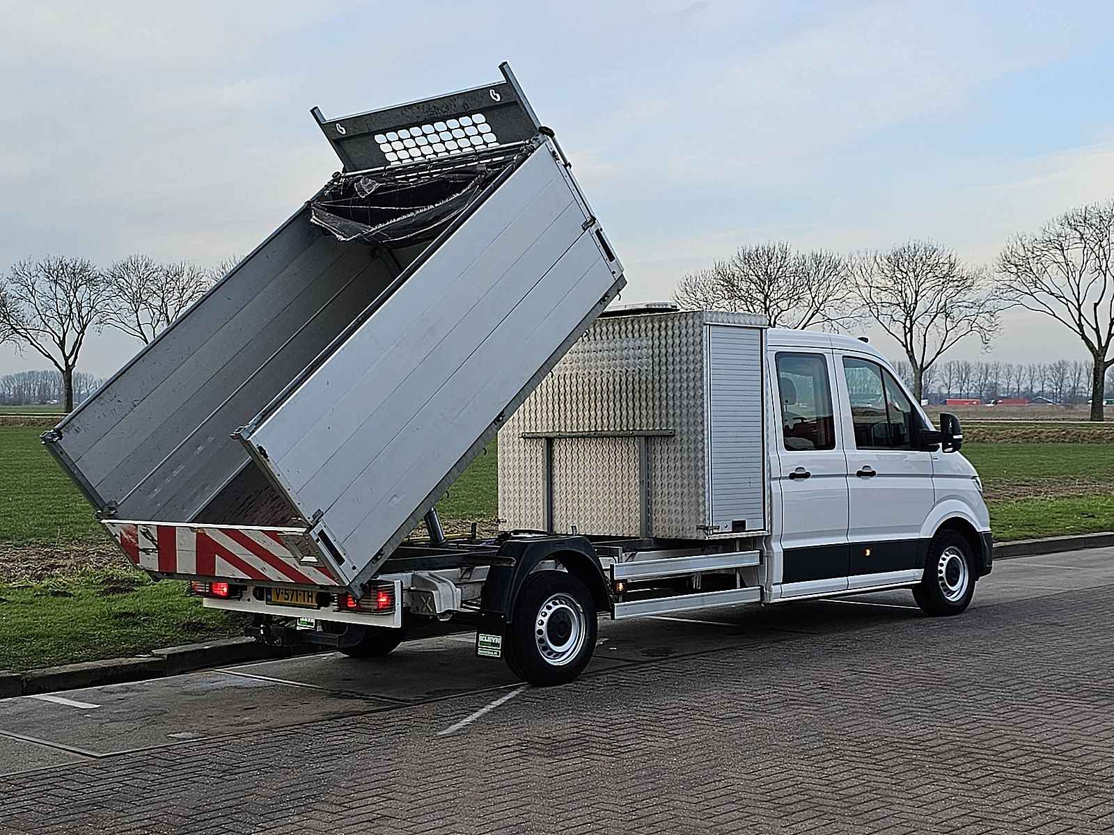 Configuratie: 4x2, Laadvermogen: 847 kg, Eigen gewicht: 2653 kg, Totaalgewicht: 3500 kg, Trekgewicht ongeremd: 750 kg, Trekgewicht middenas geremd: 3000 kg, Trekhaak, Soort cabine: dubbele cabine, Cruise control, Airconditioning, Aantal airbags: 2, Standkachel, Parkeerhulp: Geen, Elektrische ramen, Elektrische spiegels, Radio/cassette, Kleur: Wit, Verwarmde spiegels, Soort lampen: Halogeen, Bluetooth, Zwaailichten, Motorvermogen: 103 Kw (138 Hp), Brandstof: diesel, Euro: 6, Distributie type: Distributieriem, Soort versnellingsbak: Handgeschakeld, Versnellingen: 6, Stuurbekrachtiging, ABS (Anti Blokkeer Systeem), ASR (Anti Slip Regeling), Start accu, Aantal zijden: 1 zijdig kippend, Achteropstap, Imperiaal: Geen, Zijdeuren: 2, Zijruiten: 2, Achtersluiting: achterklep, Centrale vergrendeling, Zitplaatsen: 6, Stoelopstelling: 2+4, Stoelbekleding: leder, Stoel verstelling: Handmatig, ac dubbel cabine kipper EURO6 140 pk, Reservewiel, Profiel reservewiel: 4 %, Banden soort: All weather banden