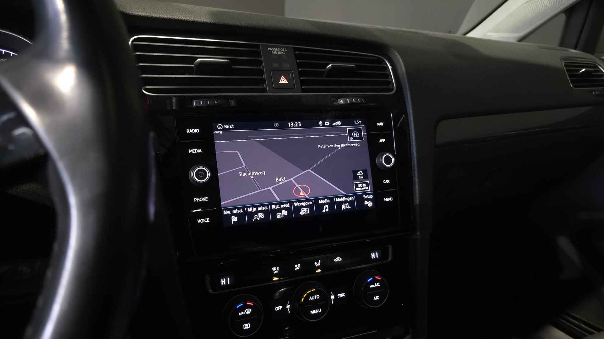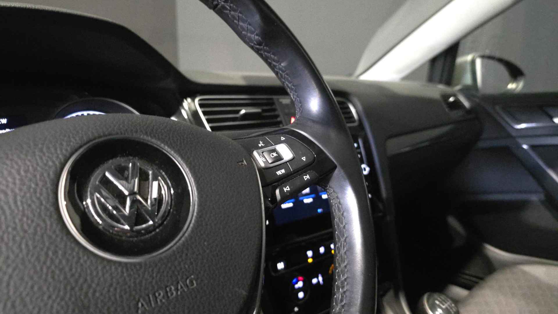 Adaptive cruise control is veilig en comfortabel. De snelheidsregelaar houdt automatisch afstand tot het voertuig dat voor u rijdt. Gemakkelijk en veilig is bediening voor het audio-installatiesysteem met knoppen op het stuur. De achteropkomend verkeer waarschuwing geeft een signaal als degene achter u te dicht op u zit. Ook handig en veilig bij het wisselen van rijbaan. Bij de luxe van deze auto hoort ook automatische airconditioning. Parkeerplekken worden er niet ruimer op. Maar met de aanwezige parkeersensoren krijgt u deze Volkswagen Golf zonder problemen op z'n plaats. Extra opties op deze auto zijn: regensensor, automatisch dimmende binnenspiegel, lederen stuur, centrale deurvergrendeling met afstandsbediening, boordcomputer en lederen versnellingspook.