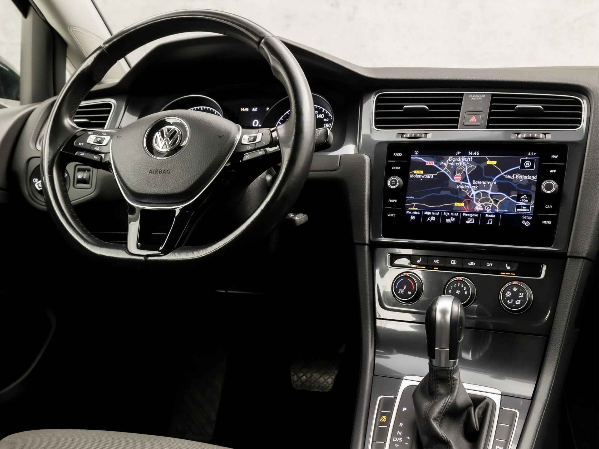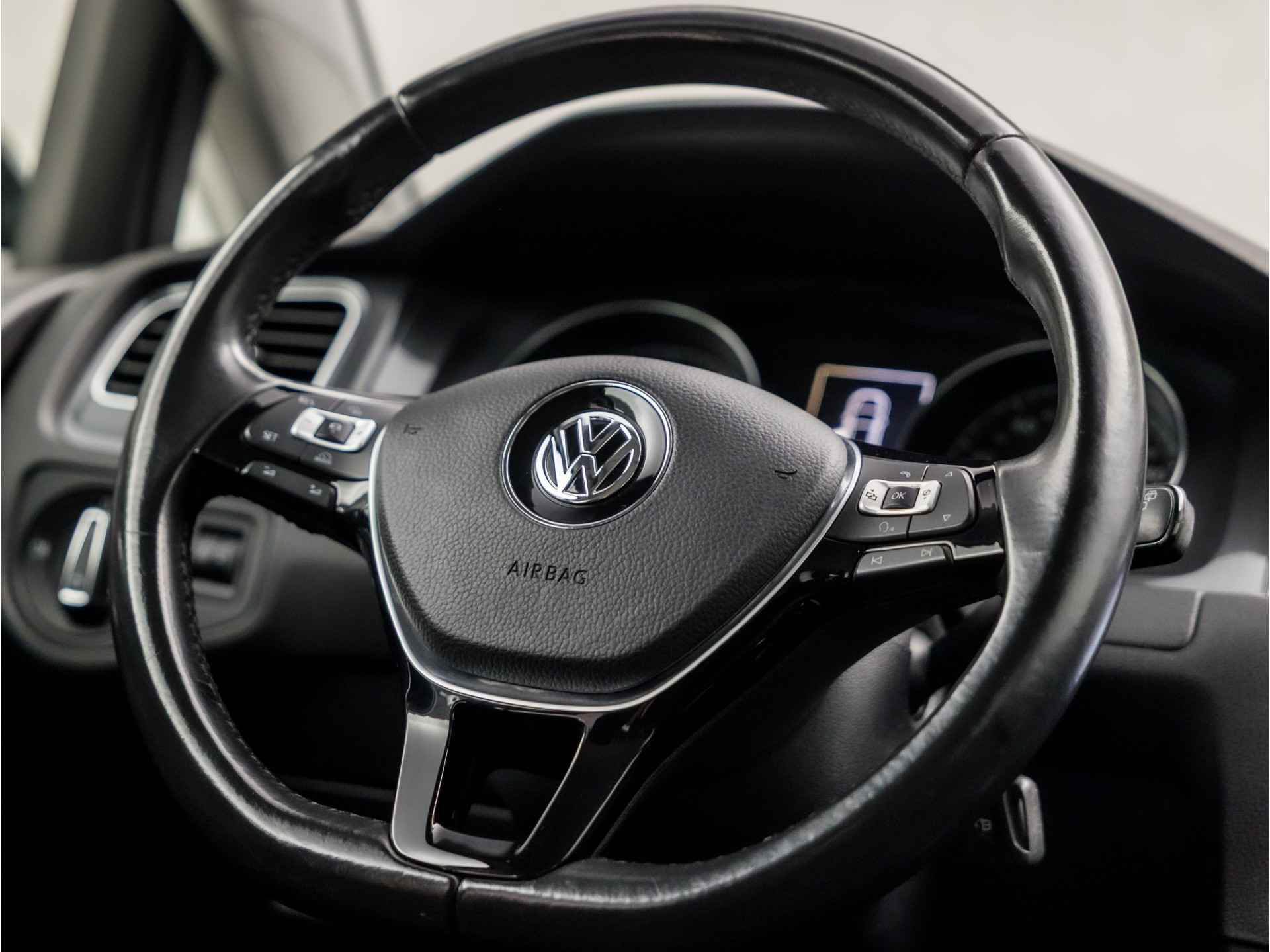 Het personaliseren van uw cockpitinterface is mogelijk met het digitale dashboard in deze auto. Met adaptive cruise control houdt de auto zelfstandig afstand tot uw voorligger. Een veiligheidsverhogende optie waarmee u comfortabel onderweg bent. In deze auto beschikt u natuurlijk over een navigatiesysteem. Het audio-installatiesysteem met DAB-radio biedt glasheldere geluidskwaliteit. U bedient dit veilig, via het stuurwiel of met spraakbediening. Ook over uw schouder ziet u onderweg niet alles wat er aan de achterzijde gebeurt. Daarom heeft deze Volkswagen Golf een achteropkomend verkeer waarschuwing. Tot de standaard uitrusting van deze auto hoort ook climatronic airconditioning. De uitrusting van deze auto is met parkeersensoren voor en achter, regensensor, automatisch dimmende binnenspiegel, isofix-aansluiting, centrale deurvergrendeling met afstandsbediening en lederen versnellingspook behoorlijk compleet.