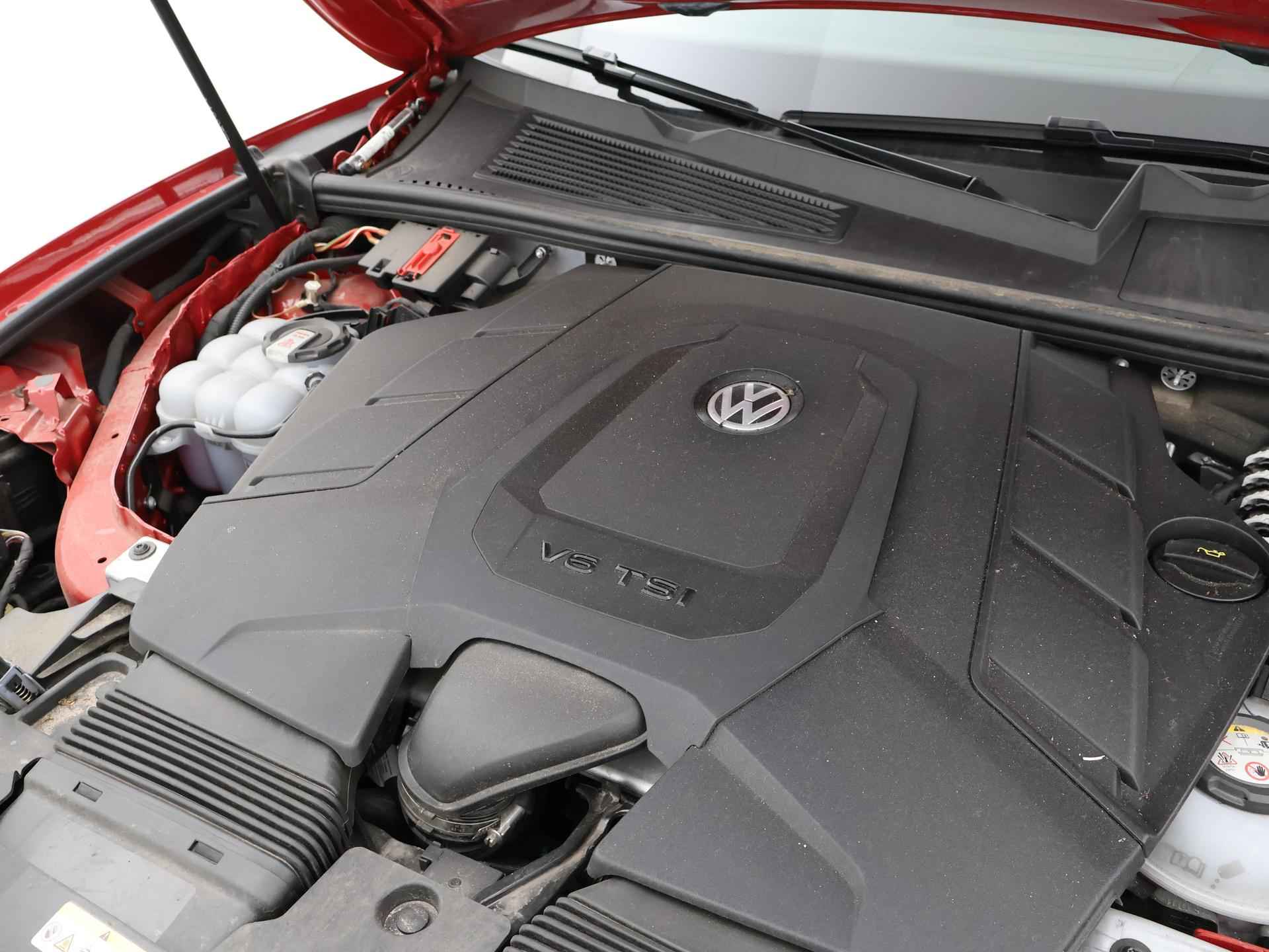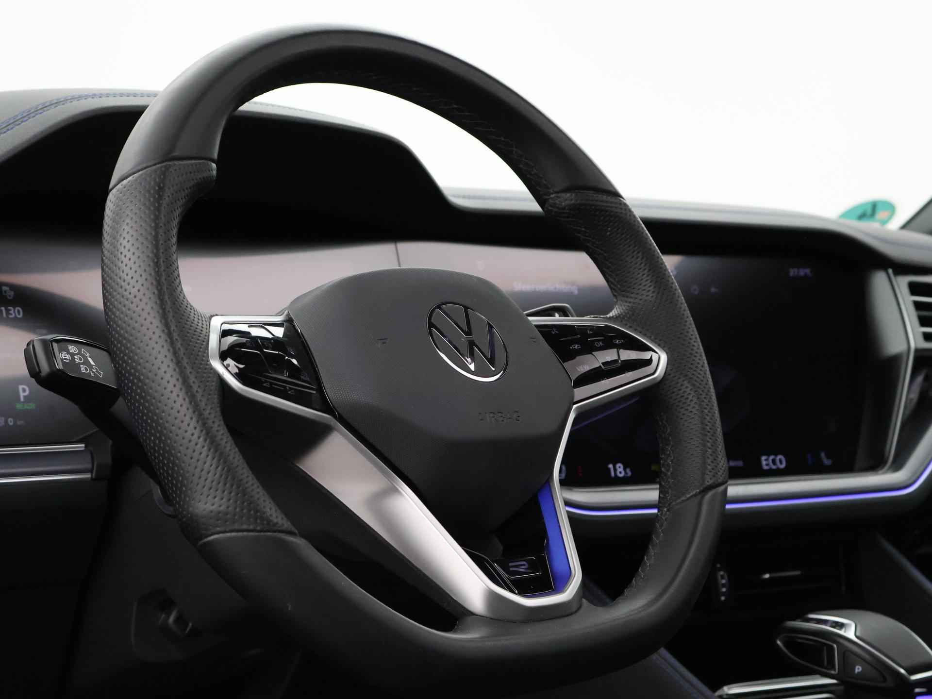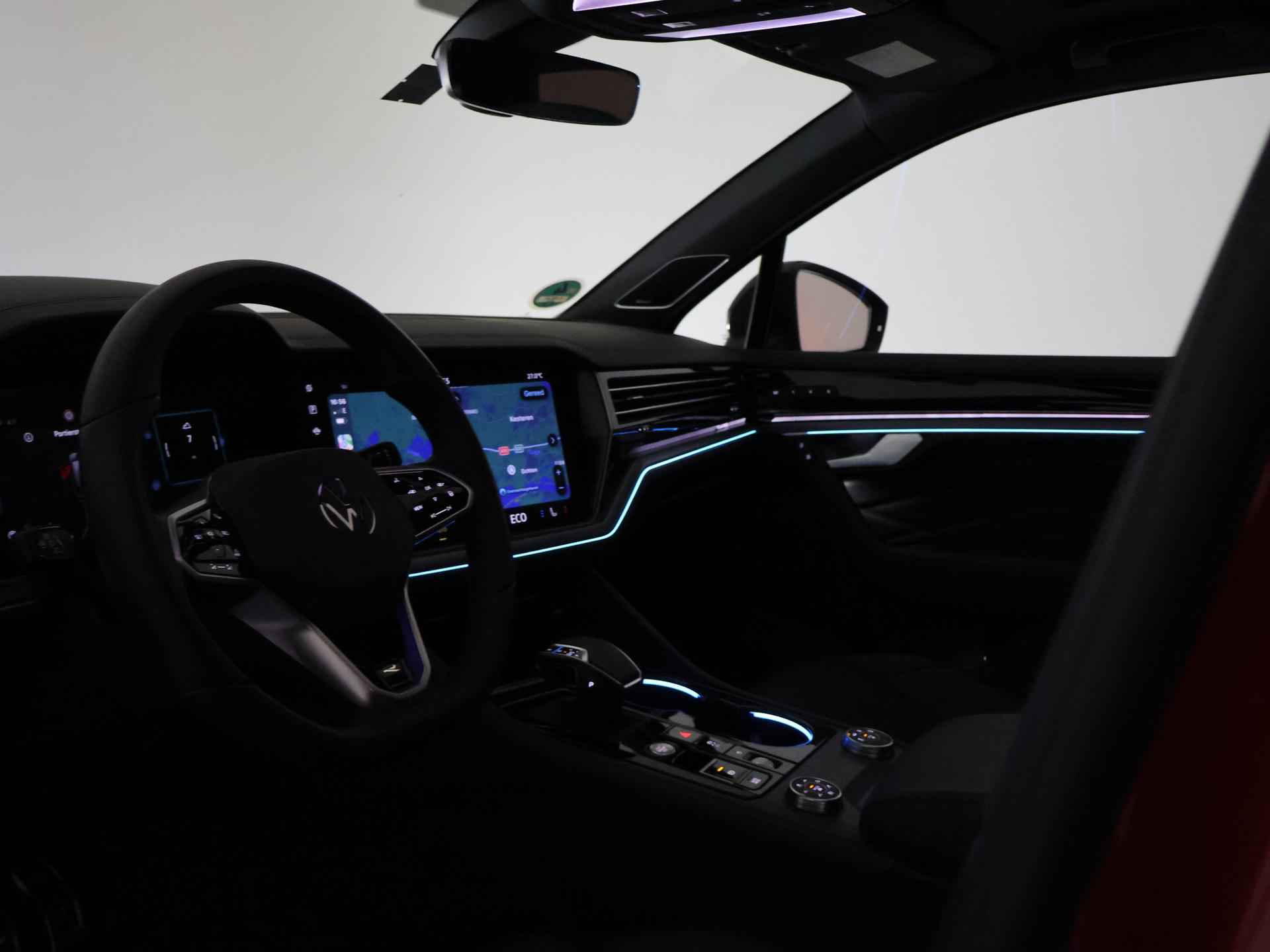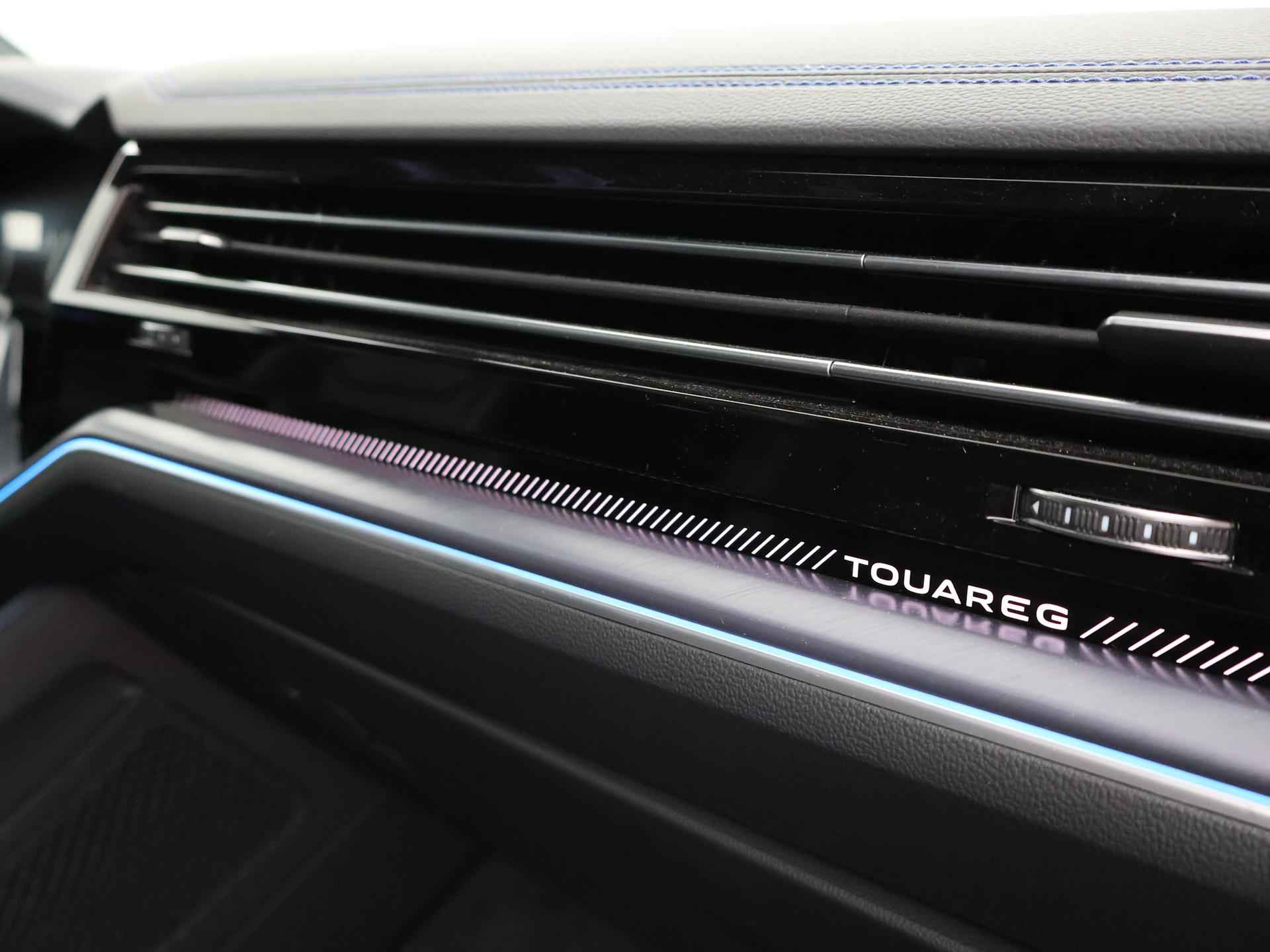Origineel Nederlandse en 1e eigenaar Touareg R van 2024, BTW verrekenbaar, Door ons zelf nieuw geleverd, nieuwprijs was 111.147 euro. 3.0 TSI V6 e-Hybrid plug-in hybride 462 PK 4motion automaat in de unieke kleur Chili Red parelmoer, Puglia Ergo Vienna zwart leder R design interieur met blauw stiksel, Lederen interieur/dashboard delen met blauw stiksel, Servosluiting portieren, Extra getinte achterruiten, 21 inch Leeds Bi-Color lichtmetalen velgen, Assistance Pakket met 360 graden rondom zicht camerasysteem, Panorama schuif/kanteldak, Sfeerverlichting interieur met verschillende kleuren, Luchtvering met regelbare hoogte, Stoelventilatie, Stoelverwarming voor + achterin, Adaptive cruise control, Digitale cockpit, Apple Carplay / Android Auto appstreaming Google Maps, Flitsmeister, Spotify etc, Elektrische achterklep, Keyless-entry en keyless-drive, Full LED verlichting rondom, Alarm klasse 5, Head-up display, 4-zone climate control met aparte bediening achterin, Lijnassistentie, Dodehoek assistentie, Verkeersbordenherkenning, DAB digitale radio, Elektrische stoelverstelling met geheugen,