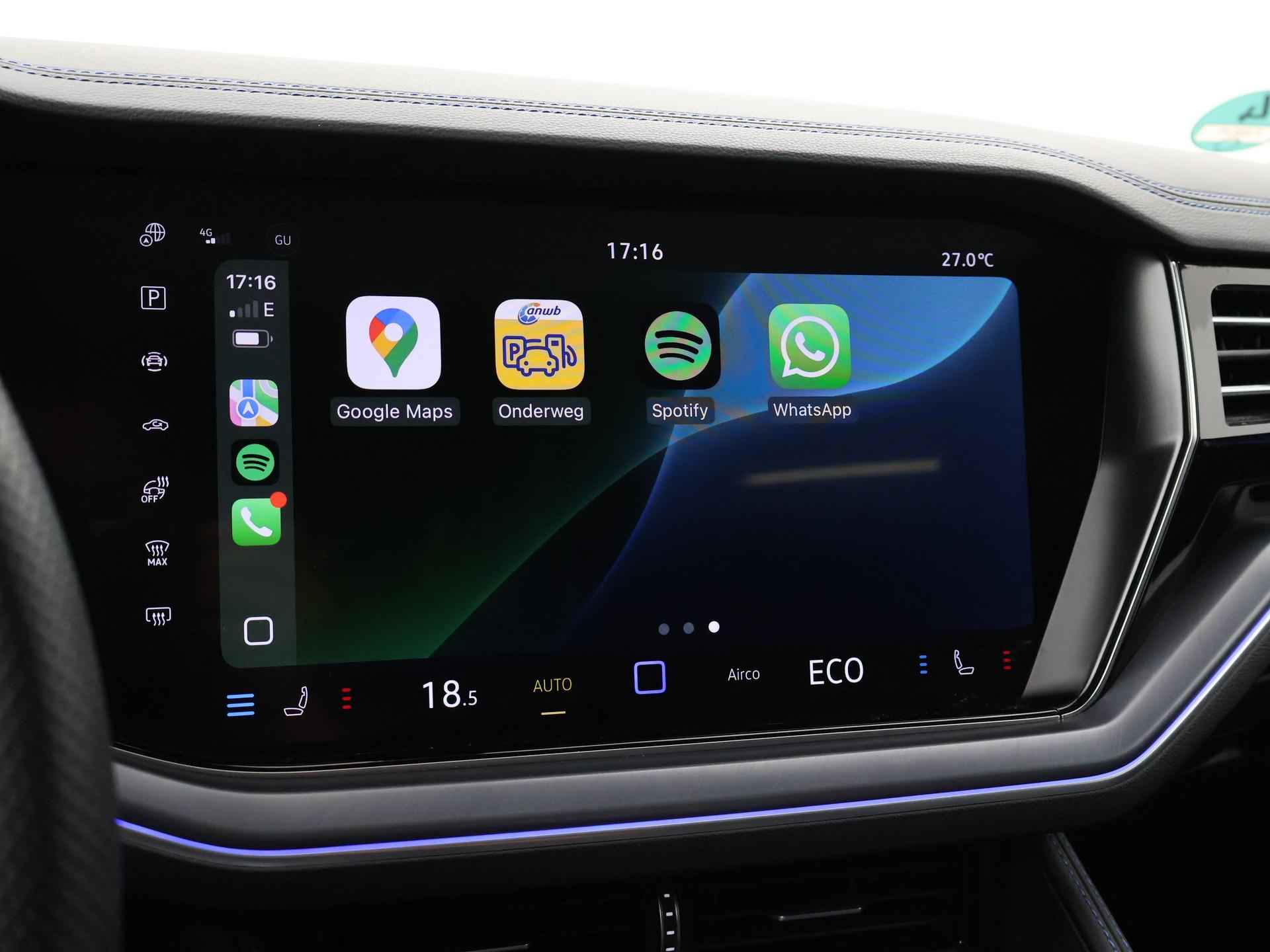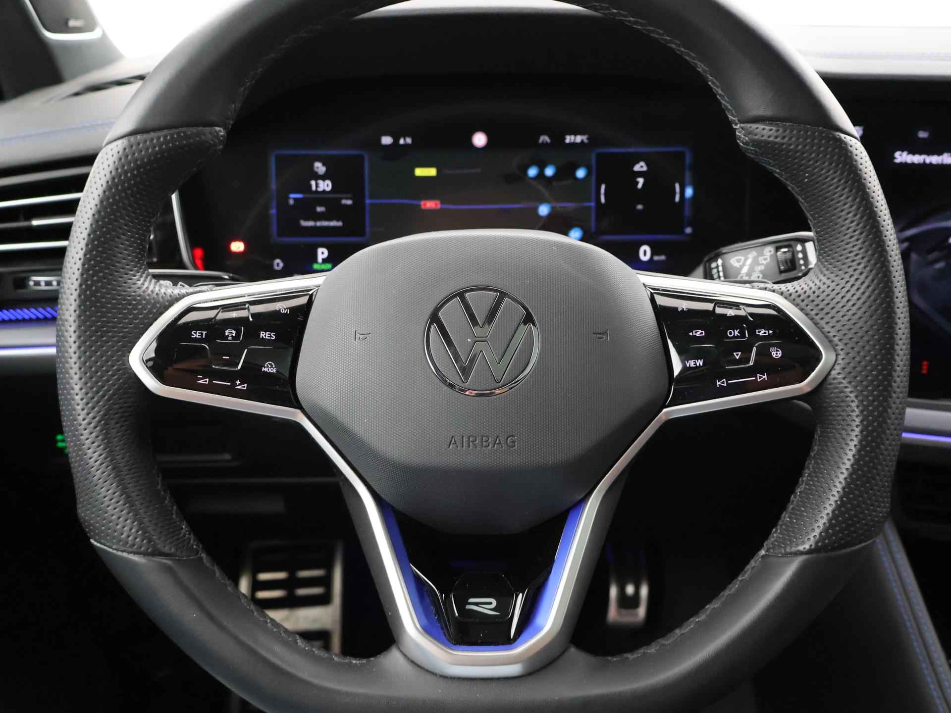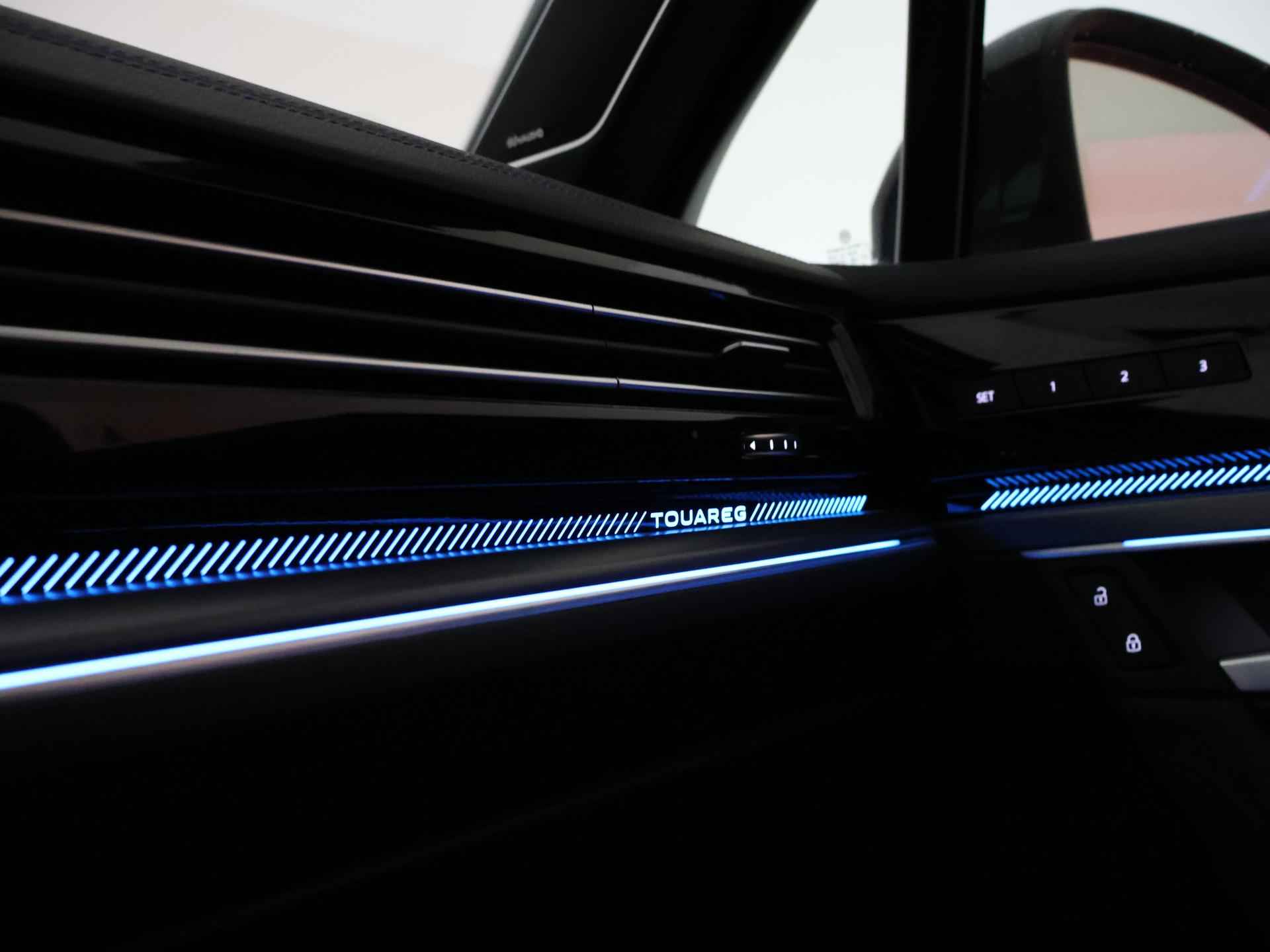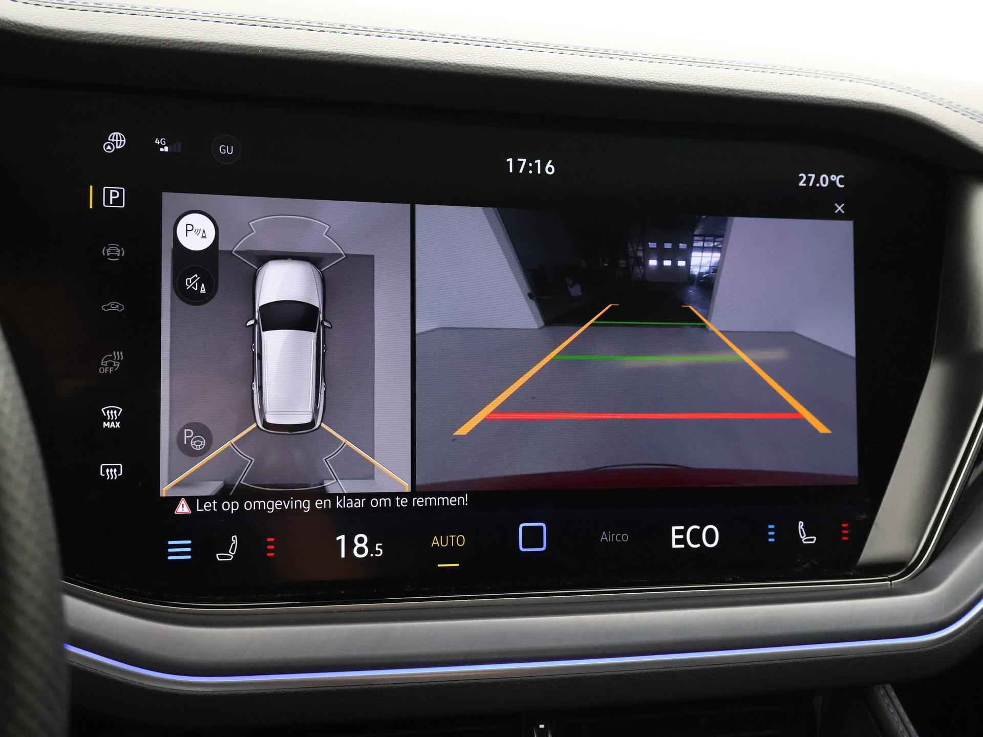 Origineel Nederlandse en 1e eigenaar Touareg R van 2024, BTW verrekenbaar, Door ons zelf nieuw geleverd, nieuwprijs was 111.147 euro. 3.0 TSI V6 e-Hybrid plug-in hybride 462 PK 4motion automaat in de unieke kleur Chili Red parelmoer, Puglia Ergo Vienna zwart leder R design interieur met blauw stiksel, Lederen interieur/dashboard delen met blauw stiksel, Servosluiting portieren, Extra getinte achterruiten, 21 inch Leeds Bi-Color lichtmetalen velgen, Assistance Pakket met 360 graden rondom zicht camerasysteem, Panorama schuif/kanteldak, Sfeerverlichting interieur met verschillende kleuren, Luchtvering met regelbare hoogte, Stoelventilatie, Stoelverwarming voor + achterin, Adaptive cruise control, Digitale cockpit, Apple Carplay / Android Auto appstreaming Google Maps, Flitsmeister, Spotify etc, Elektrische achterklep, Keyless-entry en keyless-drive, Full LED verlichting rondom, Alarm klasse 5, Head-up display, 4-zone climate control met aparte bediening achterin, Lijnassistentie, Dodehoek assistentie, Verkeersbordenherkenning, DAB digitale radio, Elektrische stoelverstelling met geheugen,
