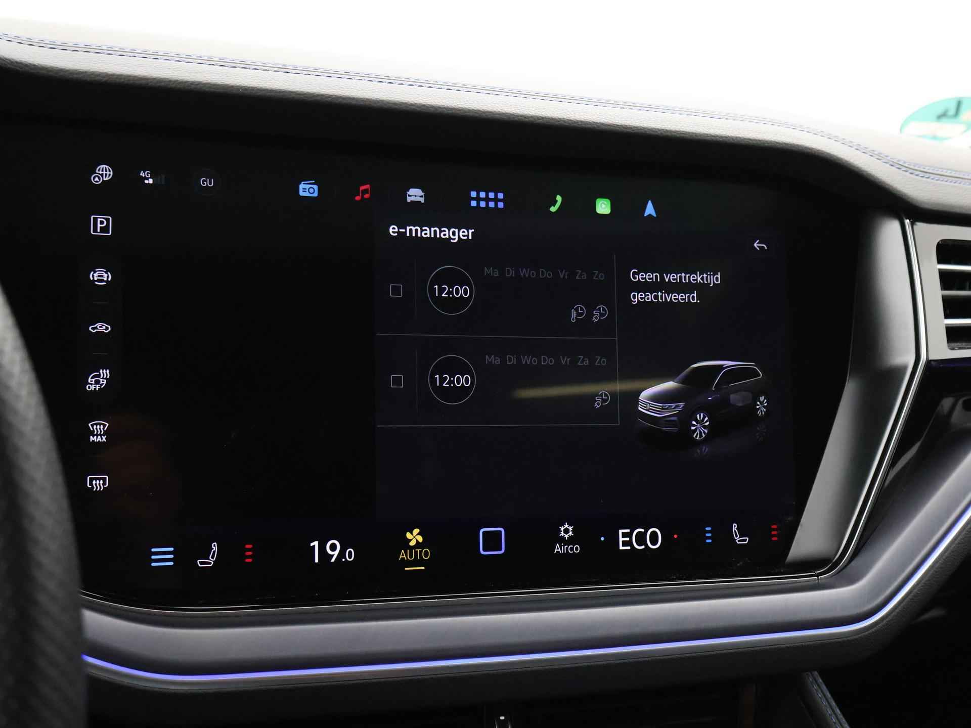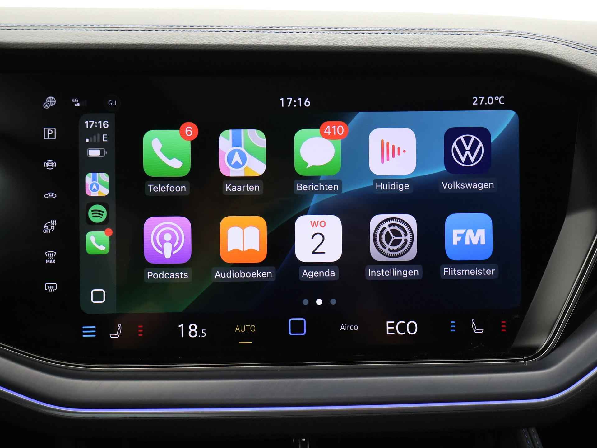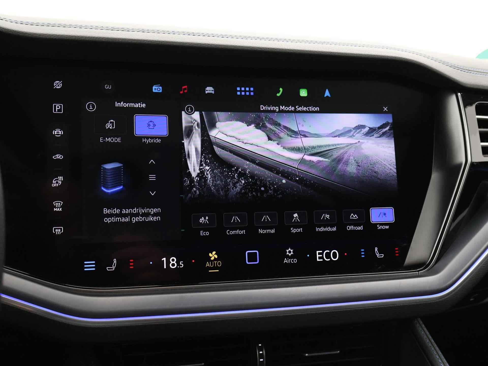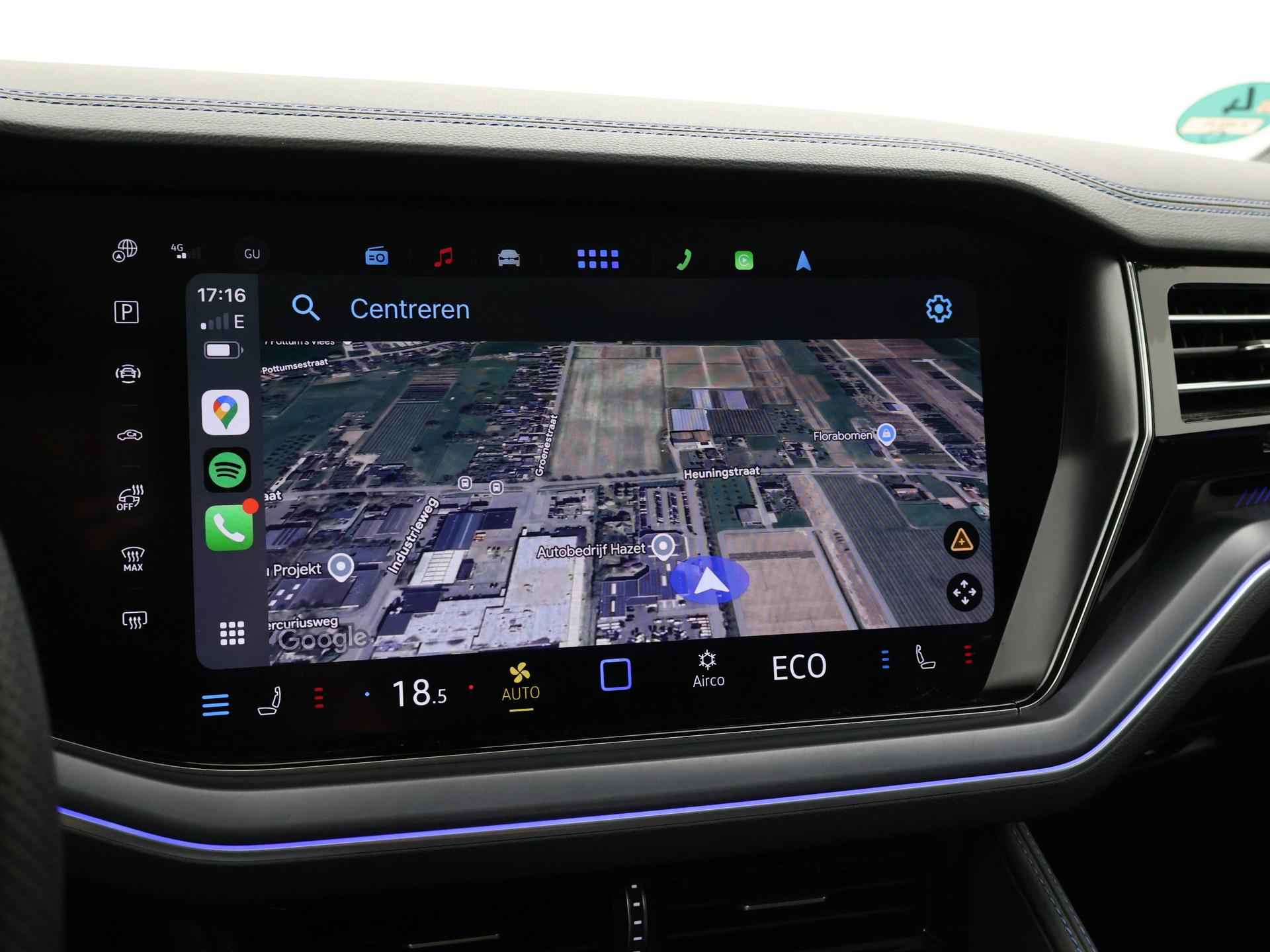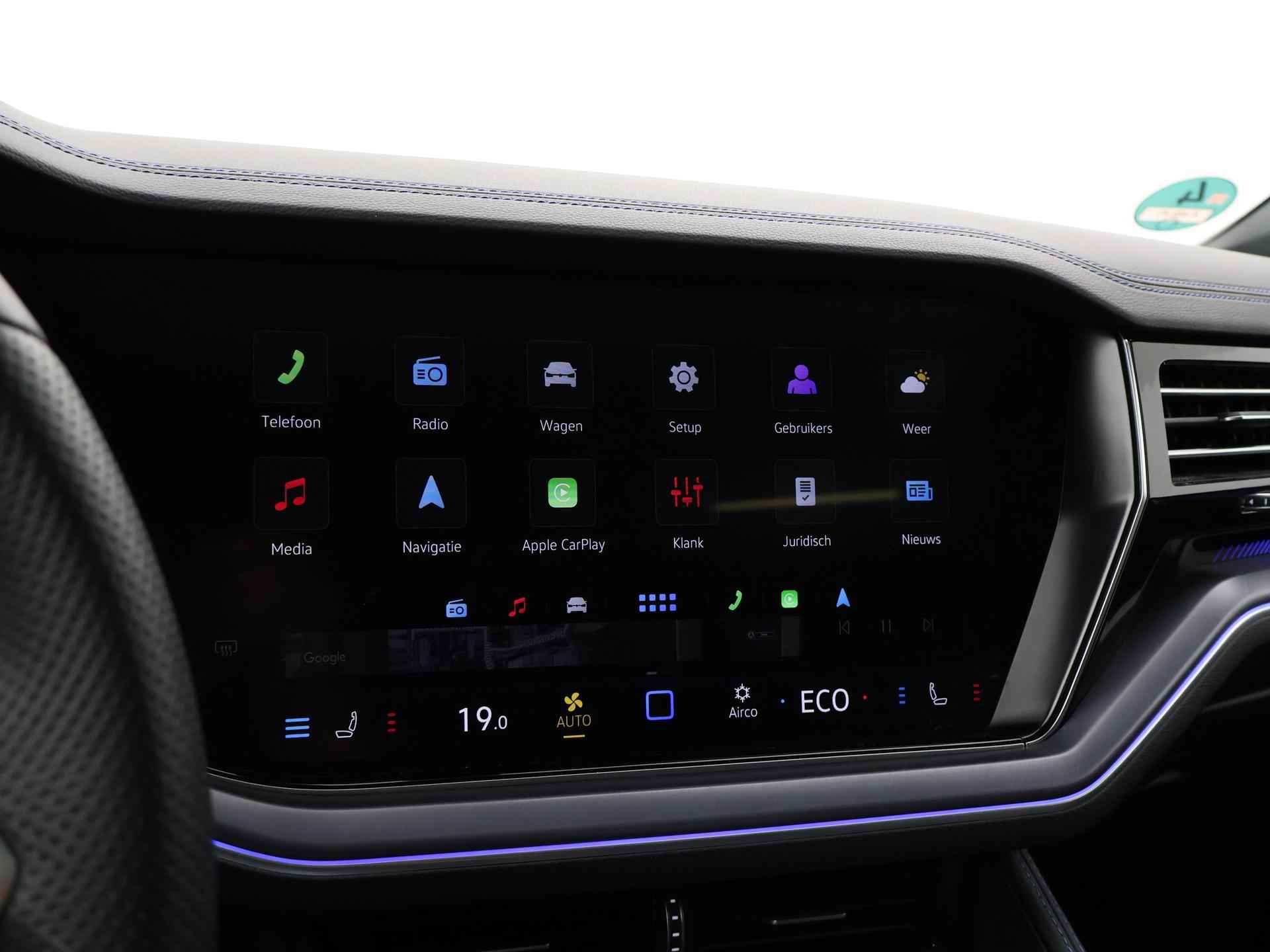 Origineel Nederlandse en 1e eigenaar Touareg R van 2024, BTW verrekenbaar, Door ons zelf nieuw geleverd, nieuwprijs was 111.147 euro. 3.0 TSI V6 e-Hybrid plug-in hybride 462 PK 4motion automaat in de unieke kleur Chili Red parelmoer, Puglia Ergo Vienna zwart leder R design interieur met blauw stiksel, Lederen interieur/dashboard delen met blauw stiksel, Servosluiting portieren, Extra getinte achterruiten, 21 inch Leeds Bi-Color lichtmetalen velgen, Assistance Pakket met 360 graden rondom zicht camerasysteem, Panorama schuif/kanteldak, Sfeerverlichting interieur met verschillende kleuren, Luchtvering met regelbare hoogte, Stoelventilatie, Stoelverwarming voor + achterin, Adaptive cruise control, Digitale cockpit, Apple Carplay / Android Auto appstreaming Google Maps, Flitsmeister, Spotify etc, Elektrische achterklep, Keyless-entry en keyless-drive, Full LED verlichting rondom, Alarm klasse 5, Head-up display, 4-zone climate control met aparte bediening achterin, Lijnassistentie, Dodehoek assistentie, Verkeersbordenherkenning, DAB digitale radio, Elektrische stoelverstelling met geheugen,