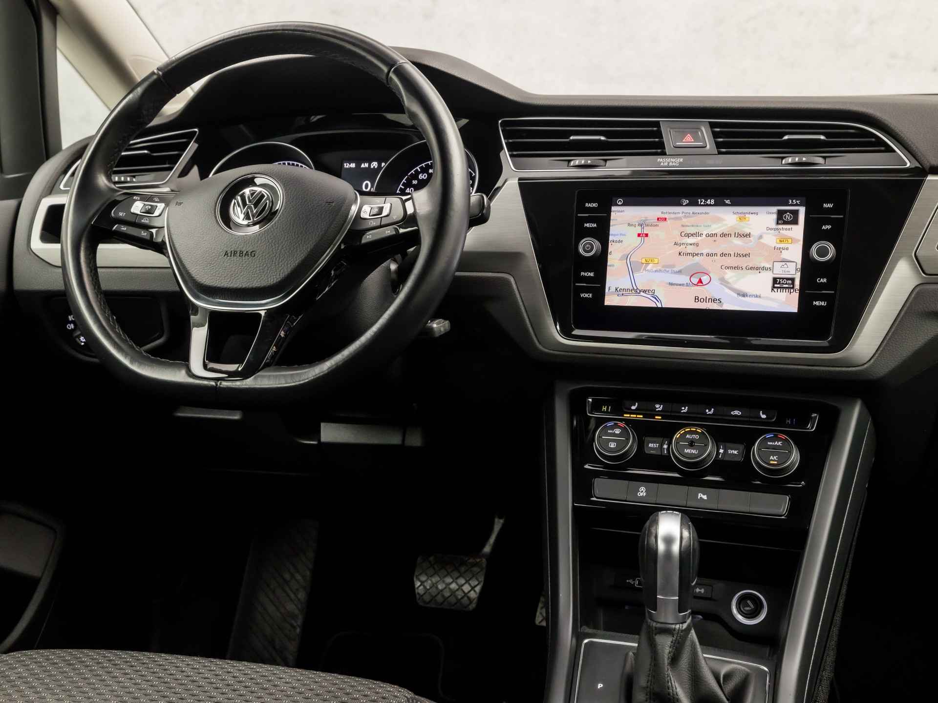 Adaptive cruise control houdt de ingestelde snelheid vast en houdt afstand tot het voertuig voor u. Spraaksturing luistert naar uw stem en bedient de belangrijkste voertuigfuncties. De auto is voorzien van een trekhaak en is een uitstekende caravantrekker. Beste route, verwachte aankomsttijd: uw eigen navigatiesysteem met harde schijf vertelt u alles! Aan boord van deze Volkswagen Touran is een achteropkomend verkeer waarschuwing voor extra veiligheid. Met automatische airconditioning, sportstuur met schakelpaddels, parkeersensoren voor en achter, regensensor, keyless entry en automatisch dimmende buitenspiegels is deze auto helemaal compleet.