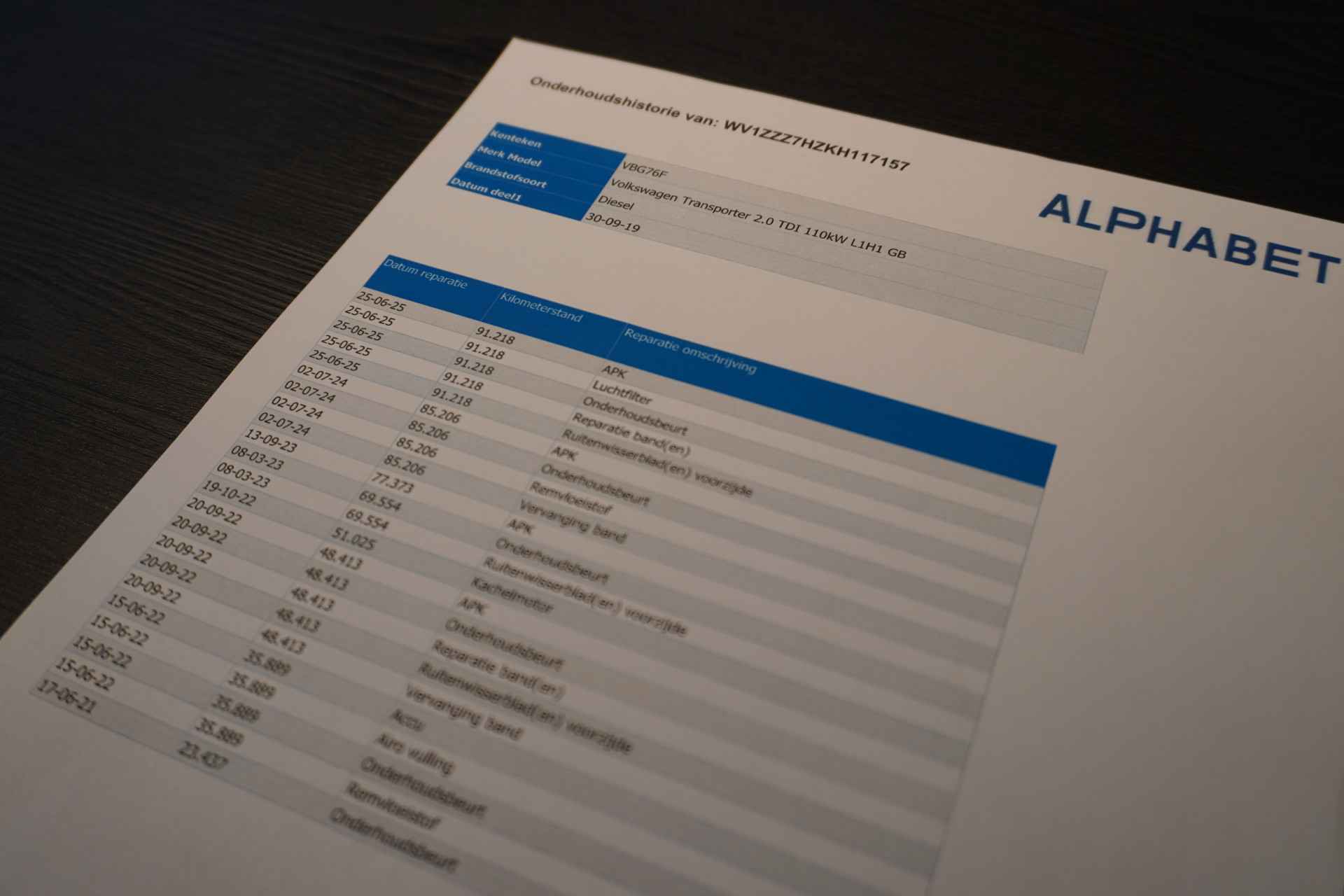 Daarnaast is deze Transporter voorzien van een onderhoudshistorie.