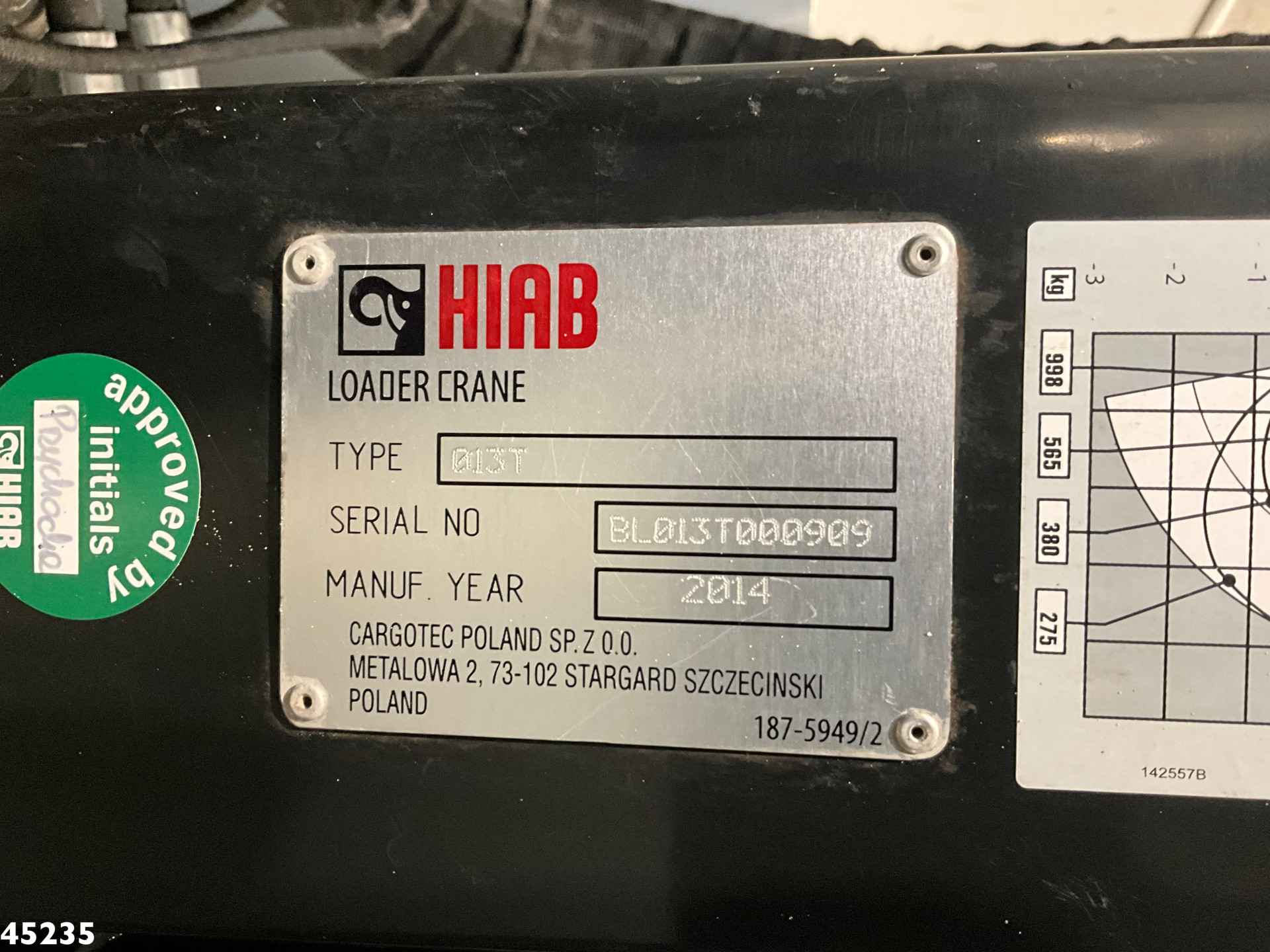 - Hiab 1,3 Tonmeter laadkraan (type: 013T)