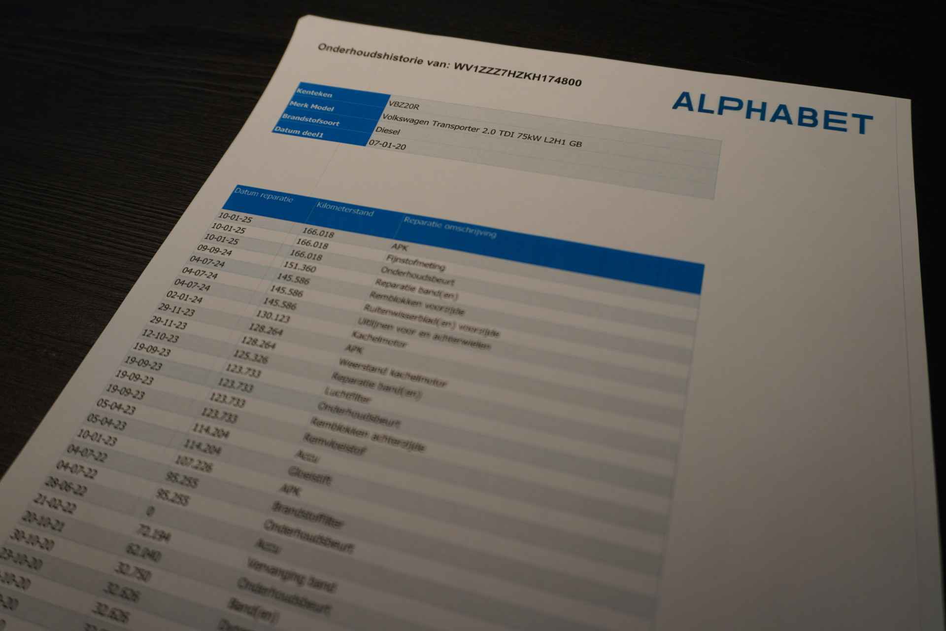 Daarnaast is deze Transporter voorzien van een onderhoudshistorie.