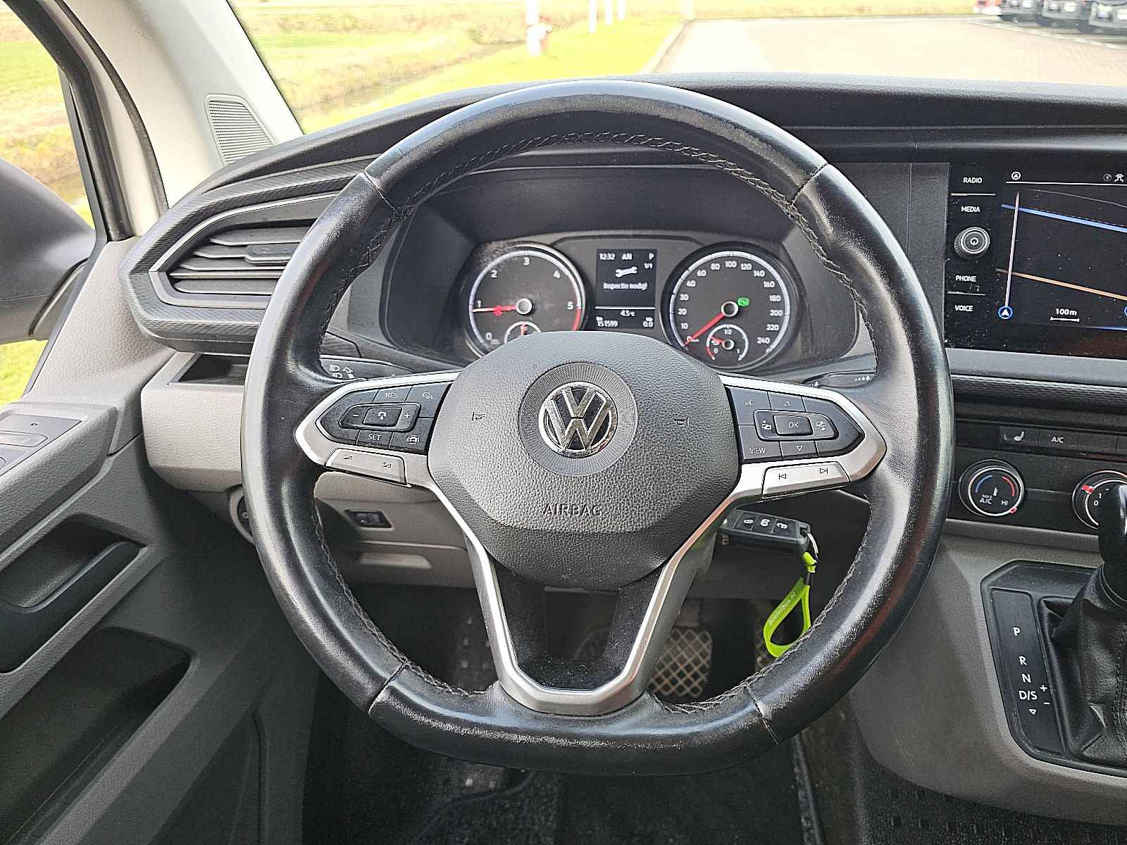 Configuratie: 4x2, Eigen gewicht: 2087 kg, Totaalgewicht: 3000 kg, Trekhaak, Soort cabine: enkele cabine, Cruise control, Airconditioning, Aantal airbags: 2, Parkeerhulp: Voor en achterkant, Elektrische ramen, Elektrische spiegels, Tussenschot, Radio/cassette, Carplay, GPS navigatie, Kleur: Wit, Verwarmde spiegels, Soort lampen: Halogeen, Stoelverwarming, Motorvermogen: 110 Kw (148 Hp), Brandstof: diesel, Euro: 6, Distributie type: Distributieriem, Soort versnellingsbak: Automaat, Stuurbekrachtiging, ABS (Anti Blokkeer Systeem), ASR (Anti Slip Regeling), Start accu, Laadruimte betimmerd, Imperiaal: Geen, Zijdeuren: 2, Achtersluiting: dubbele deur, Centrale vergrendeling, Zitplaatsen: 3, Stoelopstelling: 1+2, Stoelbekleding: stof, Stoel verstelling: Handmatig, T6.1 L2H1 2xZijdeur Automaat 150Pk ACC Navi Euro6 Navi 3-Zits Wp-Inrichting!, Banden soort: Zomer banden